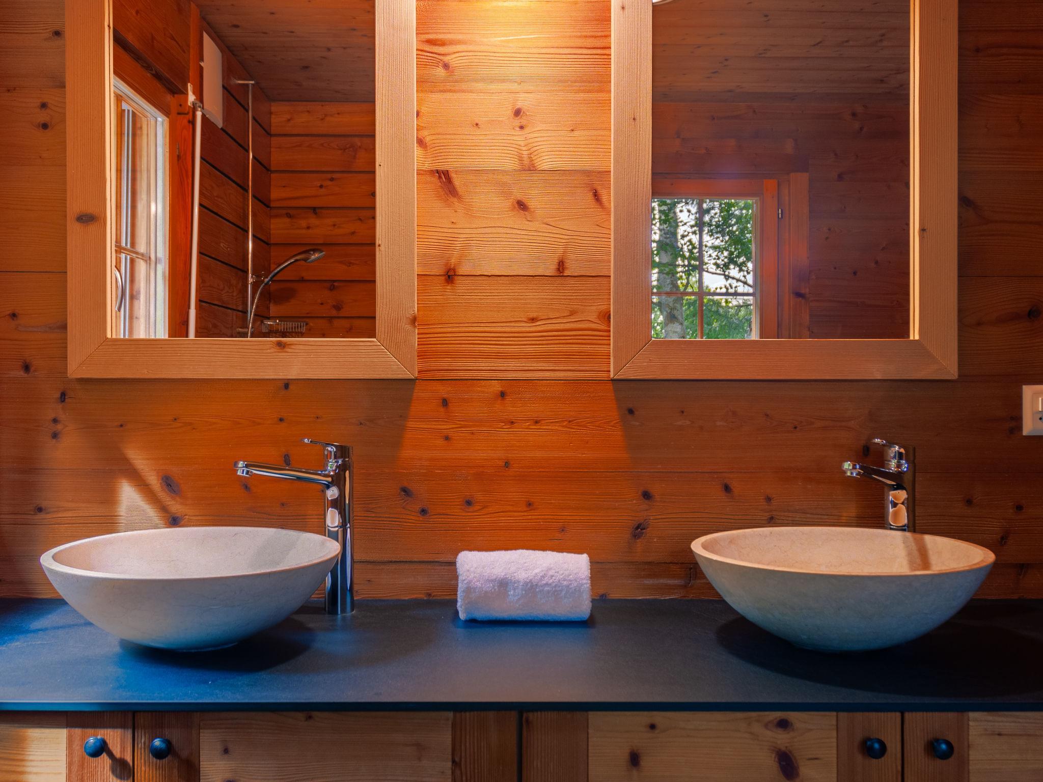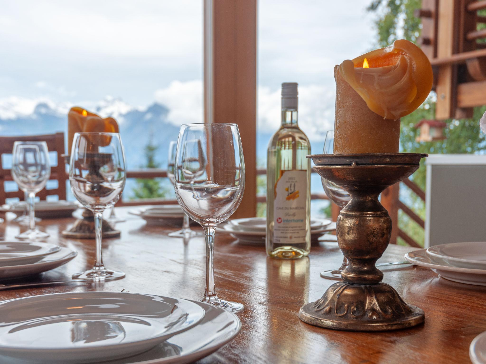 "Mimique", 5-Zimmer-Chalet 180 m2 auf 3 Stockwerken. Hell, renoviert im Jahre 2014, komfortabel eingerichtet: Wohn-/Esszimmer mit Panoramafenster mit Schwedenofen, Sat-TV, Kabel-TV, CD, Stereoanlage und DVD. Ausgang zur Terrasse, Richtung Nordwesten. 1 Zimmer mit 1 franz. Bett (180 cm, Länge 200 cm). Ausgang zur Terrasse, Richtung Norden. Offene Küche (Backofen, Geschirrspüler, 4 Glaskeramikplatten, Toaster, Wasserkocher, Mikrowelle, Tiefkühler, elektrische Kaffeemaschine, Kapseln für die Kaffeemaschine (Nespresso) extra, Racletteofen, Fondue Set (Käse)). Bad/Dusche, sep. WC, Doppelwaschbecken. Heizung. Unteres Geschoss: Eingang. 1 grosses Zimmer mit 1 franz. Bett (160 cm, Länge 200 cm), Kabel-TV und Flachbildschirm. Ausgang zur Terrasse, Richtung Norden. Dusche, sep. WC, Doppelwaschbecken, Sauna. Obergeschoss: 1 abgeschrägtes Zimmer mit 1 franz. Bett (180 cm, Länge 200 cm). Ausgang zum Balkon, Richtung Norden. 1 abgeschrägtes Zimmer mit 2 Betten (90 cm, Länge 200 cm). Dusche/WC. Terrasse 55 m2, Westlage und Südlage. Terrassenmöbel, Gartengrill (mobil), Liegestühle (3). Herrliche Sicht auf die Berge und das Tal. Zur Verfügung: Waschmaschine, Wäschetrockner, Sauna, Kinderhochstuhl, Babybett, Haartrockner. Internet (WLAN, gratis). Parkplatz (2 Autos), Garage, Höhe 210 cm, Breite 250 cm. Bitte beachten: Nichtraucher-Unterkunft.