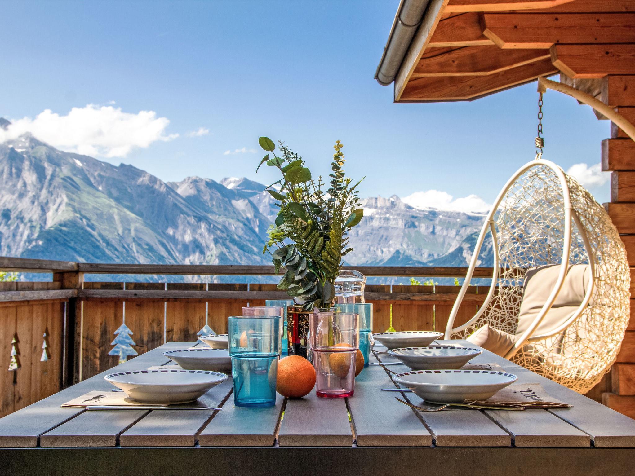 "Le Loup, le Renard et la Belette", 4-Zimmer-Chalet 96 m2 auf 2 Stockwerken. Renoviert im Jahre 2023, komfortabel und schön eingerichtet: grosses Wohn-/Esszimmer mit offenem Kamin. Ausgang zum Balkon, zur Terrasse, Richtung Norden. Offene Küche (Backofen, Geschirrspüler, 4 Glaskeramikplatten, Toaster, Wasserkocher, elektrische Kaffeemaschine, Kapseln für die Kaffeemaschine (nespresso) extra, Racletteofen, Fondue Set (Chinoise, Käse)). Sep. WC. Unteres Geschoss: 1 Zimmer mit 1 franz. Bett (140 cm, Länge 190 cm). 1 kleines Kinderzimmer mit 1 x 2 Etagenbetten (90 cm, Länge 190 cm). 1 Zimmer mit 1 franz. Bett (160 cm, Länge 200 cm). Ausgang zur Terrasse. Dusche/WC. Fussbodenheizung. Schöne Sicht auf die Berge und das Tal. Zur Verfügung: Waschmaschine. Internet (Wireless LAN, gratis). Parkplatz (2 Autos). Bitte beachten: Nichtraucher-Unterkunft.