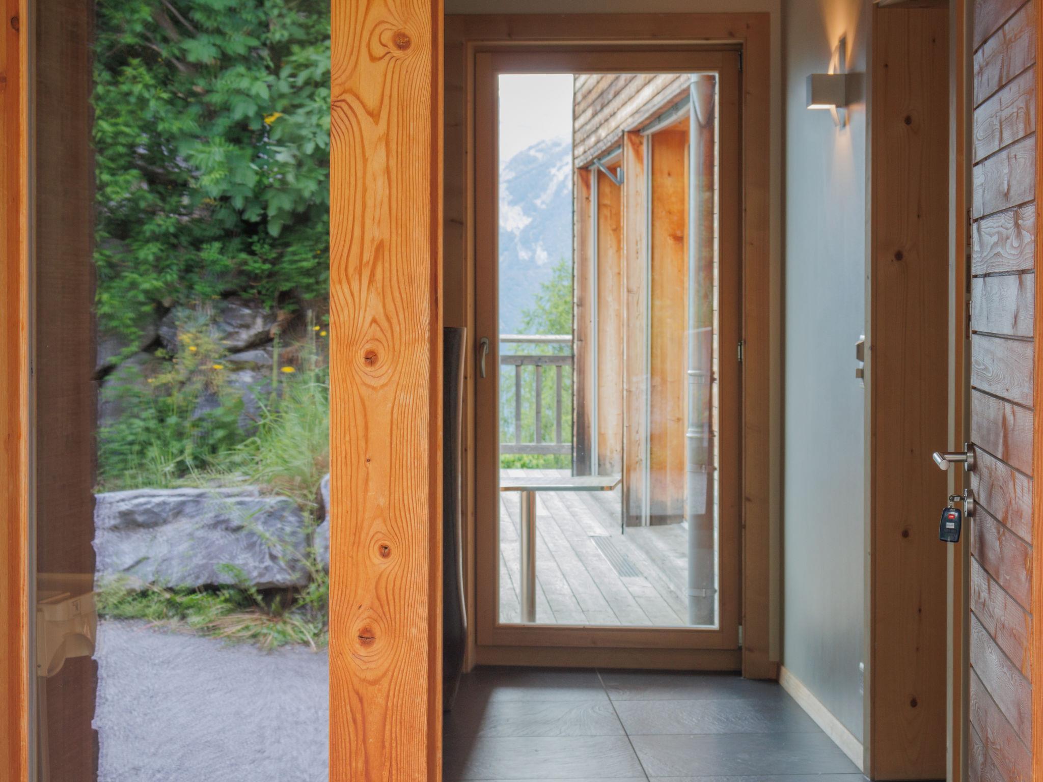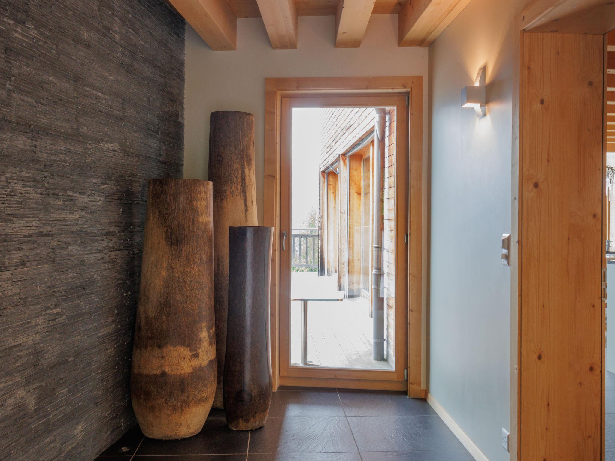 "Woovim 8", 5-Zimmer-Chalet 225 m2 auf 3 Stockwerken. Luxuriös und mit viel Holz eingerichtet: grosses Wohn-/Esszimmer mit Schiebetür, Panoramafenster Richtung Norden mit Schwedenofen und Kabel-TV. Ausgang zur Terrasse. 1 grosses Zimmer mit 1 Doppelbett (180 cm, Länge 200 cm). Offene Küche (Backofen, Geschirrspüler, Toaster, Wasserkocher, Mikrowelle, elektrische Kaffeemaschine, Kapseln für die Kaffeemaschine (nespresso) extra, Racletteofen, Fondue Set (Käse)) mit Bar. Dusche/WC. Heizung. Unteres Geschoss: 1 grosses Zimmer mit 1 franz. Bett (160 cm, Länge 200 cm). Dusche, sep. WC, Sauna. Obergeschoss: 1 Zimmer mit 1 franz. Bett (160 cm, Länge 200 cm), Dusche und Doppelwaschbecken. 1 Zimmer mit 1 x 2 Etagenbetten (90 cm, Länge 190 cm), Dusche und Doppelwaschbecken. Sep. WC. Grosse Terrasse 80 m2. Terrassenmöbel. Sehr schöne Panoramasicht auf die Berge und das Tal. Zur Verfügung: Kinderhochstuhl, Babybett, Haartrockner. Internet (WLAN, gratis). Parkplatz (2 Autos), Garage, Höhe 200 cm, Breite 220 cm. Bitte beachten: Nichtraucher-Unterkunft.