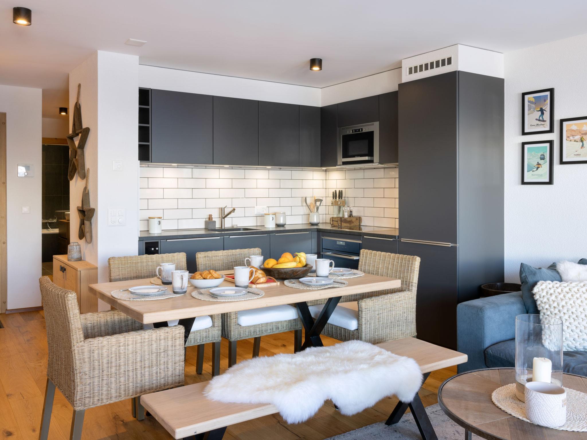 "Les Terrasses de Nendaz D1", 4-Zimmer-Wohnung 85 m2 im 1. Stock. Komfortabel und schön eingerichtet: Eingang. Wohn-/Esszimmer mit Kabel-TV. Ausgang zum Balkon, Richtung Westen und Richtung Süden. 1 Zimmer mit 1 franz. Bett (150 cm, Länge 200 cm), Dusche/WC. Ausgang zum Balkon, Richtung Norden. 1 Zimmer mit 2 Betten (90 cm, Länge 200 cm). Ausgang zum Balkon, Richtung Osten. 1 Zimmer mit 1 franz. Bett (140 cm, Länge 190 cm). Ausgang Richtung Westen. Offene Küche (Backofen, Geschirrspüler, 4 Induktionskochplatten, Wasserkocher, Mikrowelle, Tiefkühler, elektrische Kaffeemaschine, Kapseln für die Kaffeemaschine (nespresso) extra, Racletteofen, Fondue Set (Käse)). Bad/WC. Holzdielenboden. Grosser Balkon, Westlage und Südlage, kleiner Balkon, Ostlage. Balkonmöbel. Sehr schöne Sicht auf die Berge und die Skipiste. Zur Verfügung: Internet (WLAN, gratis). Garage Nr. 61.6. E-Ladestation. Bitte beachten: Nichtraucher-Unterkunft.