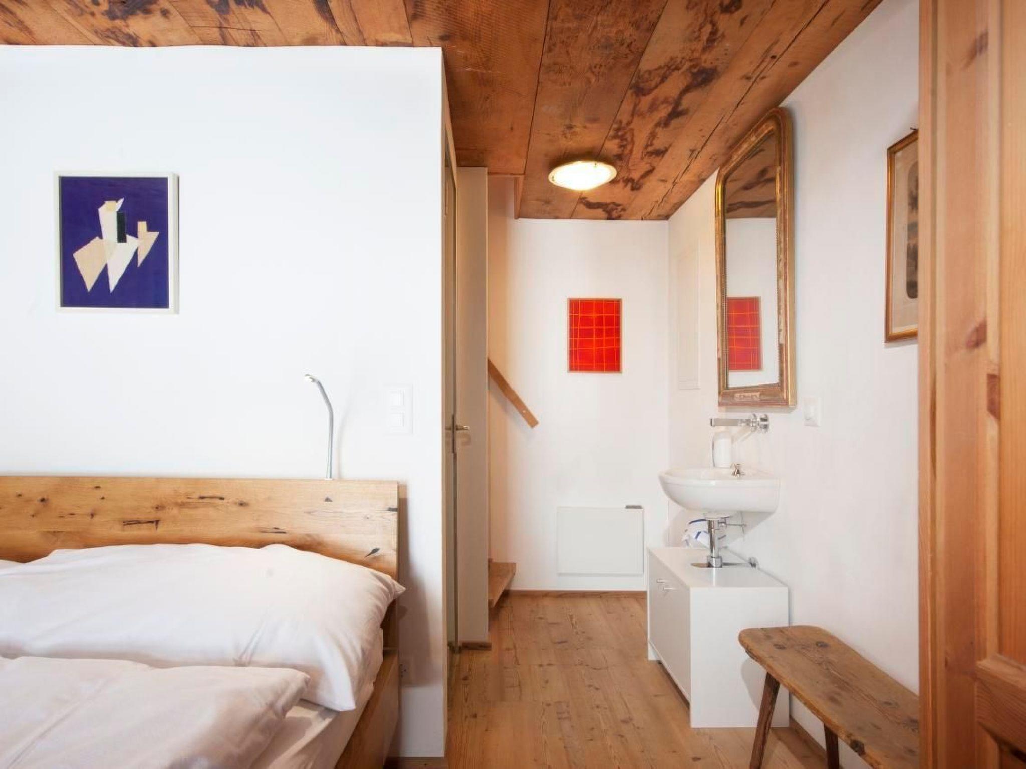 Im Innern des Spychers wartet nach einer sorgfältigen Modernisierung im Jahr 2010 eine gemütliche und zweckmäßige Einrichtung auf Sie. Das Erdgeschoss beherbergt ein Schlafzimmer mit Doppelbett, TV, Dusche und WC sowie ein zusätzliches Lavabo. Die originelle Wohnküche im Obergeschoss ist ausgestattet mit einer roten Küchenzeile, die über einen Glaskeramikherd, Kühlschrank und Geschirrspüler verfügt. Ein Sofa, ein Sideboard, ein Tisch, Internet/WLAN und ein SONOS-Lautsprecher machen den Raum komplett.