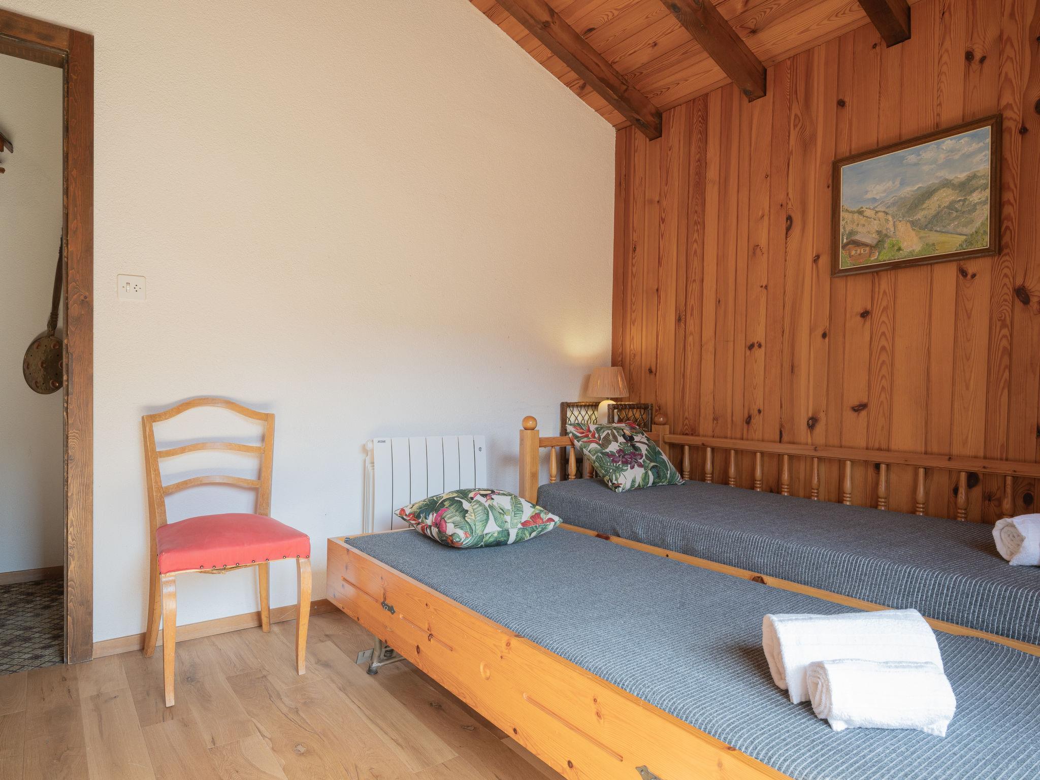 "Chalet Le Katanga", 4-Zimmer-Chalet 102 m2 auf 2 Stockwerken. Teilweise renoviert im Jahre 2025, komfortabel und schön eingerichtet: Eingang mit sep. WC. Wohn-/Esszimmer mit offenem Kamin, Kabel-TV, Stereoanlage und Warmluftheizung. Ausgang zur Terrasse, Richtung Süden. Offene Küche (Backofen, Geschirrspüler, 4 Glaskeramikplatten, Toaster, Wasserkocher, elektrische Kaffeemaschine, Kapseln für die Kaffeemaschine (Nespresso) extra, Racletteofen, Fondue Set (Käse)). Ausgang zur Terrasse, Richtung Südwesten. Obergeschoss: 1 Kinderzimmer mit 1 x 2 Etagenbetten (80 cm, Länge 190 cm), Heizofen. 1 Zimmer mit 2 Betten (90 cm, Länge 190 cm), Heizofen. Ausgang zum Balkon, Richtung Süden. 1 Zimmer mit 1 Ausziehbett (2 Pers. 2 x 80 cm, Länge 190 cm), Heizofen. Ausgang zum Balkon, Richtung Süden. Bad/WC. E-Heizung. Parkettboden, Teppichboden. Grosse Terrasse, Südlage, grosser, Rasen. Terrassenmöbel, Gartengrill, Liegestühle (2). Schöne Panoramasicht auf die Berge. Zur Verfügung: Kinderhochstuhl, Babybett bis 3 Jahre, Haartrockner. Internet (WLAN, gratis). Parkplatz (2 Autos) in 20 m. Bitte beachten: geeignet für Familien. Nichtraucher-Unterkunft.