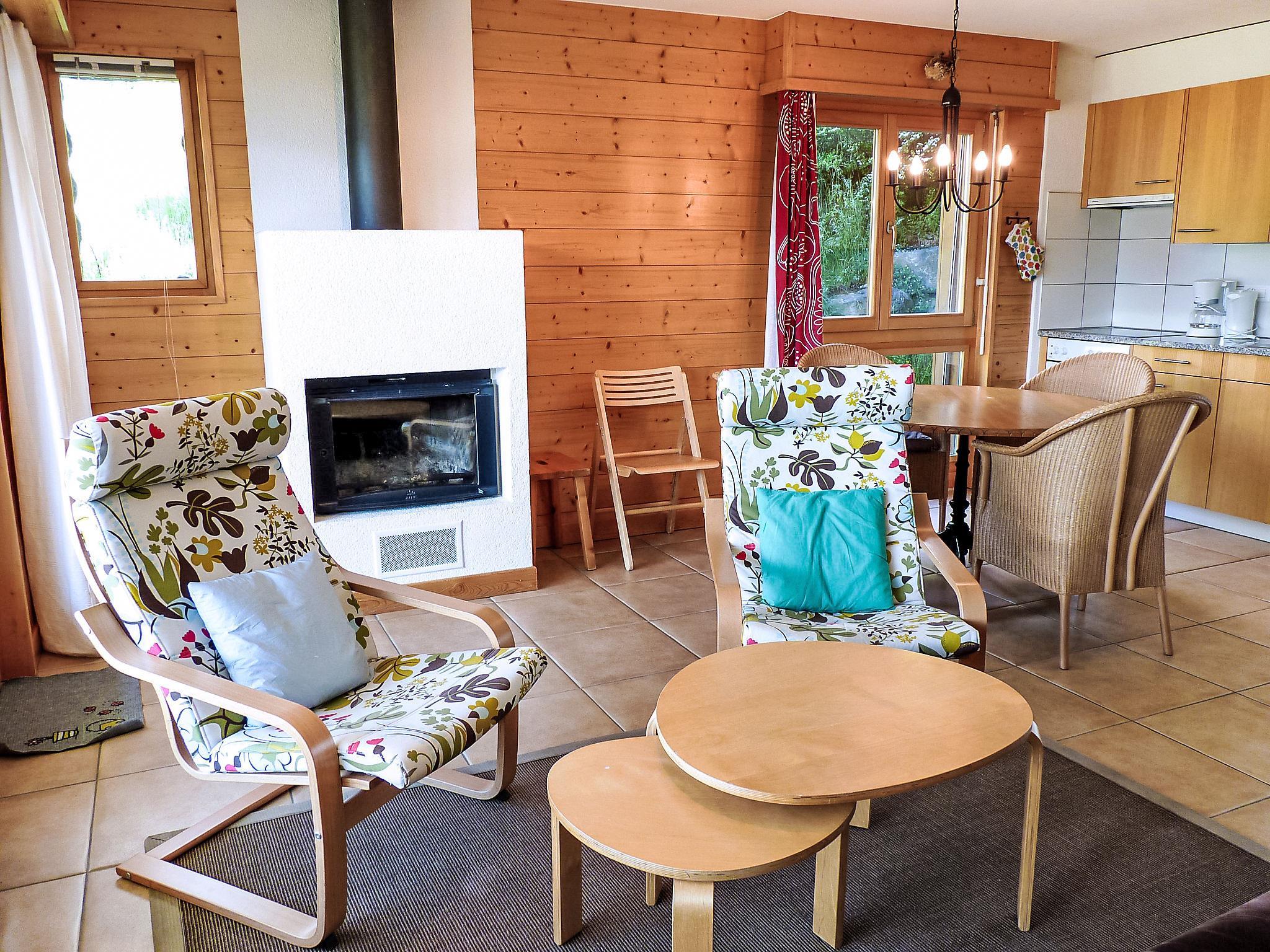 "Fénestral R01", 3-Zimmer-Wohnung 70 m2, im Erdgeschoss. Wohn-/Esszimmer mit 1 Doppeldiwanbett, Esstisch, Kabel-TV und DVD. Ausgang zur Terrasse, Richtung Südwesten. 2 Zimmer, jedes Zimmer mit 2 Betten (90 cm, Länge 200 cm). (Geschirrspüler, 4 Glaskeramikplatten, Mikrowelle, elektrische Kaffeemaschine, Kapseln für die Kaffeemaschine (Nespresso) extra, Fondue Set (Käse)). Bad/WC, Dusche/WC. Terrasse. Terrassenmöbel. Schöne Sicht auf die Berge. Zur Verfügung: Internet (Wireless LAN, gratis). Garage Nr. R0 1. Geeignet für Familien.