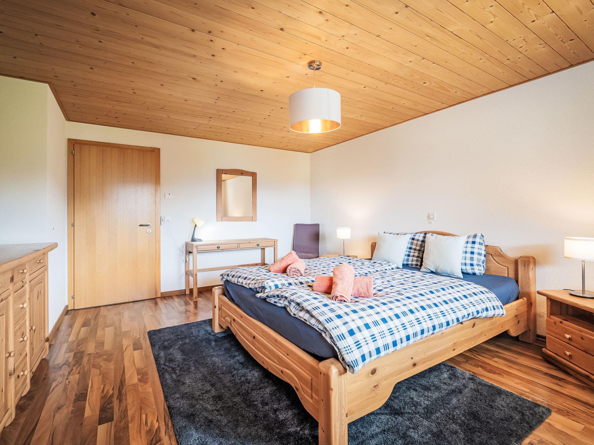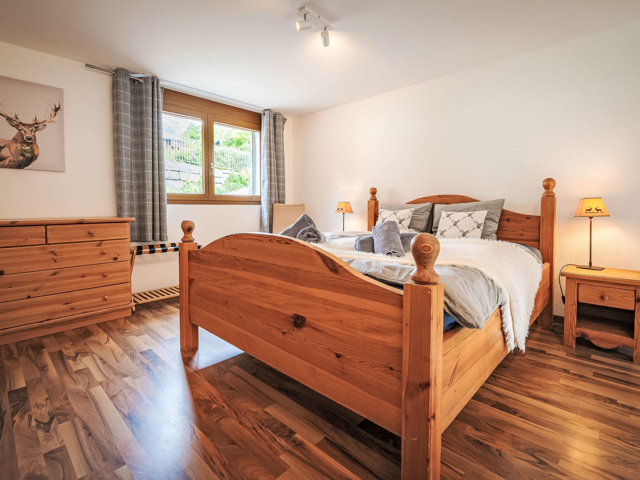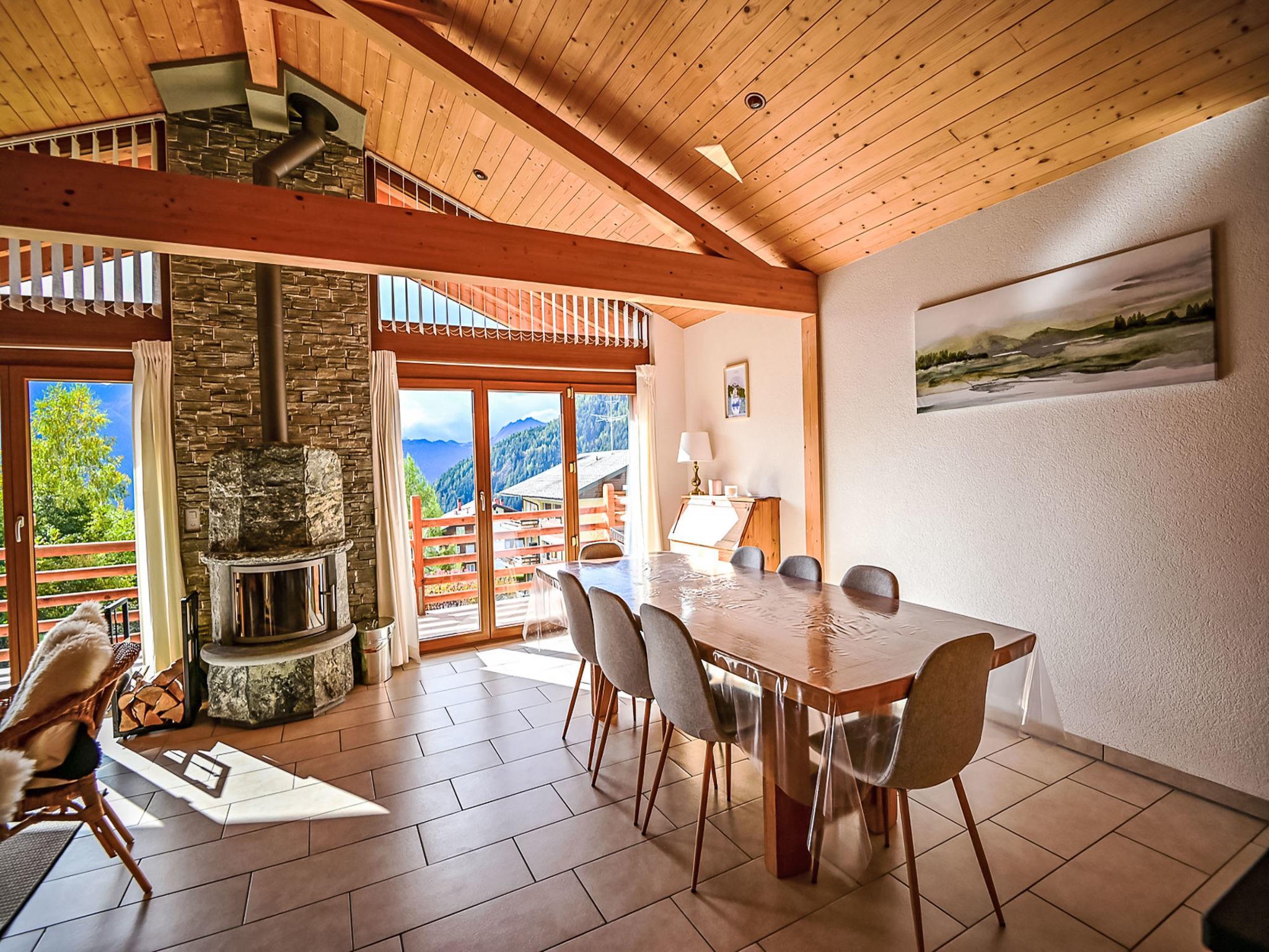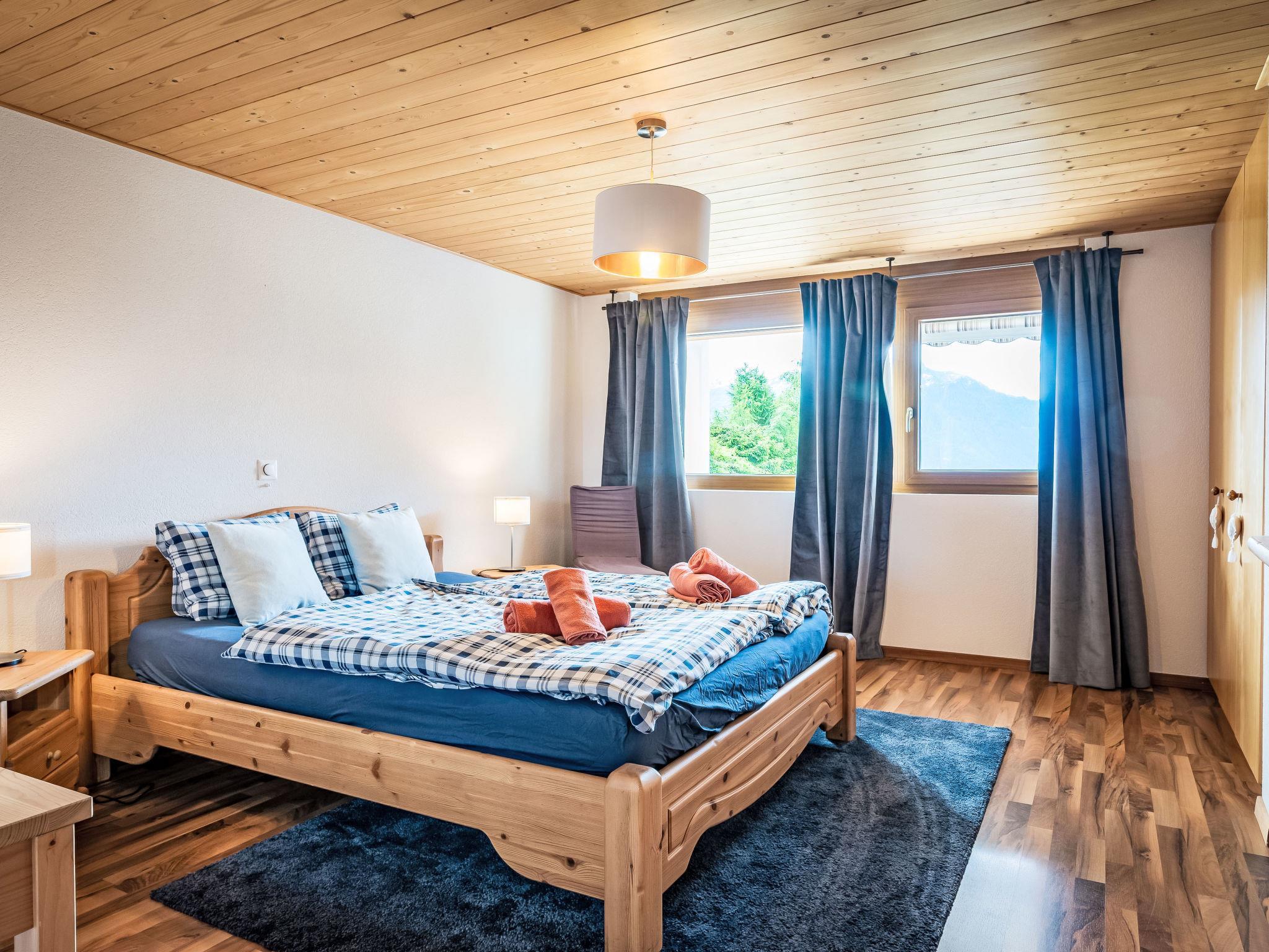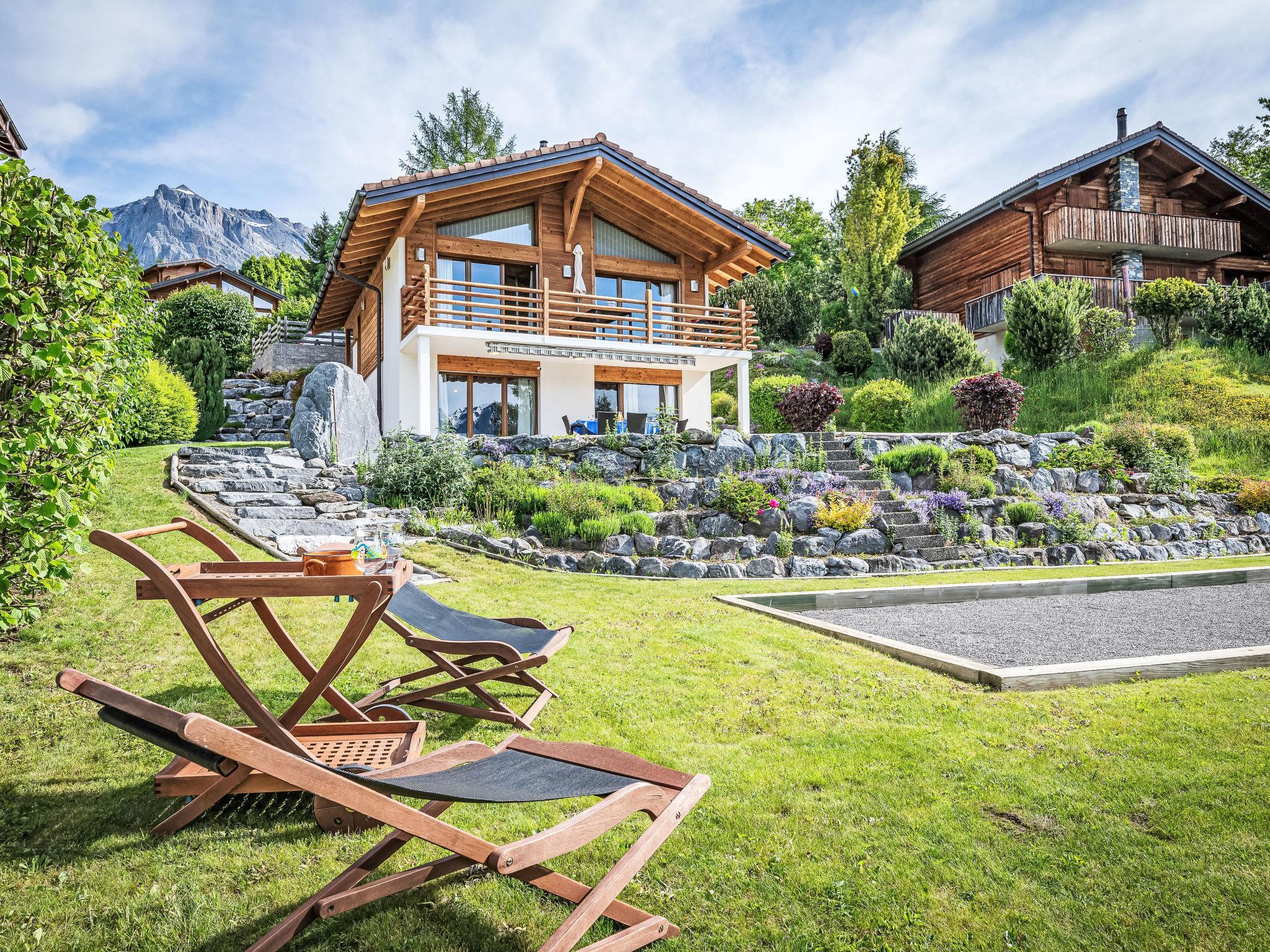 "Le Souvenir", 5-Zimmer-Chalet 168 m2 auf 3 Stockwerken, Südlage. Objekt geeignet für 8 Erwachsene + 2 Kinder. Geräumig und hell, teilweise renoviert im Jahre 2022, schön und geschmackvoll eingerichtet: grosses Wohn-/Esszimmer mit Schwedenofen und Kabel-TV. Ausgang zum Balkon. 1 grosses Zimmer mit 1 franz. Bett (160 cm, Länge 200 cm), Bad/Dusche und TV. Offene Küche (Backofen, Geschirrspüler, 4 Induktionskochplatten, Toaster, Wasserkocher, Mikrowelle, Tiefkühler, elektrische Kaffeemaschine, Kapseln für die Kaffeemaschine (Nespresso) extra, Dampfgarer, Racletteofen, Fondue Set (Käse)). Ausgang zur Terrasse. Sep. WC. Unteres Geschoss: 1 kleines Zimmer mit 1 x 2 Etagenbetten (90 cm, Länge 200 cm). 1 grosses Zimmer mit 1 franz. Bett (160 cm, Länge 200 cm), Kabel-TV. 1 Zimmer mit 1 Diwanbett (140 cm, Länge 190 cm), 1 franz. Bett (160 cm, Länge 200 cm). Ausgang zum Garten, zur Terrasse. Bad/WC, Dusche/WC, sep. WC. Obergeschoss: Gepäckraum. Balkon, Südlage, grosse Terrasse, Südlage, kleine Terrasse, Westlage, grosser Garten, Südlage. Terrassenmöbel, Gartengrill (mobil). Sehr schöne Panoramasicht auf die Berge, das Tal und die Landschaft. Zur Verfügung: Waschmaschine, Wäschetrockner, Bügeleisen, Babybett bis 2 Jahre, Haartrockner. Internet (WLAN, gratis). Parkplatz (3 Autos), Garage (2 Autos), Höhe 228 cm, Breite 520 cm. Bitte beachten: Nichtraucher-Haus. Maximal 1 Haustier/Hund erlaubt.