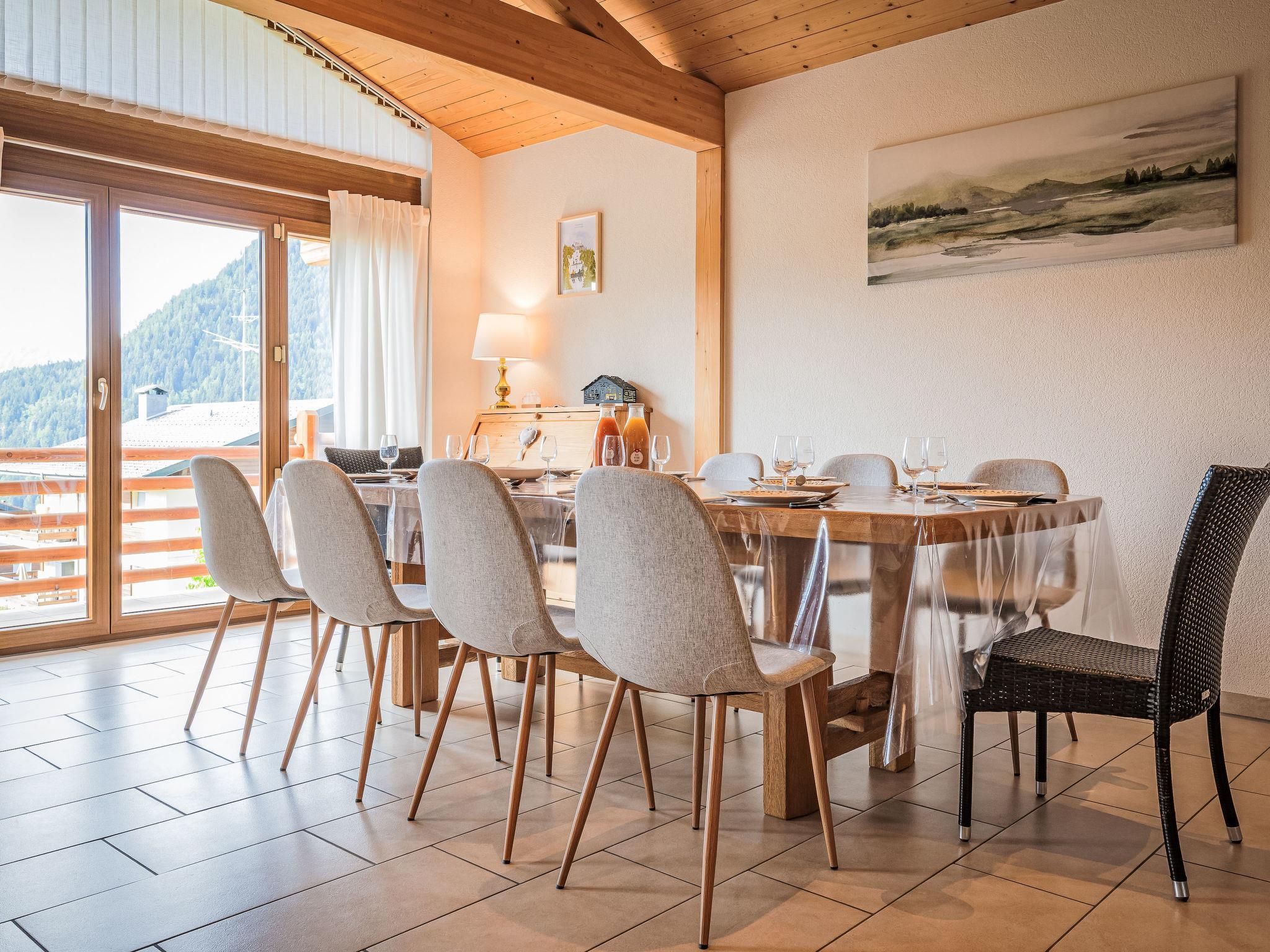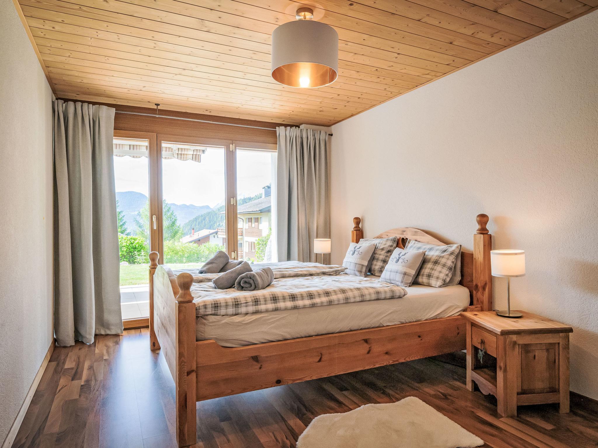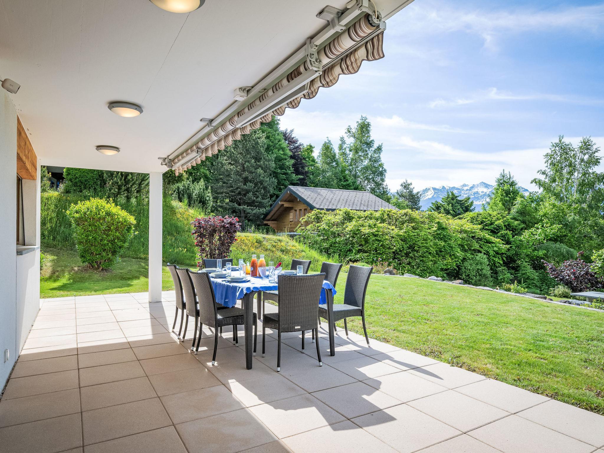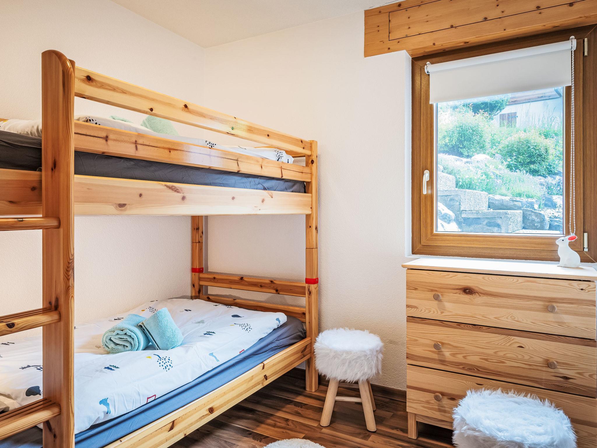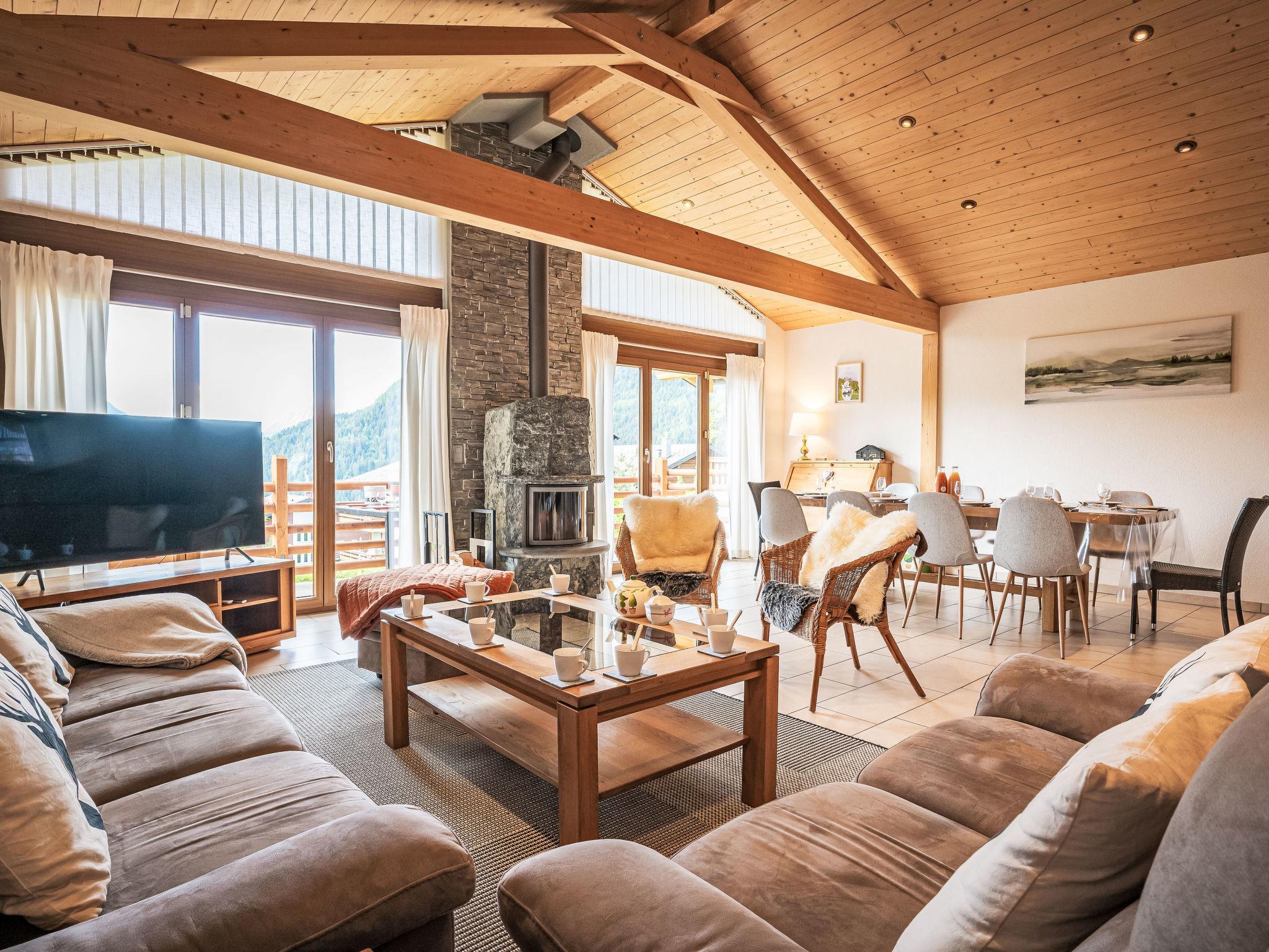 "Le Souvenir", 5-Zimmer-Chalet 168 m2 auf 3 Stockwerken, Südlage. Objekt geeignet für 8 Erwachsene + 2 Kinder. Geräumig und hell, teilweise renoviert im Jahre 2022, schön und geschmackvoll eingerichtet: grosses Wohn-/Esszimmer mit Schwedenofen und Kabel-TV. Ausgang zum Balkon. 1 grosses Zimmer mit 1 franz. Bett (160 cm, Länge 200 cm), Bad/Dusche und TV. Offene Küche (Backofen, Geschirrspüler, 4 Induktionskochplatten, Toaster, Wasserkocher, Mikrowelle, Tiefkühler, elektrische Kaffeemaschine, Kapseln für die Kaffeemaschine (Nespresso) extra, Dampfgarer, Racletteofen, Fondue Set (Käse)). Ausgang zur Terrasse. Sep. WC. Unteres Geschoss: 1 kleines Zimmer mit 1 x 2 Etagenbetten (90 cm, Länge 200 cm). 1 grosses Zimmer mit 1 franz. Bett (160 cm, Länge 200 cm), Kabel-TV. 1 Zimmer mit 1 Diwanbett (140 cm, Länge 190 cm), 1 franz. Bett (160 cm, Länge 200 cm). Ausgang zum Garten, zur Terrasse. Bad/WC, Dusche/WC, sep. WC. Obergeschoss: Gepäckraum. Balkon, Südlage, grosse Terrasse, Südlage, kleine Terrasse, Westlage, grosser Garten, Südlage. Terrassenmöbel, Gartengrill (mobil). Sehr schöne Panoramasicht auf die Berge, das Tal und die Landschaft. Zur Verfügung: Waschmaschine, Wäschetrockner, Bügeleisen, Babybett bis 2 Jahre, Haartrockner. Internet (WLAN, gratis). Parkplatz (3 Autos), Garage (2 Autos), Höhe 228 cm, Breite 520 cm. Bitte beachten: Nichtraucher-Haus. Maximal 1 Haustier/Hund erlaubt.
