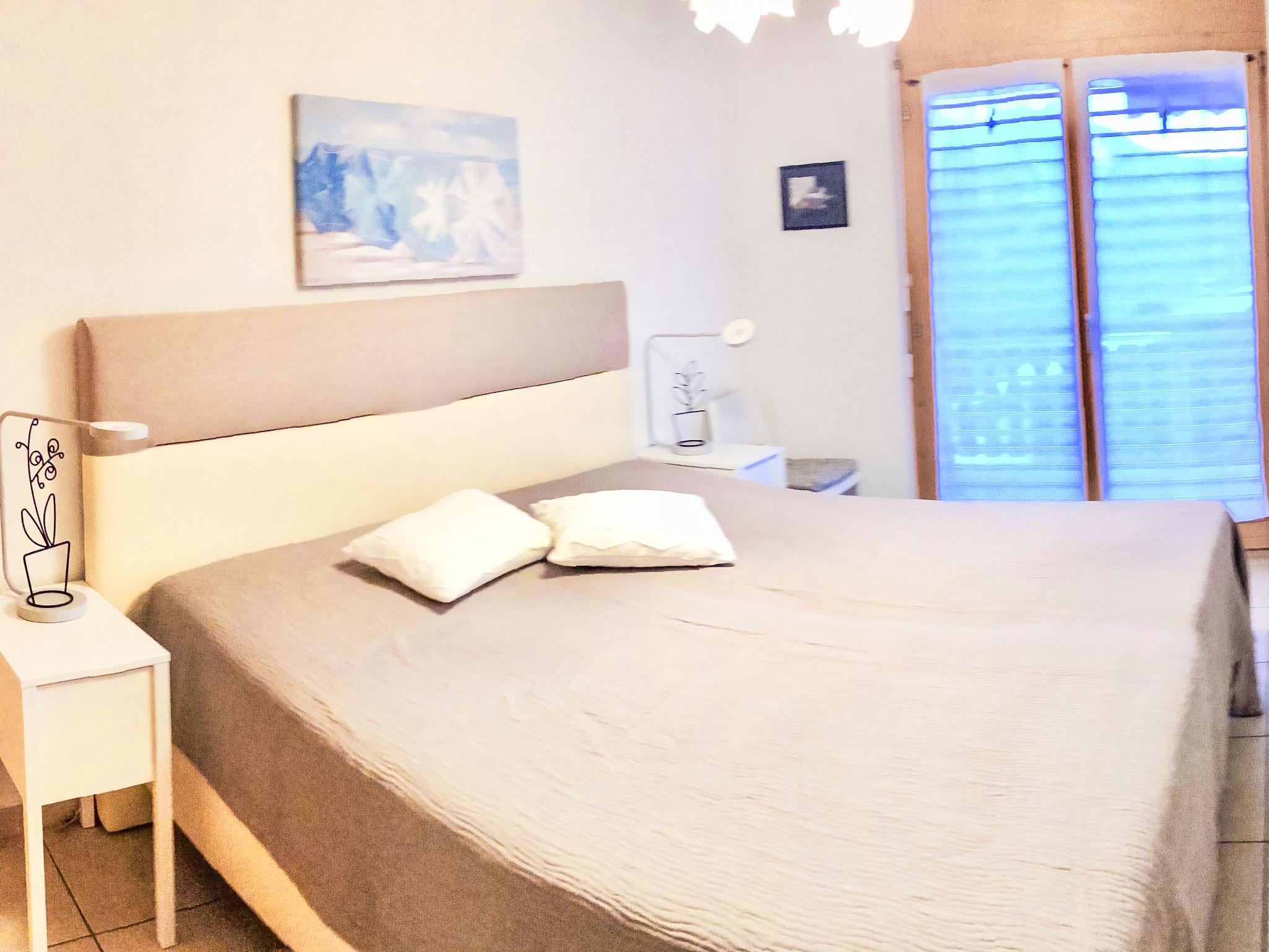 "Viognier 5", 2-Zimmer-Wohnung 60 m2 im 2. Stock, Südlage. Komfortabel und modern eingerichtet: Eingang. Wohn-/Esszimmer mit 1 Diwanbett (140 cm, Länge 200 cm), offenem Kamin und Kabel-TV (Flachbildschirm). Ausgang zum Balkon, Richtung Süden. 1 Zimmer mit 1 Doppelbett (180 cm, Länge 200 cm). Offene Küche (Geschirrspüler, 4 Glaskeramikplatten, Mikrowelle, elektrische Kaffeemaschine, Kapseln für die Kaffeemaschine (Nespresso) extra, Racletteofen, Fondue Set (Chinoise, Käse)). Dusche/WC. Fussbodenheizung. Grosser Balkon 17 m2. Balkonmöbel, Liegestühle (4). Sehr schöne Sicht auf die Berge. Zur Verfügung: Internet (Wireless LAN, gratis). Parkplatz (2 Autos). Bitte beachten: Nichtraucher-Unterkunft.