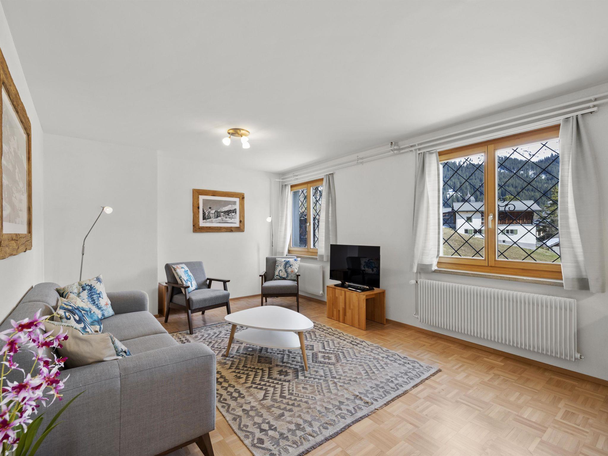 Erdgeschoss / keinen Lift / Wlan ja / 2 Zimmer mit Doppelbetten / 1 Badezimmer mit WC und Dusche Die Wohnung befindet sich im Dorfkern nahe der Kirche. Ebenfalls eine gute Ausgangslage für Wanderungen oder Biketouren und im Winter für ins Skigebiet der Lenzerheide. (Im selben Haus befindet sich die Ferienwohnung Bellavista 6)