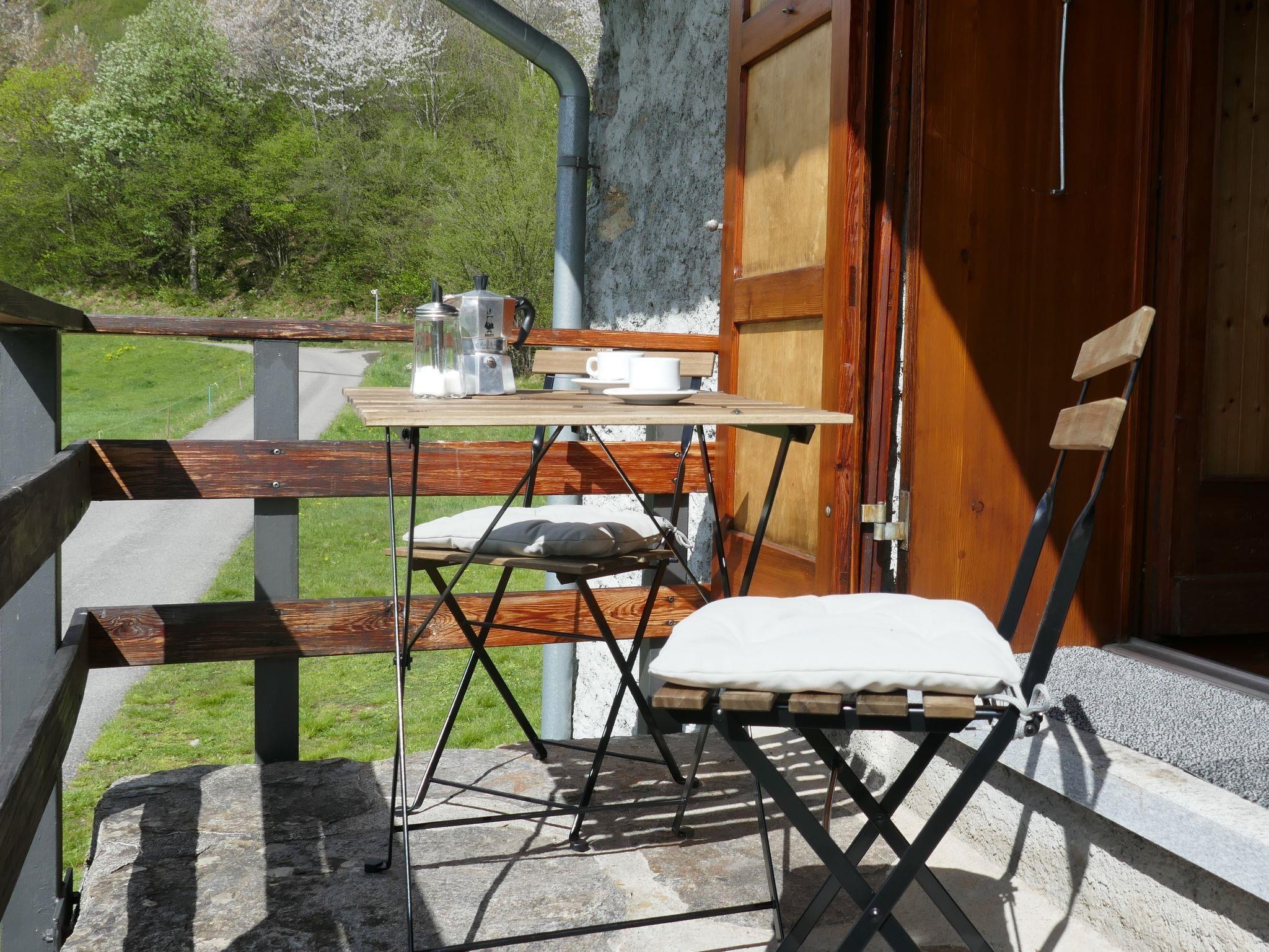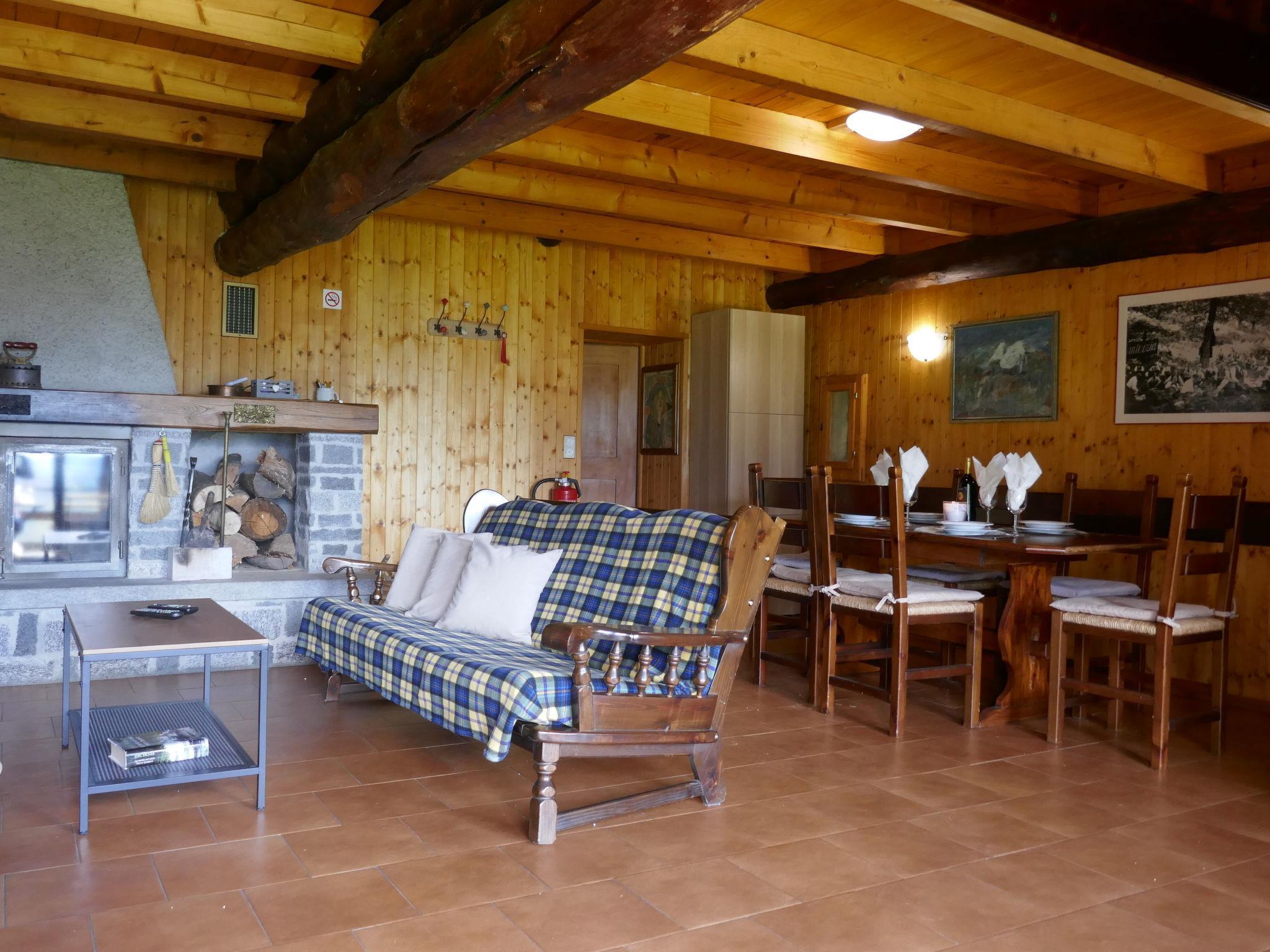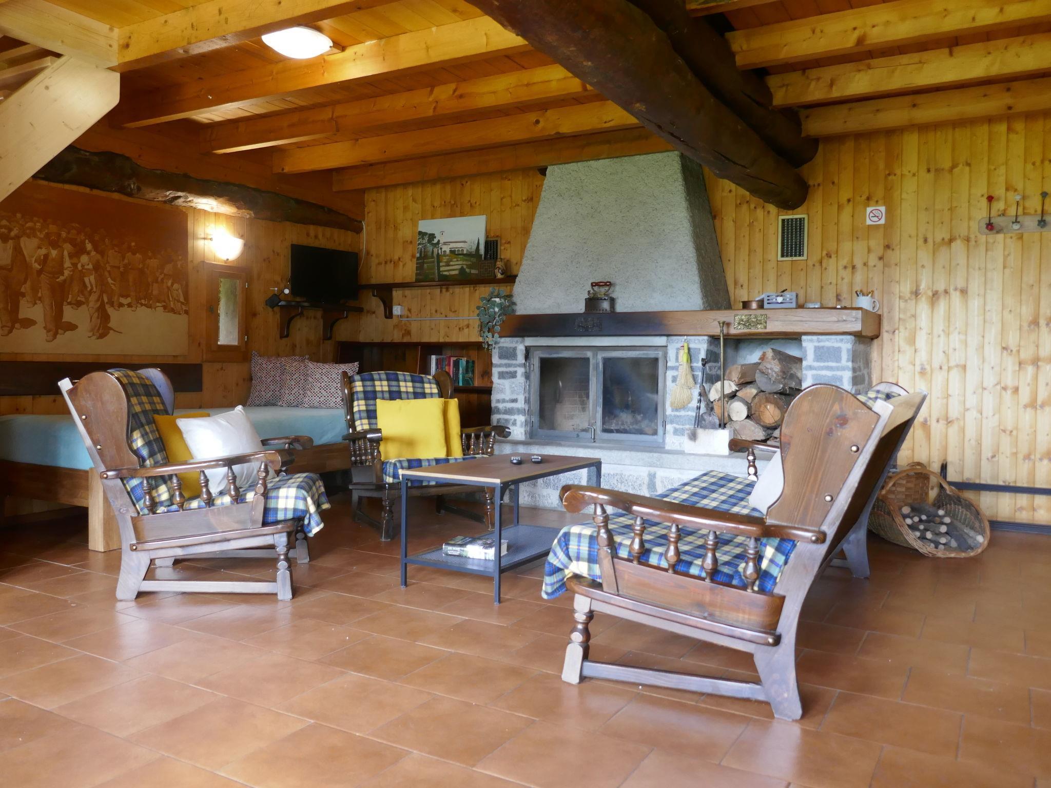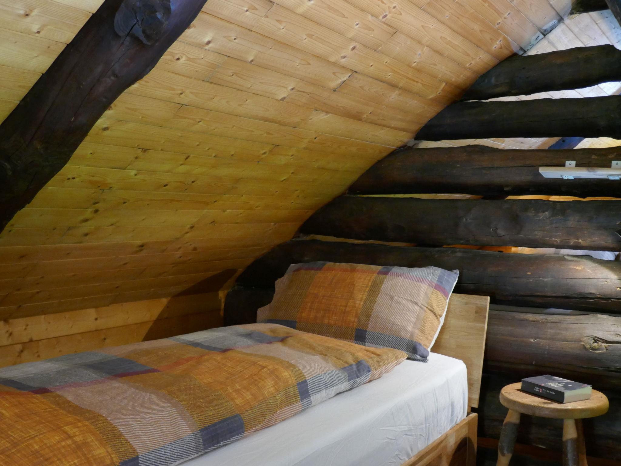 "Sosto", 2-Zimmer-Landhaus 60 m2 auf 2 Stockwerken, Südlage. Teilweise abgeschrägt, rustikal und gemütlich eingerichtet: offenes Wohn-/Esszimmer mit 1 Bett (90 cm, Länge 200 cm), offenem Kamin, Esstisch und Sat-TV. Abgeschrägte Küche (Backofen, Gasherd, 4 Flammen, Tiefkühler, Fondue Set (Käse)) mit Holzofen. Dusche/WC. Holzheizung. Solarstrom. Obergeschoss: abgeschrägter, offener Zwischenstock mit 1 Bett (90 cm, Länge 200 cm), 1 Doppelbett (2 x 80 cm, Länge 200 cm). Komfortable Einrichtung im Landhausstil. Terrassenmöbel, Gartengrill (mobil), Liegestühle (2). Sehr schöne Panoramasicht auf die Berge, das Tal und die Landschaft. Zur Verfügung: Kinderhochstuhl, Babybett bis 2 Jahre (extra). Internet (WLAN, extra). Bitte beachten: geeignet für Familien. Nichtraucher-Haus. Maximal 2 Haustiere/Hunde erlaubt. Feuerlöscher. NL-00006645