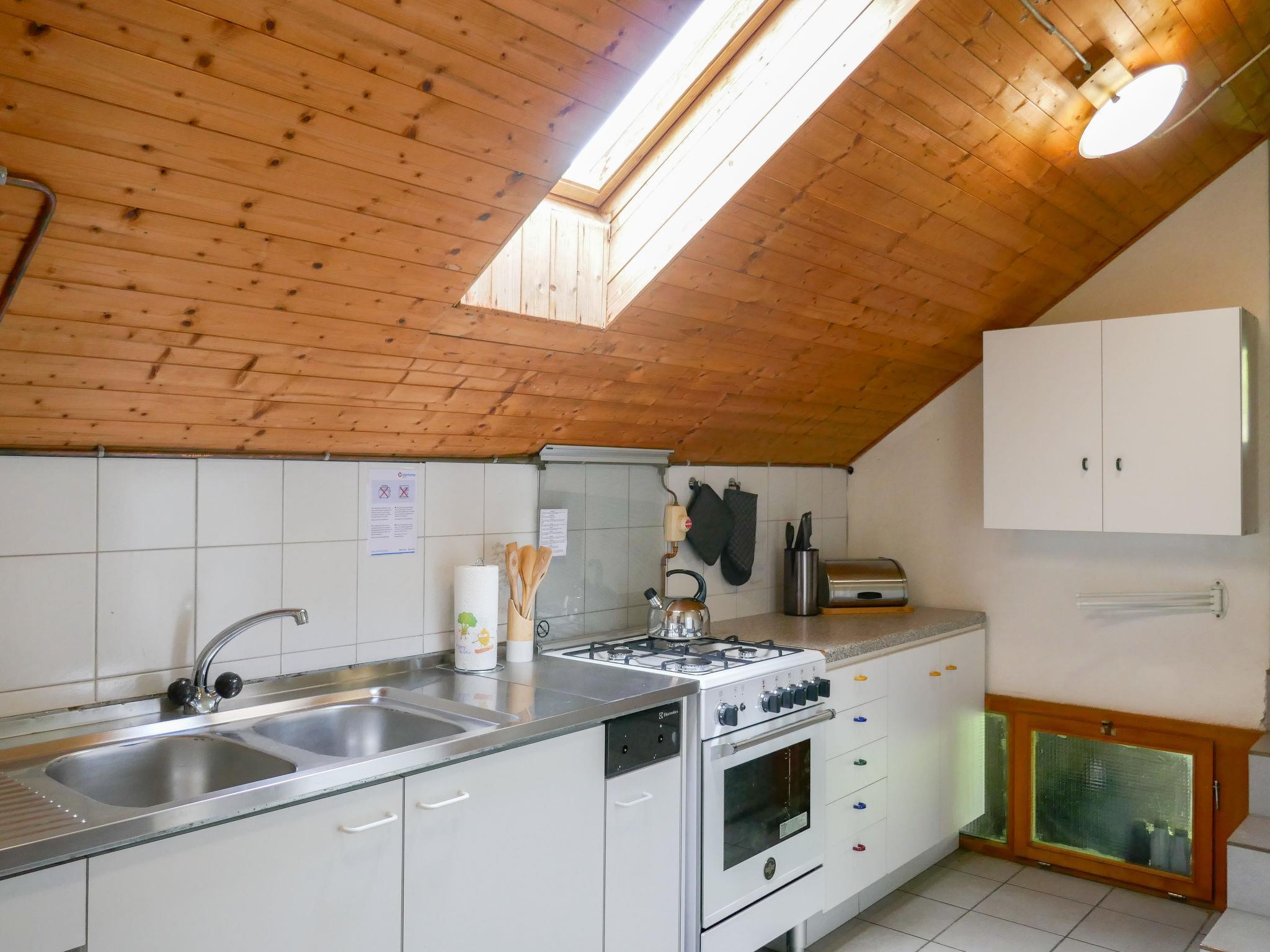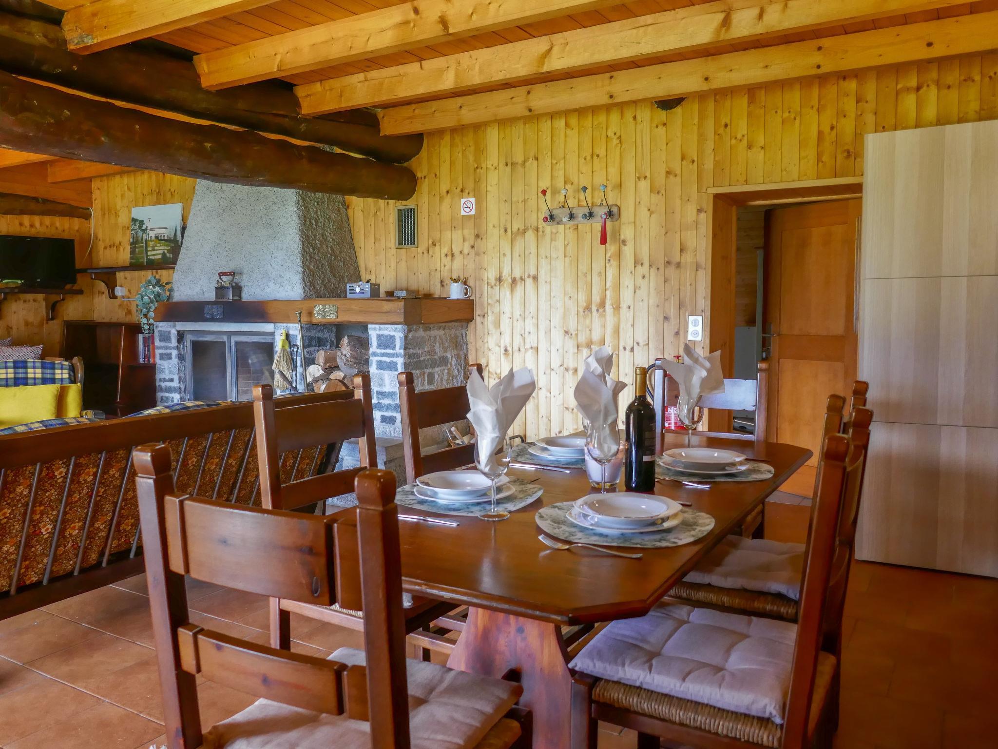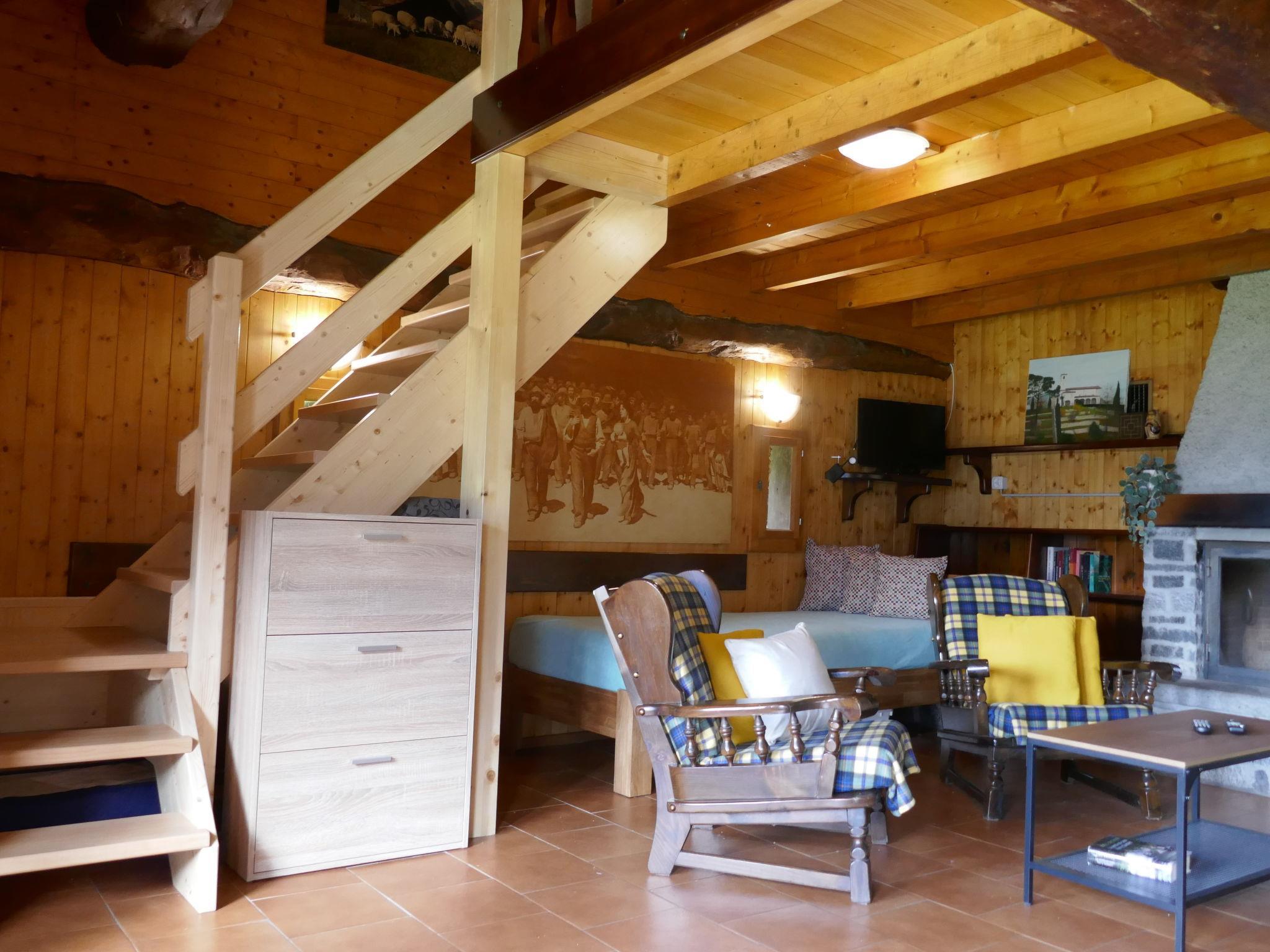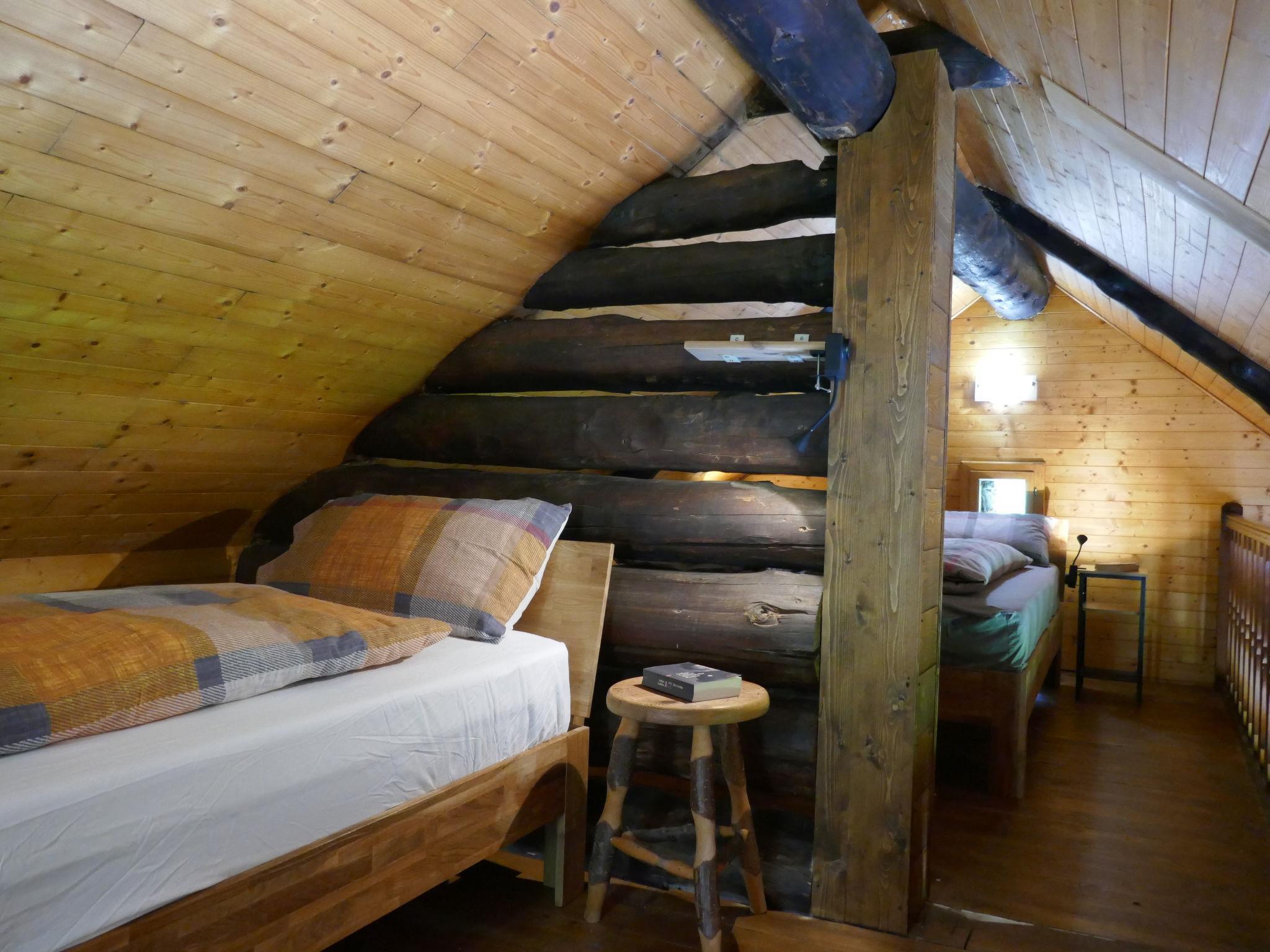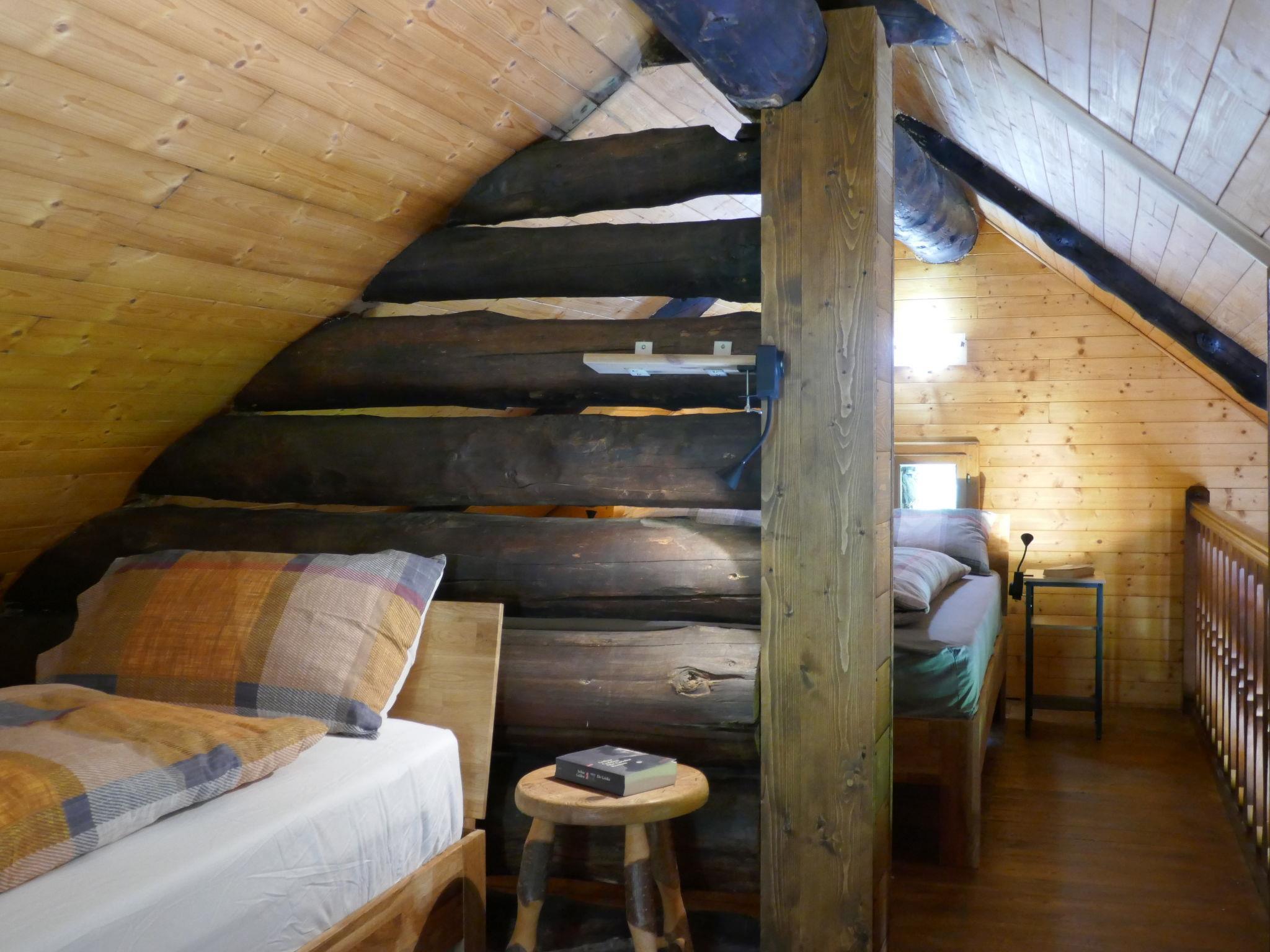 "Sosto", 2-Zimmer-Landhaus 60 m2 auf 2 Stockwerken, Südlage. Teilweise abgeschrägt, rustikal und gemütlich eingerichtet: offenes Wohn-/Esszimmer mit 1 Bett (90 cm, Länge 200 cm), offenem Kamin, Esstisch und Sat-TV. Abgeschrägte Küche (Backofen, Gasherd, 4 Flammen, Tiefkühler, Fondue Set (Käse)) mit Holzofen. Dusche/WC. Holzheizung. Solarstrom. Obergeschoss: abgeschrägter, offener Zwischenstock mit 1 Bett (90 cm, Länge 200 cm), 1 Doppelbett (2 x 80 cm, Länge 200 cm). Komfortable Einrichtung im Landhausstil. Terrassenmöbel, Gartengrill (mobil), Liegestühle (2). Sehr schöne Panoramasicht auf die Berge, das Tal und die Landschaft. Zur Verfügung: Kinderhochstuhl, Babybett bis 2 Jahre (extra). Internet (WLAN, extra). Bitte beachten: geeignet für Familien. Nichtraucher-Haus. Maximal 2 Haustiere/Hunde erlaubt. Feuerlöscher. NL-00006645