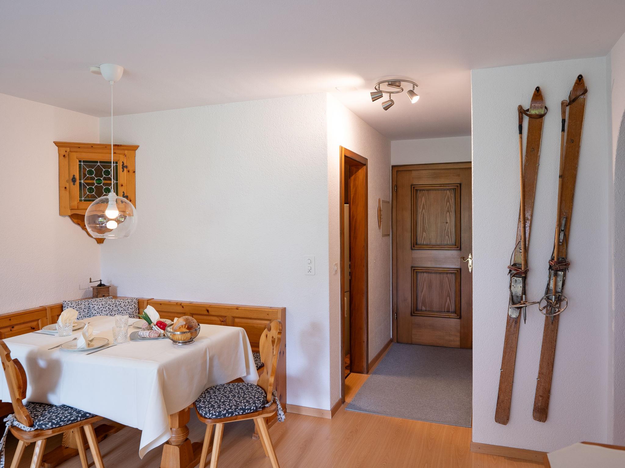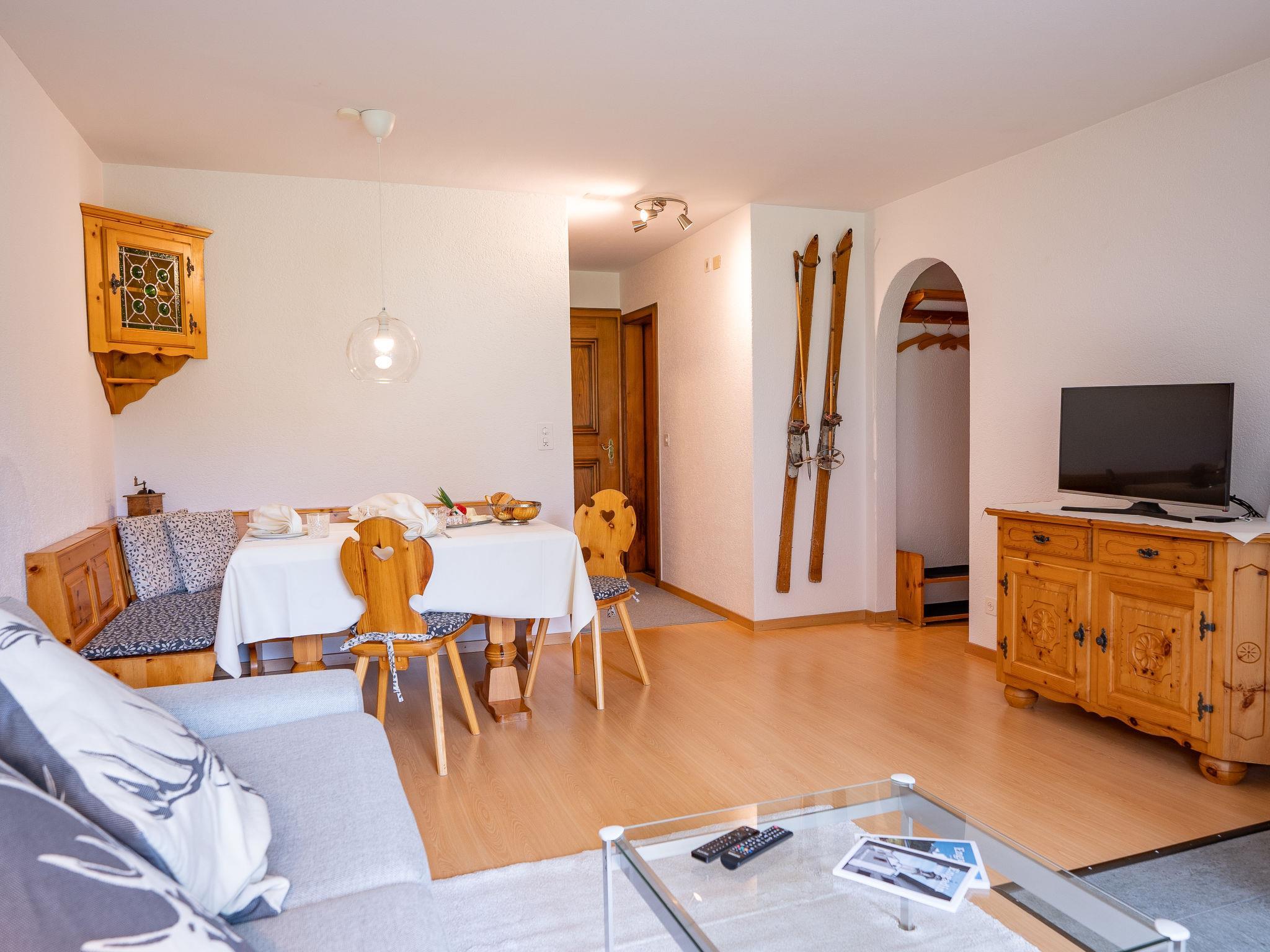 "Chesa Palüdin 10 - Pontresina", 2-Zimmer-Wohnung 50 m2 im 1. Stock. Hell, teilweise renoviert im Jahre 2023, einfach und gemütlich eingerichtet: 1 Doppelzimmer mit 1 Doppelbett (1 x 160 cm, Länge 200 cm). Offenes Wohn-/Esszimmer mit 1 Diwanbett (160 cm, Länge 200 cm), offenem Kamin, Esstisch, TV und Flachbildschirm. Ausgang zum Balkon. Kleine Küche (Backofen, Geschirrspüler, 4 Glaskeramikplatten, Toaster, Wasserkocher, elektrische Kaffeemaschine, Kapseln für die Kaffeemaschine (Nespresso) extra, Racletteofen, Fondue Set (Chinoise, Käse)). Bad/WC. Heizung. Kleiner Balkon. Balkonmöbel. Schöne Sicht auf die Berge und die Landschaft. Zur Verfügung: Haartrockner. Internet (Wireless LAN, gratis). Garage Nr. 10 (parking lift) auf dem Grundstück (1 Auto), Höhe 205 cm, Breite 190 cm. Bitte beachten: Nichtraucher-Unterkunft, Nichtraucher-Haus. Kein Fahrstuhl. :Garagenlift in Breite und Länge begrenzt - grössere Fahrzeuge müssen in einem gebührenpflichtigen öffentlichen Parkplatz im Ort parkiert werden.