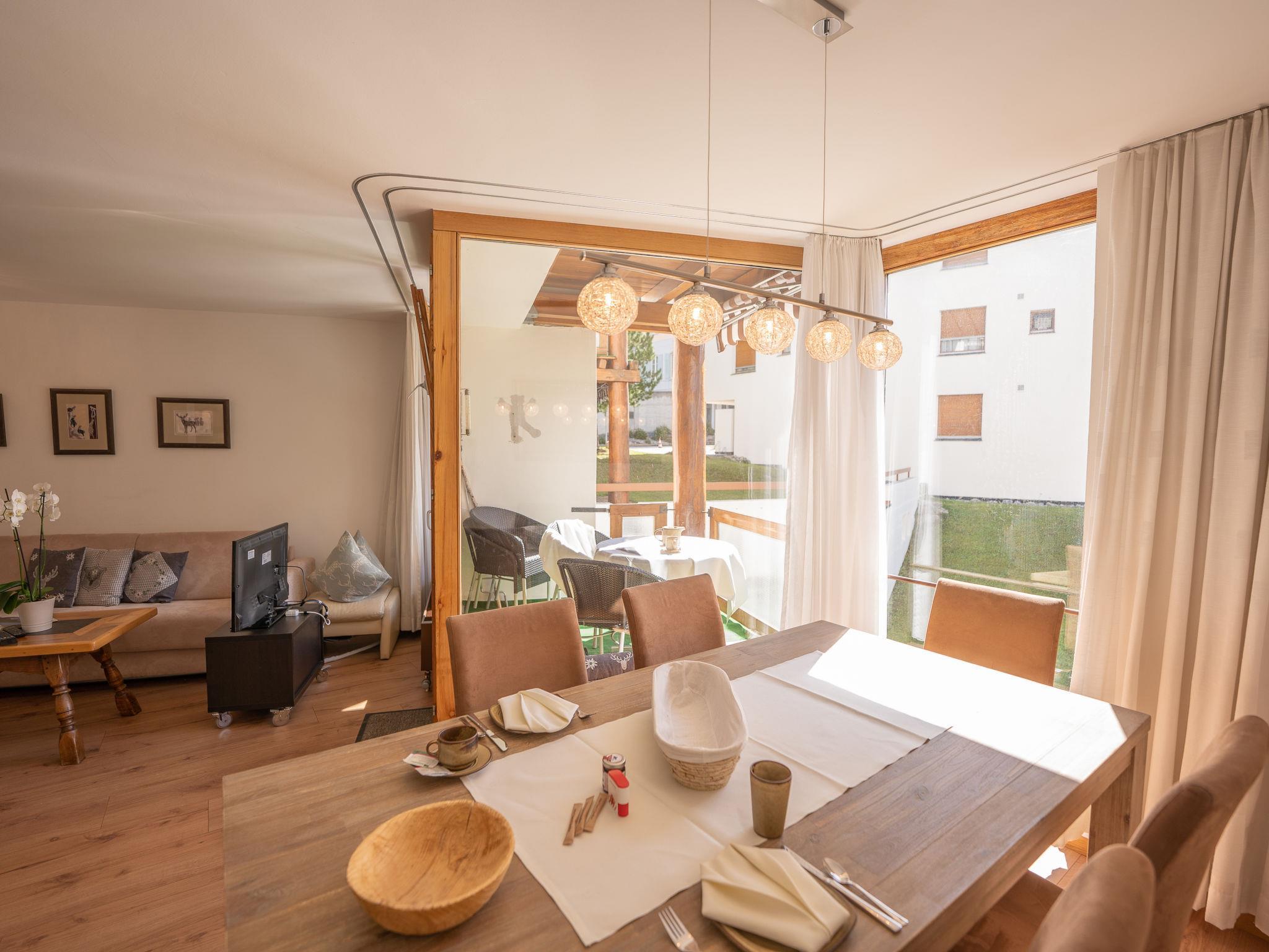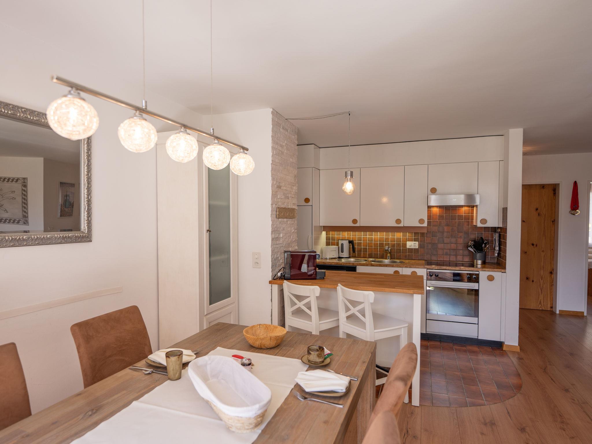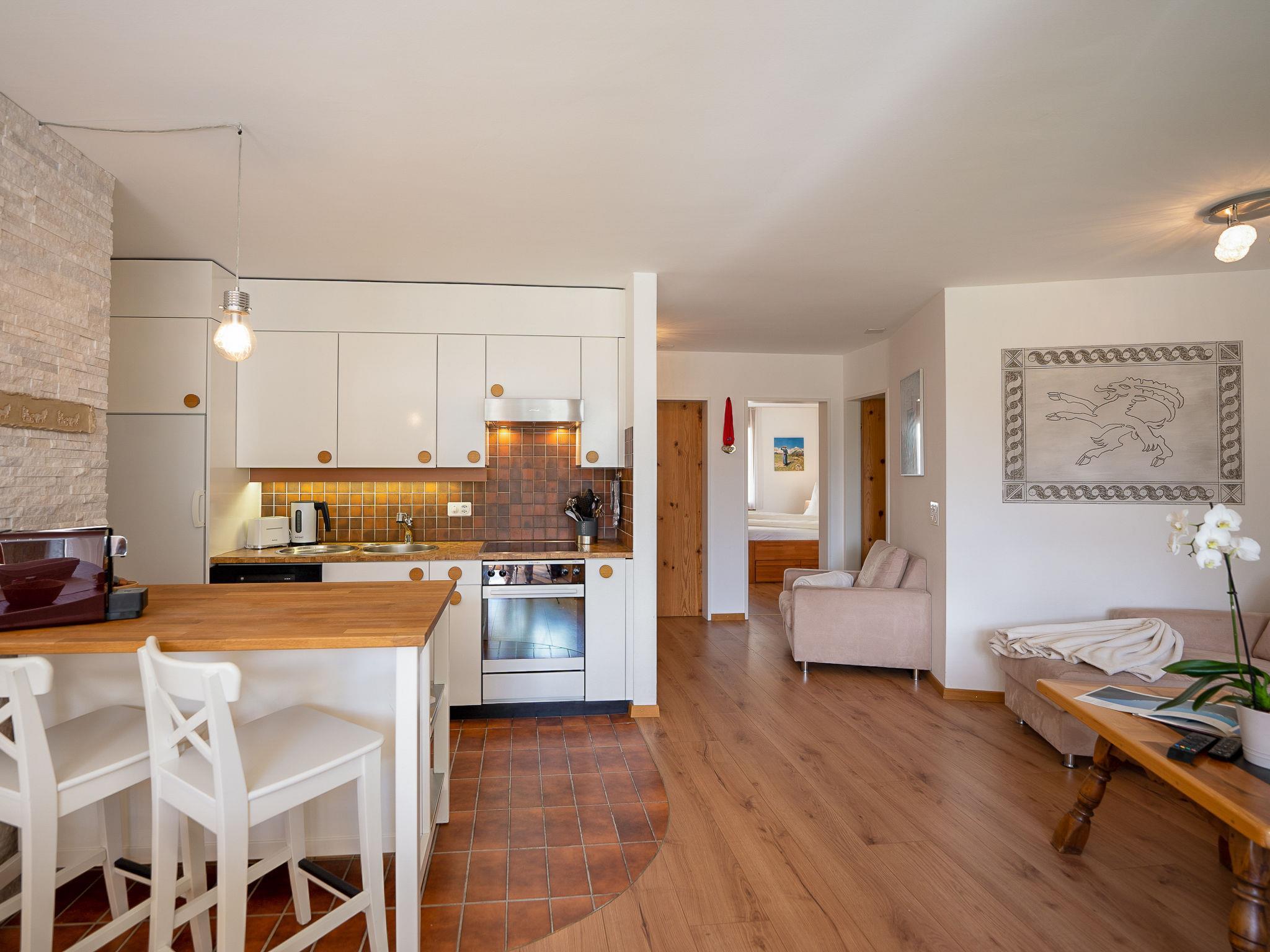"Chesa Piz Cotschen 3", 2-Zimmer-Wohnung 60 m2 im 1. Stock. Hell, modern und gemütlich eingerichtet: Wohn-/Esszimmer mit Esstisch und TV (Flachbildschirm). Ausgang zur Loggia. 1 Doppelzimmer mit 1 Doppelbett (2 x 90 cm, Länge 200 cm). Offene Küche (Backofen, Geschirrspüler, 4 Glaskeramikplatten, Toaster, Wasserkocher, elektrische Kaffeemaschine, Kapseln für die Kaffeemaschine (Delizio Migros) extra, Racletteofen, Fondue Set (Käse)). Dusche/WC. Holzdielenboden. Balkonmöbel. Schöne Sicht auf die Berge und die Landschaft. Zur Verfügung: Babybett (extra), Haartrockner. Internet (Wireless LAN, gratis). Garage Nr. DIEAG (50m), Höhe 200 cm, Breite 220 cm. Bitte beachten: Nichtraucher-Unterkunft, Nichtraucher-Haus. Maximal 1 Haustier/Hund erlaubt.