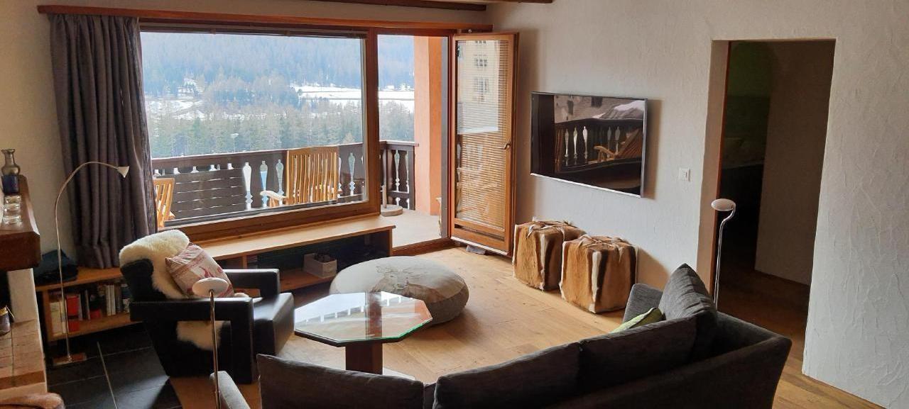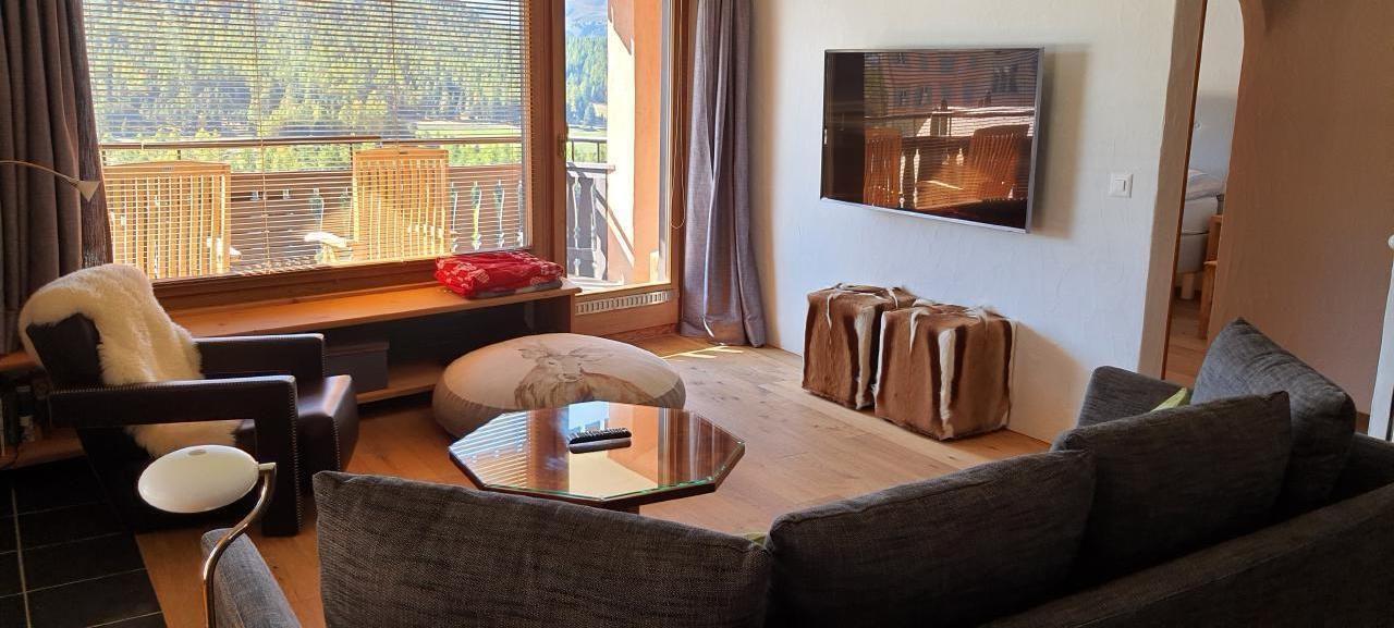 Sonstige Wohnzimmerausstattung (Wohnzimmer1): gosser Arvenholz Esstisch mit dreiseitigem Eckbank, gemütliche Couchecke mit herrlichem, freien Blick in die Bergwelt, Zugang zum Balkon Richtung Süden