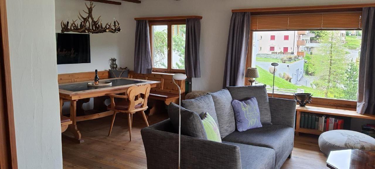 Sehr geschmackvoll eingerichtete Wohnung, sehr gepflegt, neu renovierte Küche und Bad. Grosses, stilvoll eingerichtetes Wohn-/ Esszimmer mit SAT-TV, Radio und Internetanschluss und grosser Terrasse. Grosser Esstisch mit Eckbank. Küche offen zum Wohnzimmer, mit Ceran Kochfeld, Geschirrspüler, Nespresso-Kaffeemaschine, Backofen mit Mikrowelle, Racletteofen, Fonduegarnitur und Milchschäumer. Ein Doppelzimmer mit direktem Zugang zur grossen Terrasse mit freier Sicht in die Engadiner Bergwelt. Badezimmer mit Badewanne mit Dusche, grosses Lavabo, Handtuchwärmer und WC. Einzel Garagenbox, Skiraum. Nichtraucherwohnung. Haustiere nicht erlaubt. Gemeinsamwaschmaschine im Haus zur Benutzung nach Absprache. Abholdienst von und zum Bahnhof Pontresina möglich. Alle offenen Bergbahnen sind im Sommer frei benutzbar, ebenso ist der öffentliche Verkehr im Verbundgebiet inklusive.