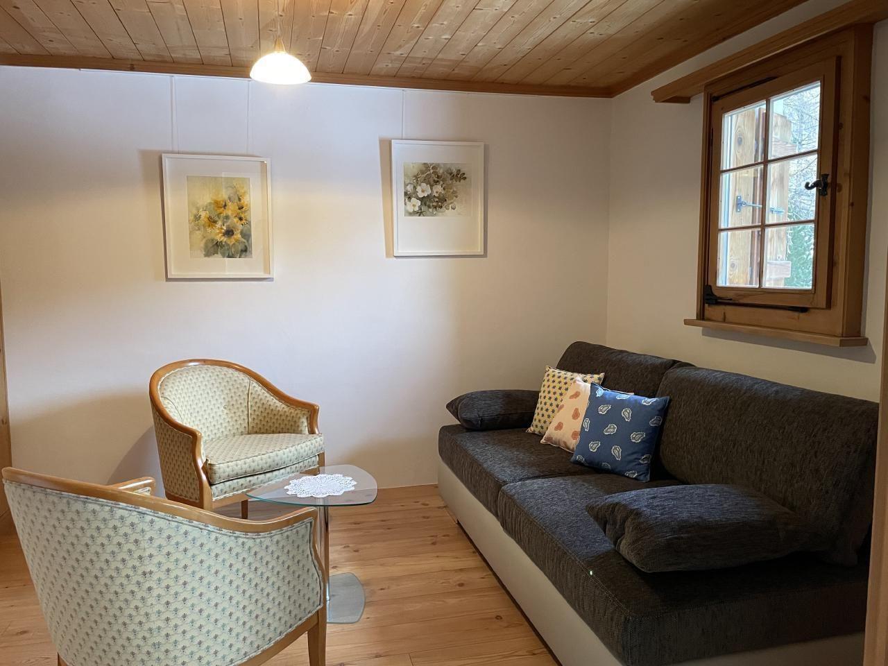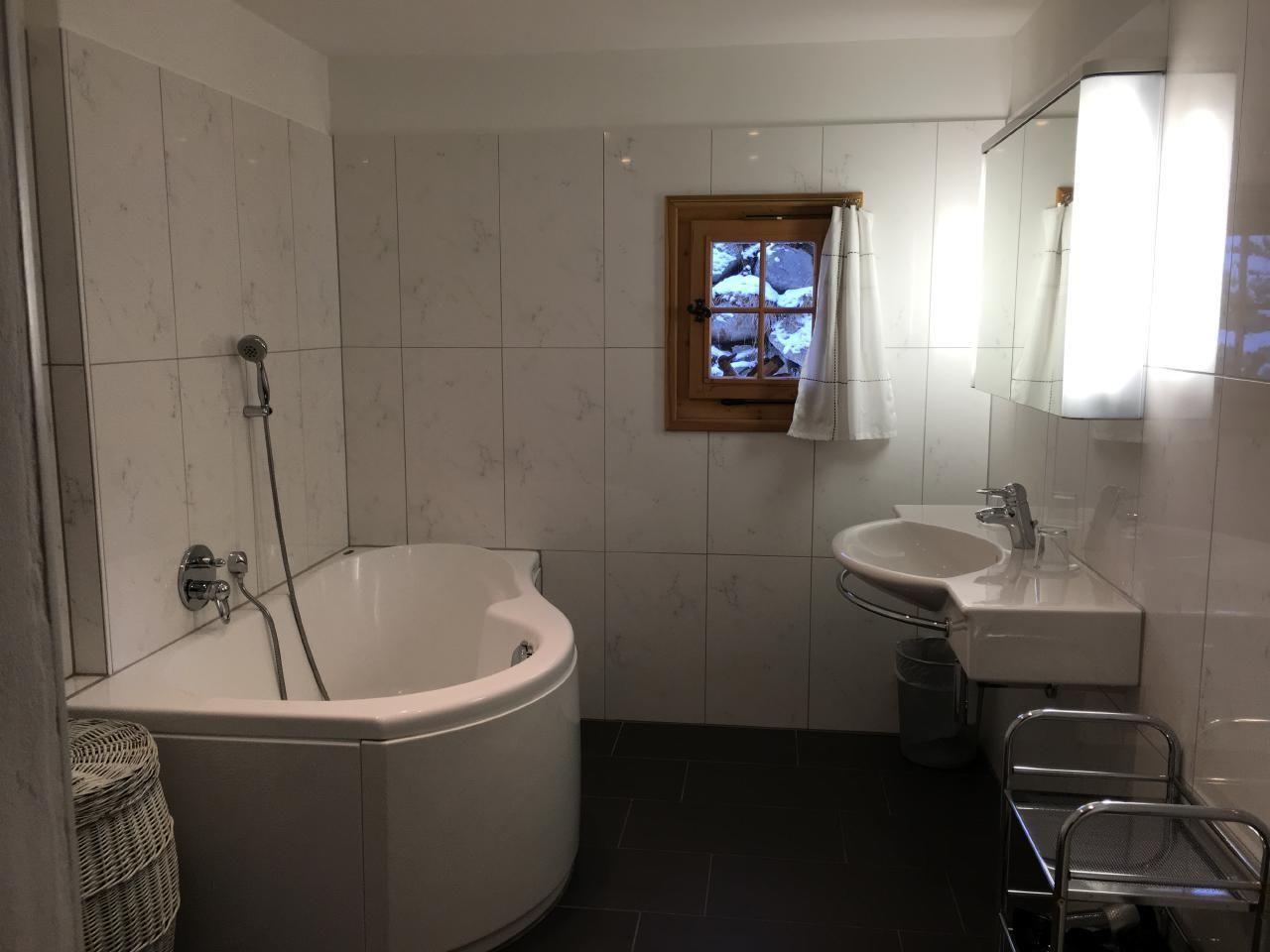 Moderne, total erneuerte 3-Zimmerwohnung (76m2). Sonnige, sehr ruhige Lage am Waldrand mit schöner Aussicht. Grosser Garten mit Sitzplätzen, eingebautem Kühlschrank und Geschirr für Grillplausch. 2 Doppelschlafzimmer. Wohnzimmer mit SAT-TV und Telefon. 2 Nasszellen (1 Bad, WC/1 Dusche,WC). Modernst eingerichtete offene Küche mit Geschirrspüler, Backofen, Steamer, Kaffeemaschine. Analoger, kostenloser Internetanschluss. Waschmaschine, Skiraum, Veloraum im Haus. Parkplatz. Die Loipe führt am Haus vorbei. Wanderungen gleich ab dem Haus. Nähe Bahnhof, Bushaltestelle, Langlaufzentrum. Der Vermieter wohnt im Haus.