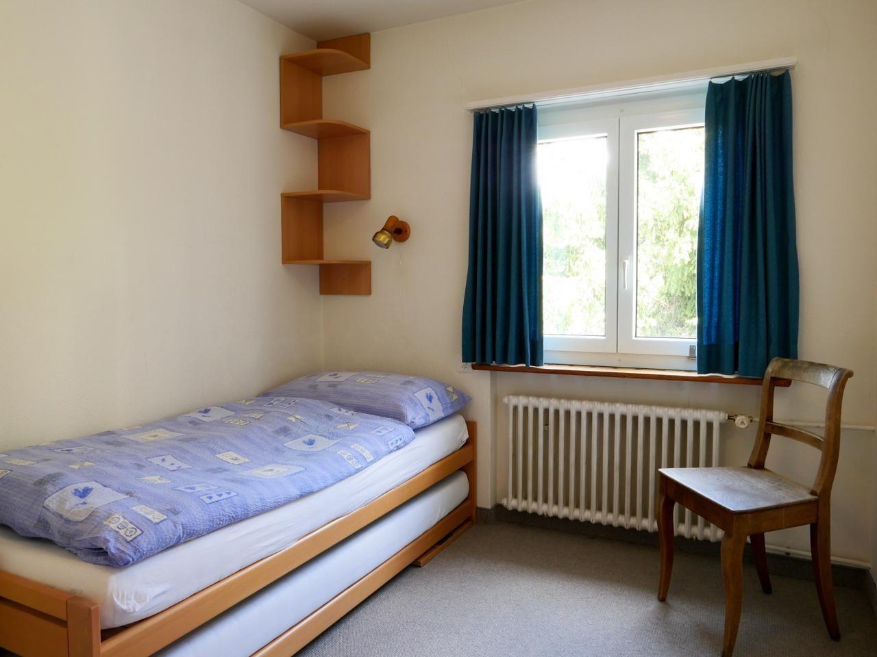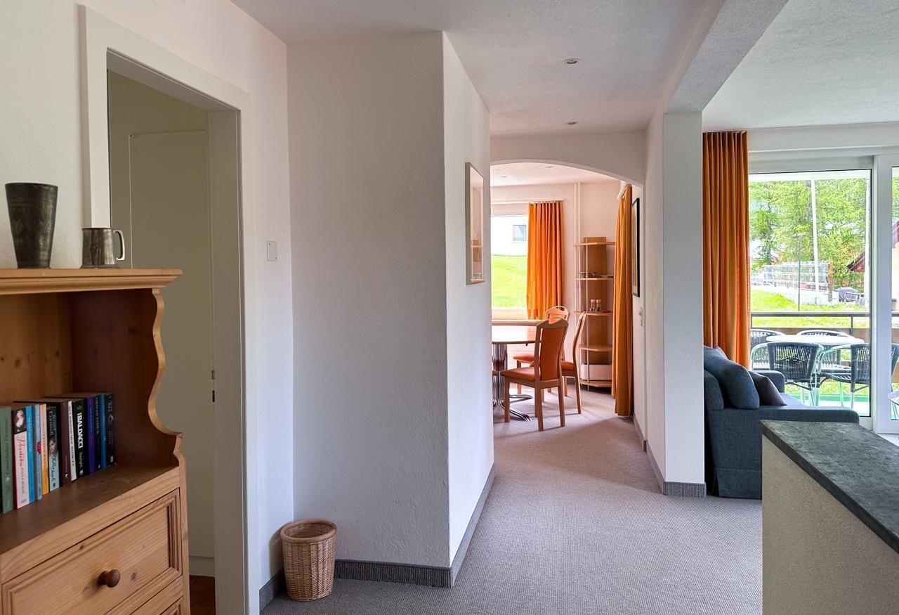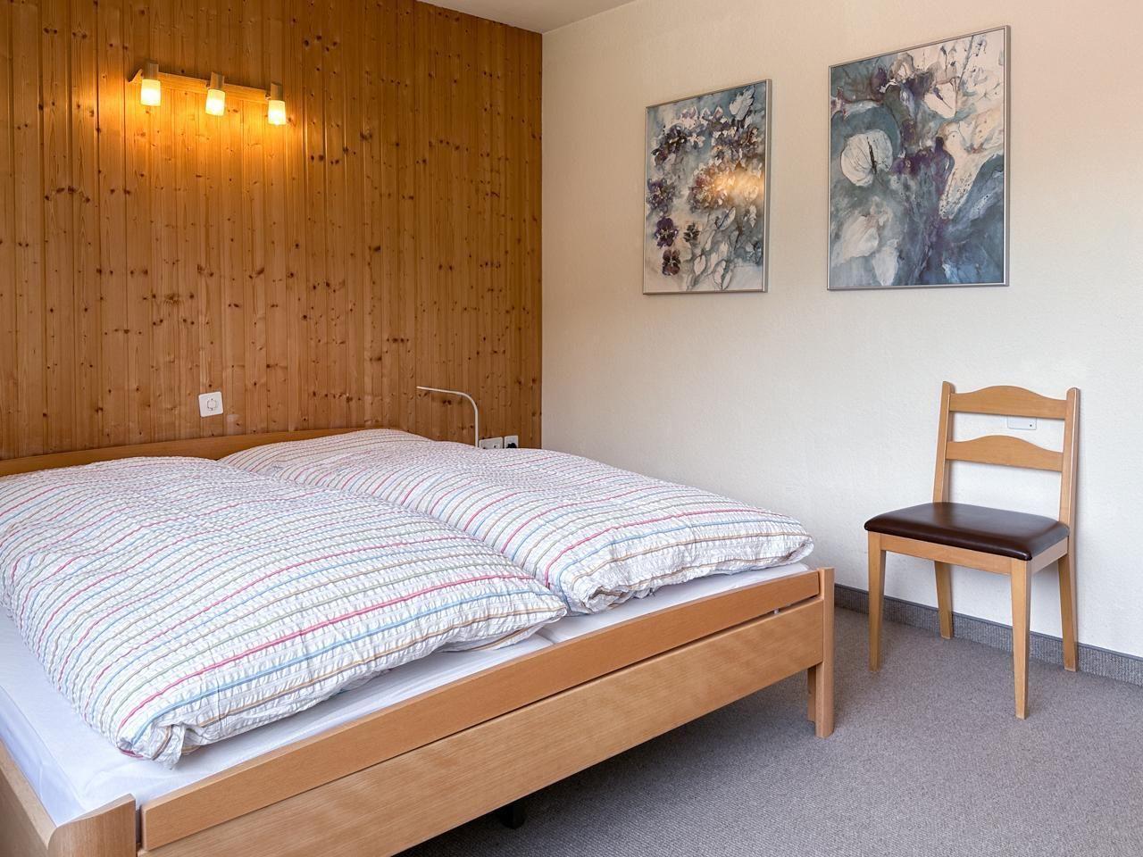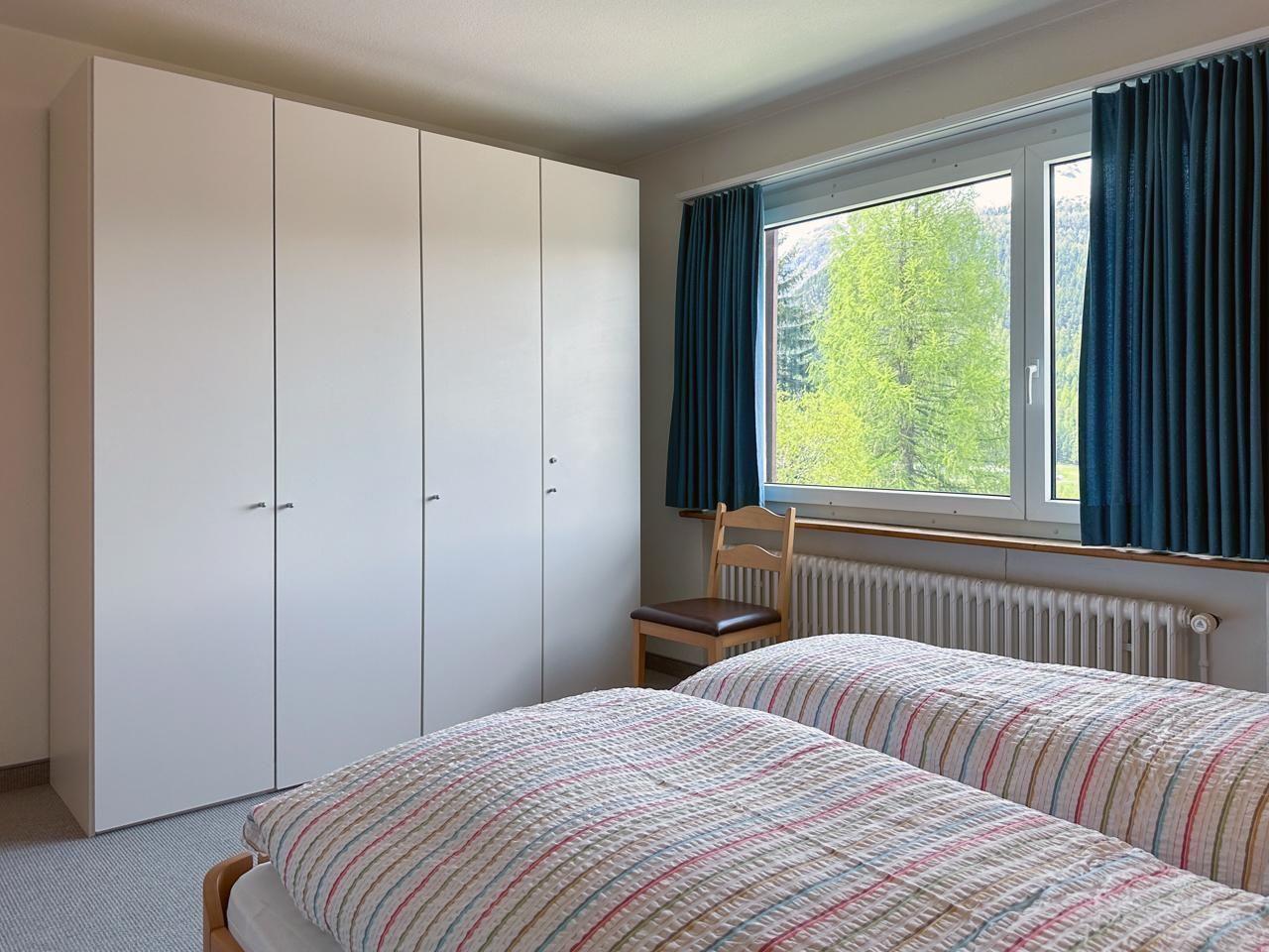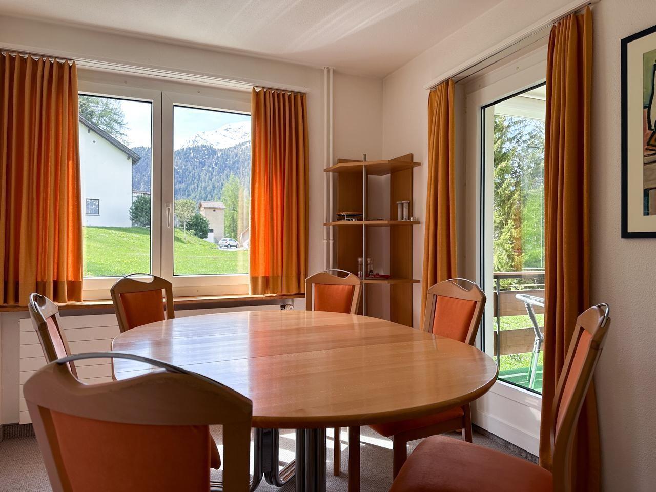 Sonnige, ruhig gelegene, aussichtsreiche 4,5 Zimmerwohnung (105m2) im Hochparterre.Grosses Wohn-/Esszimmer mit SAT-TV, Radio, Internetanschluss und direktem Zugang zu grossem Garten sowie separater Balkon mit Tisch und Stühlen, sowie Zeilverglasung. 3 Doppelschlafzimmer, Kinderbett vorhanden. Die neue (Nov.2023) Küche mit Geschirrspüler, Backofen, Kaffeemaschine Raclettofen, Käsefondue, Gewürzen, Tee, Kaffee und Grundnahrungsmittel wie Reis und Teigwaren, zum Nachkaufen, nur wenn ausgeht. Geschirr von Villeroy&Boch. Bad mit Badewanne und Dusche, doppel Waschbecken, WC. Seperates WC. Velo-/Skiraum allg., Waschküche mit Waschmaschine und Tumbler. Garage und bei Bedarf 1-2 Parkplätze. Nähe Bushaltestelle, Curling-, Eis-, Hockey- Tennisplätze und Kinderspielplatz. Haustiere erlaubt. Ins Dorf sind es ca. 5 min. zu Fuss, Einkaufsmöglichkeiten im Dorf, Coop ca 15 min, Apotheke,Sennerei, Bäcker, Sportgeschäfte alles zu Fuss erreichbar.
