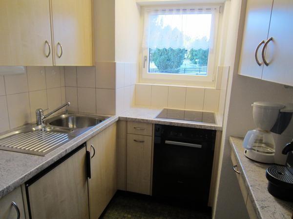 Die separate Küche bietet einen Glaskeramikherd, einen Backofen, einen Wasserkocher, eine Nespresso- und eine Filterkaffe-Maschine,