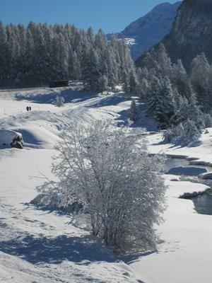 Entdecken Sie unsere geräumige und persönlich eingerichtete 2,5-Zimmerwohnung, gelegen in bester Südlage, die ideale Unterkunft für 2-3 Personen. Genießen Sie im Hochparterre eines charmanten 5-Familienhauses mit exklusivem Arvenausbau und atemberaubender Sicht auf die Berge. Dank der bevorzugten Lage wird der Balkon lang und reichlich von der Sonne verwöhnt, was Ihren Aufenthalt unvergesslich macht.