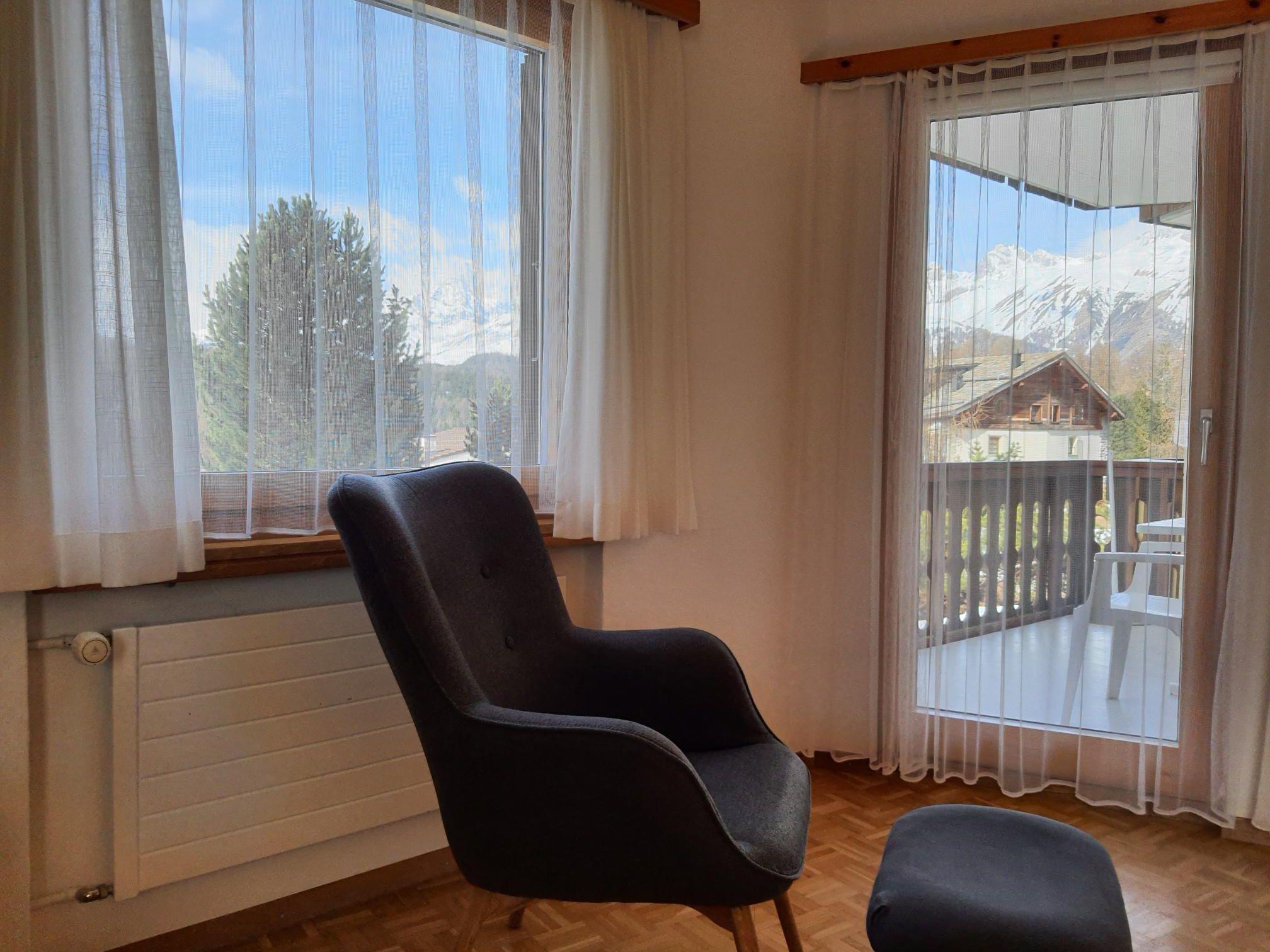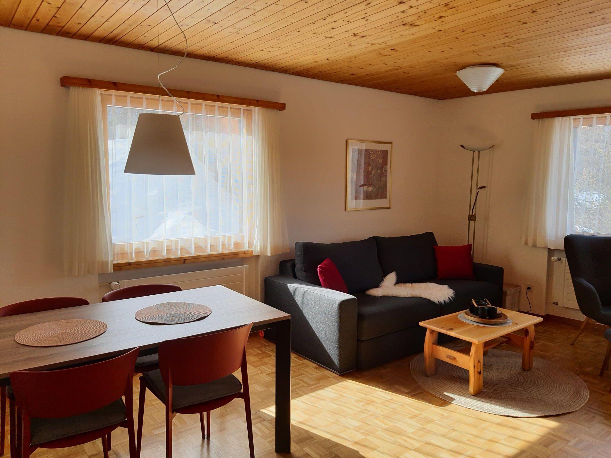 Schöne, helle 3 1/2-Zimmerwohnung (65m2 für 4 Personen) im Hochparterre, besonders ruhige, leichte Hanglage im Ortsteil Muragls.