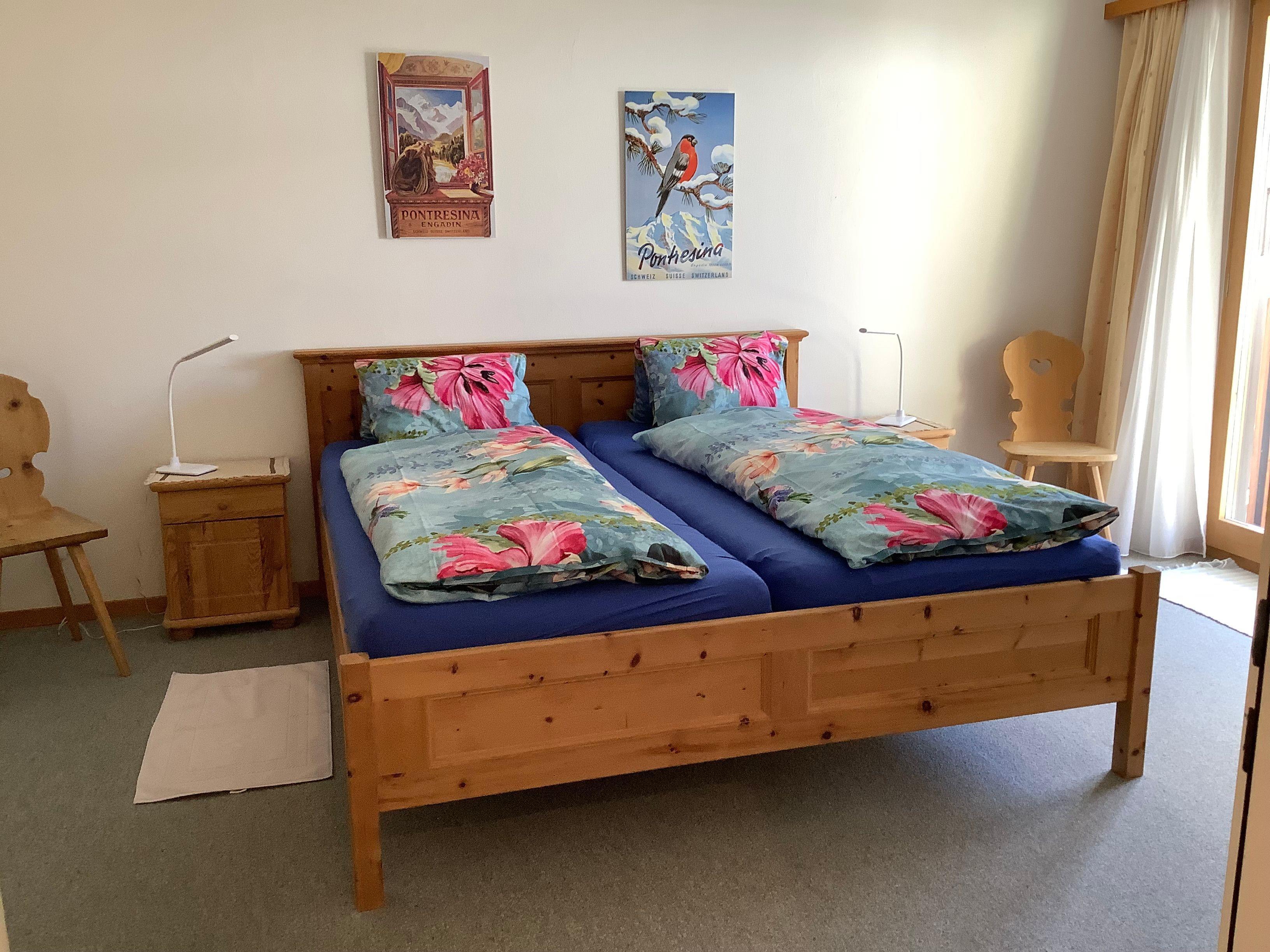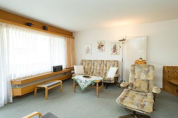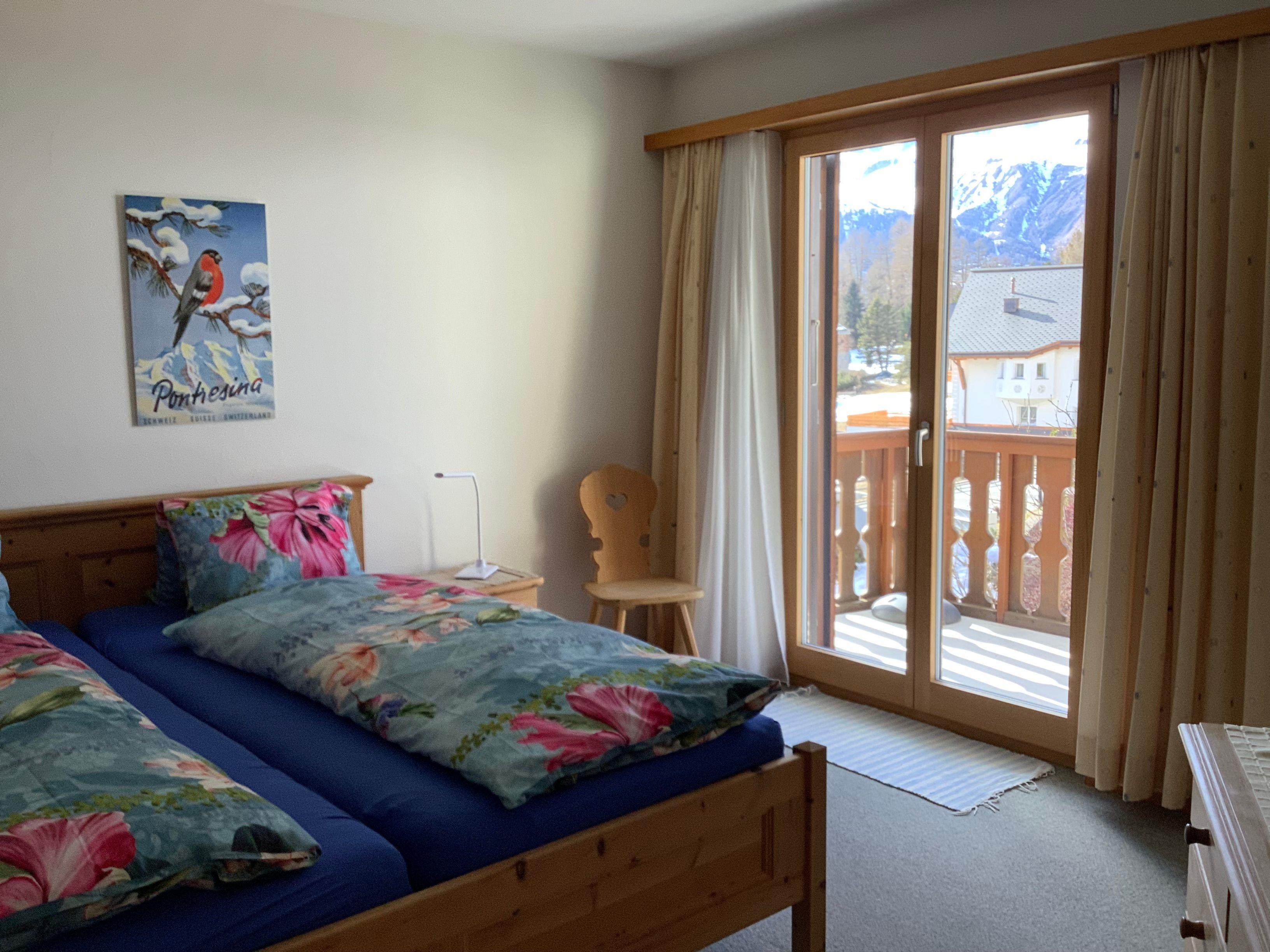 Sehr schöne, geräumige, mit viel Arvenholz gemütlich eingerichtete 2 1/2 Zimmerwohnung (65m2) im 1.Stock. Ruhig gelegen. Das Wohnzimmer bietet mit einer gemütlichen Couch, 2 Fernsehsesseln, Swisscom TV und WLAN, Raum zum Entspannen. Ein Balkon mit Aussicht in die fantastische Bergwelt, vollständig möbliert mit Tisch und Stühlen, sowie Liegen und Sonnenschirm lädt zum Verweilen ein. Die offene, moderne Küche ist ausgestattet mit Glaskeramik Kochfeld, Geschirrspüler, Backofen, grossem Kühlschrank Kaffeemaschine, Kapselsystem (Nespresso), Filterkaffeemaschine, Wasserkocher, Microwelle, Fonduegeschirr und Raceletteofen. Ein runder Esstisch mit Eckbank lädt zum gemütlichen Zusammensitzen ein. Das Schlafzimmer mit Doppelbett (2 x 90 x 200), Einbauschrank und direktem Zugang zum Balkon, bietet grosszügigen Raum für entspannte Nachtruhe. Ein 3. Bett findet sich in einer etwas abgetrennten Nische im Vorraum. Das Badezimmer bietet mit Dusche, abgetrenntem WC und einem Doppelwaschtisch grossen Komfort auf kleinem Raum. Gemeinsame Velo-und Skiräume sowie eine Waschmaschine finden sich im Keller im Haus. Ein Aussenparkplatz steht zur Verfügung. Die Nähe zur Bushaltestelle bietet den idealen Ausgangspunkt für Ihre Unternehmungen. Wandern, Biken, Skifahren, Langlaufen beginnt direkt vor der Haustüre. Im Winter erreichen Sie die Loipen bequem zu Fuss.