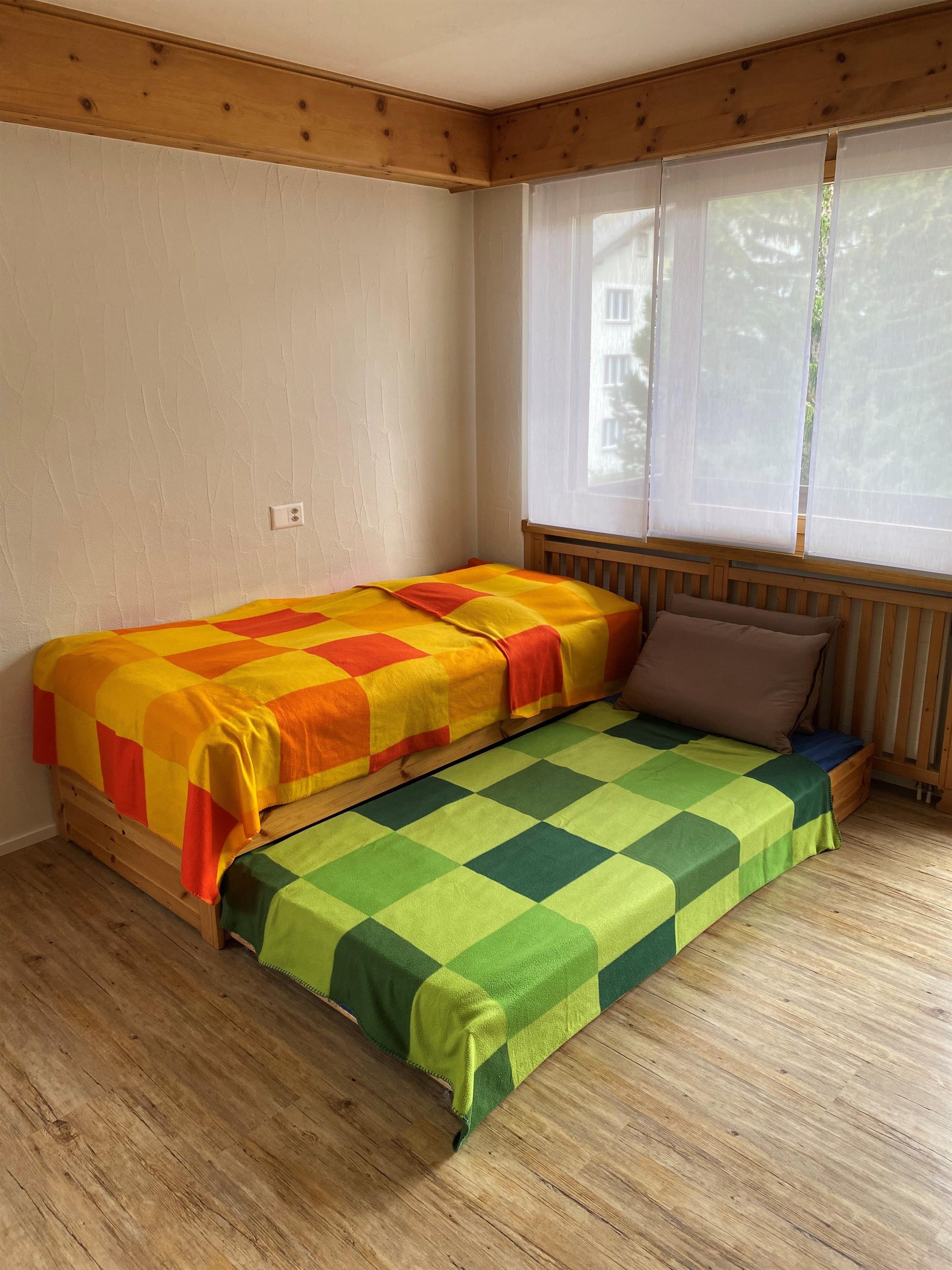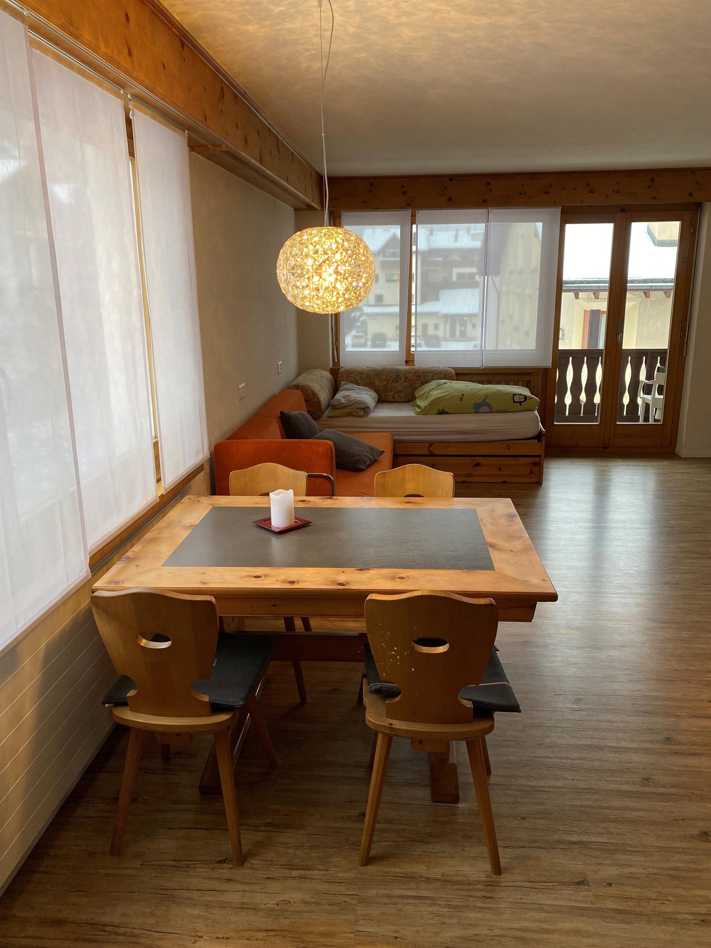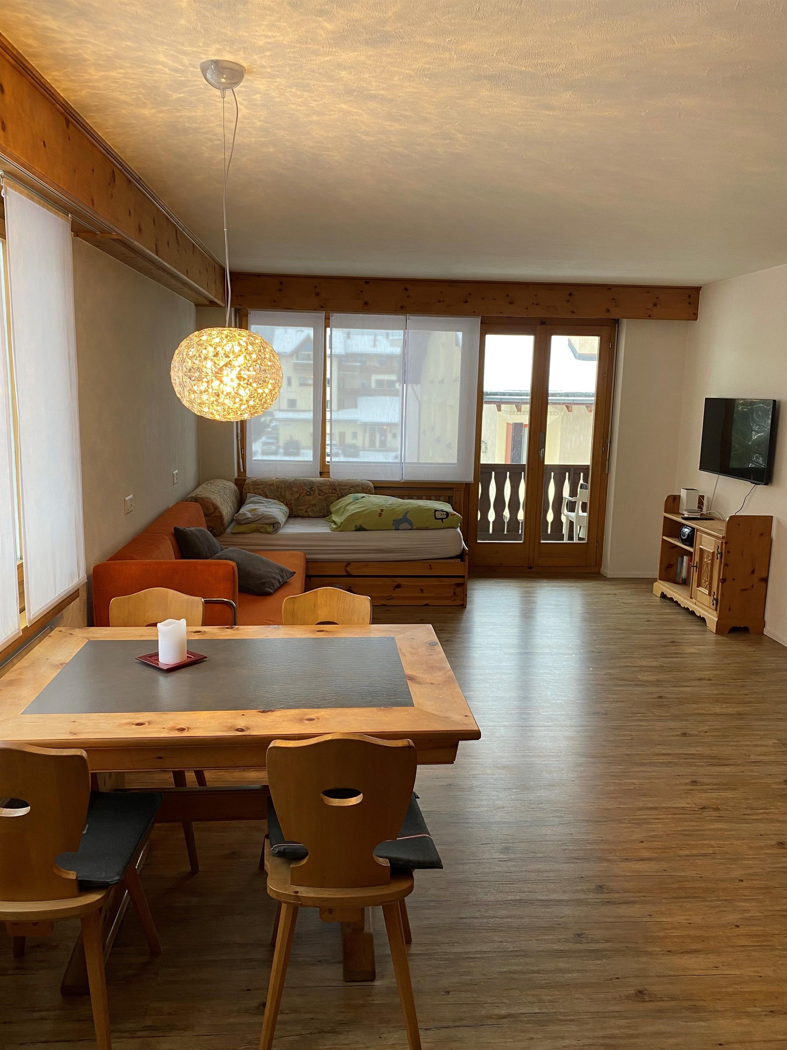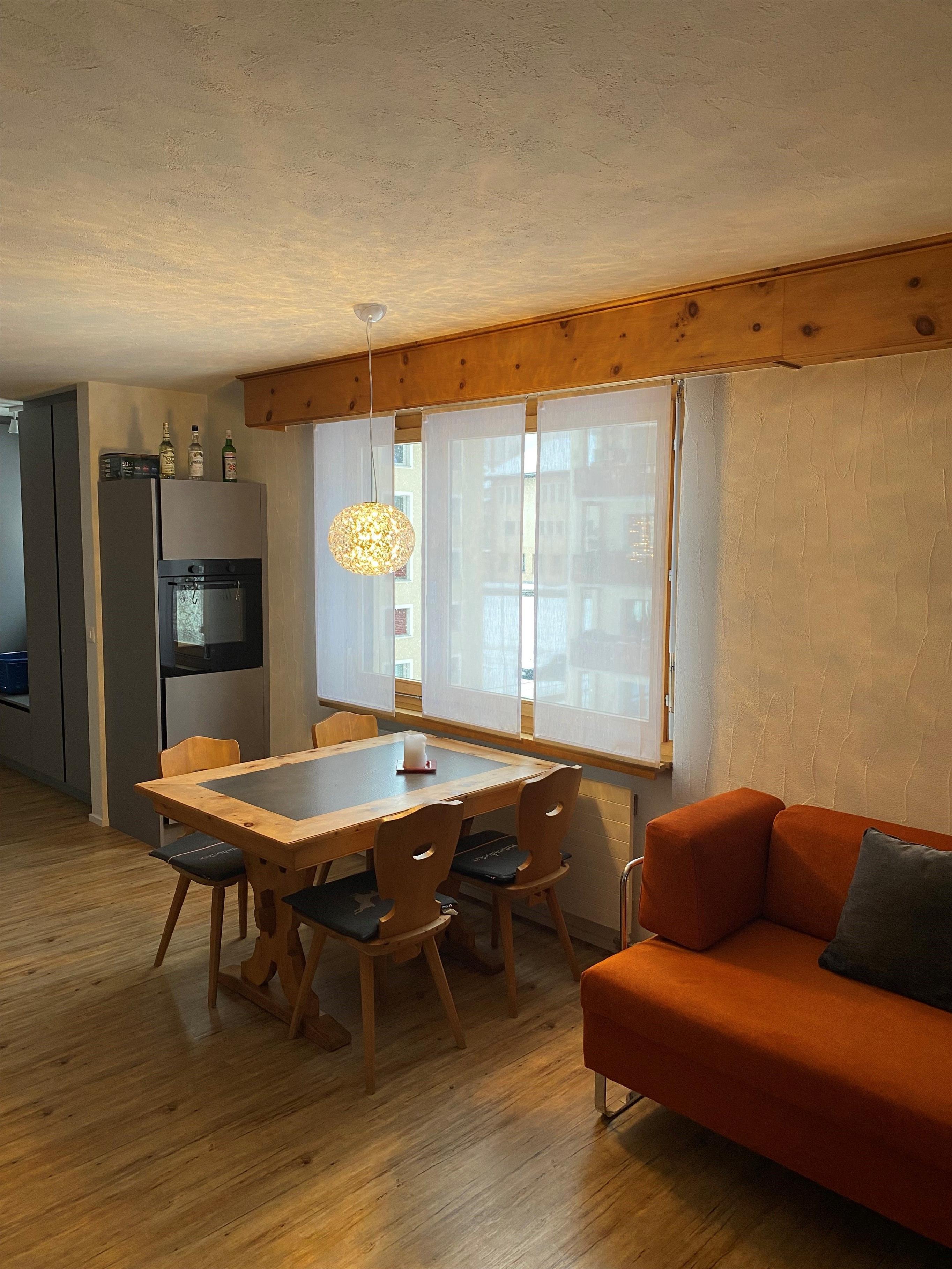 Die Innenausstattung unseres Apartments lässt keine Wünsche offen. Die Küche ist ausgestattet mit einem Herd, Kühlschrank inklusive kleinem Gefrierfach, Backofen, Wasserkocher und einer Kaffeemaschine samt Kapseln, ideal für gemütliche Frühstücksmomente. Für gesellige Abende stehen ein Racletteofen und ein Fondue-Set bereit. Das Wohnzimmer verfügt über ein Bettsofa, welches zwei zusätzliche Schlafgelegenheiten bietet, einen Fernseher, WLAN sowie eine Holzkommode für genügend Stauraum. Das Schlafzimmer ist mit einem herrlichen Doppelbett aus Arvenholz, Nachttischen mit Lampen und einem geräumigen Kleiderschrank ausgestattet. Im Badezimmer finden Sie eine Badewanne mit Duschfunktion, einen Haartrockner sowie beheizbare Handtuchhalter für warme, trockene Handtücher.