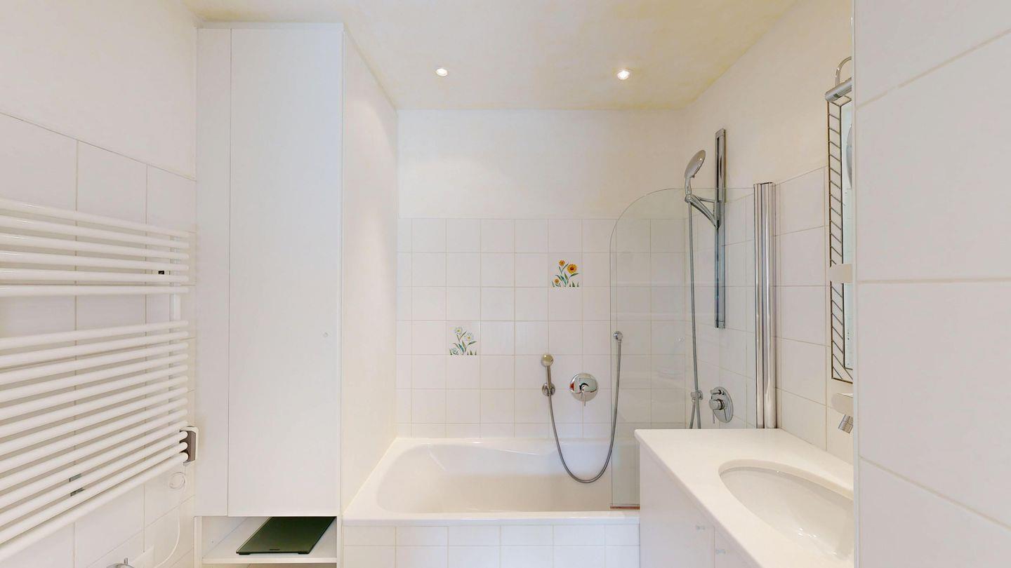 Die ruhig gelegene und hochklassig eingerichtete Ferienwohnung verfügt über ein Schlafzimmer mit Doppelbett sowie ein Schlafzimmer mit zwei Einzelbetten. Beide Schlafzimmer haben jeweils ein en-suite Badezimmer. Sie finden ein Wohnzimmer mit Sofa, Sessel und Fernseher und Zugang zu zwei Balkonen. Die offene Küche ist modern und komplett eingerichtet mit einem Esstisch direkt nebenan. Eine Waschmaschine und ein Trockner zur gemeinschaftlichen Nutzung sowie ein Ski- und Veloraum gehören ebenfalls zur Wohnung. Ein Garagenplatz kann kostenpflichtig dazu gebucht werden.