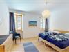 Die Wohnung verfügt über zwei Nasszellen, eine mit Badewanne und eine mit Dusche. Die drei Schlafzimmer sind liebevoll eingerichtet, zwei davon mit jeweils einem Doppelbett, ausgestattet mit einzelnen Matratzen, und das dritte mit einem Einzelbett.