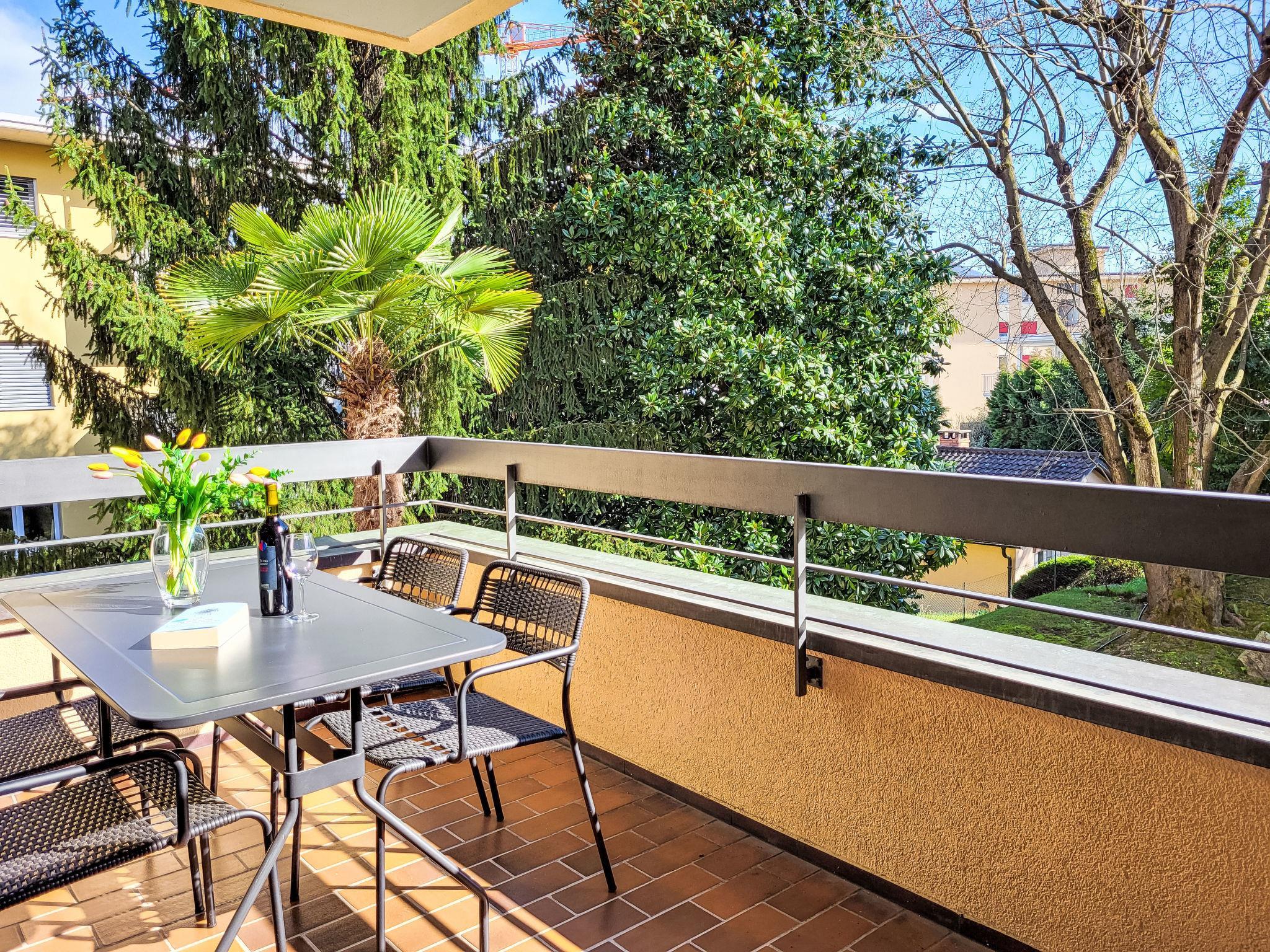 "Apt. Oasis", 2-Zimmer-Wohnung 75 m2 im 2. Stock, Südwestlage. Objekt geeignet für 2 Erwachsene + 2 Kinder. Geräumig und hell, schön und geschmackvoll eingerichtet: Wohn-/Esszimmer mit 1 Diwanbett (140 cm, Länge 200 cm), Esstisch, Internationale TV-Sender und Flachbildschirm. Ausgang zum Balkon. 1 Doppelzimmer mit 1 Bett (160 cm, Länge 200 cm). Ausgang Richtung Nordwesten. Küche (Backofen, Geschirrspüler, 4 Glaskeramikplatten, Toaster, Wasserkocher, elektrische Kaffeemaschine, Kapseln für die Kaffeemaschine (Delizio) extra, Racletteofen, Fondue Set (Chinoise)). Dusche/WC. Heizung. Parkettboden. Balkon 8 m2, Südlage. Balkonmöbel, Liegestühle (3). Schöne Sicht auf die Berge, den Garten und die Ortschaft. Zur Verfügung: Waschmaschine, Bügeleisen, Fliegengitter, Haartrockner. Internet (Wireless LAN). Parkplatz (überdacht). Bitte beachten: geeignet für Familien. Nichtraucher-Unterkunft. NL-00011773
