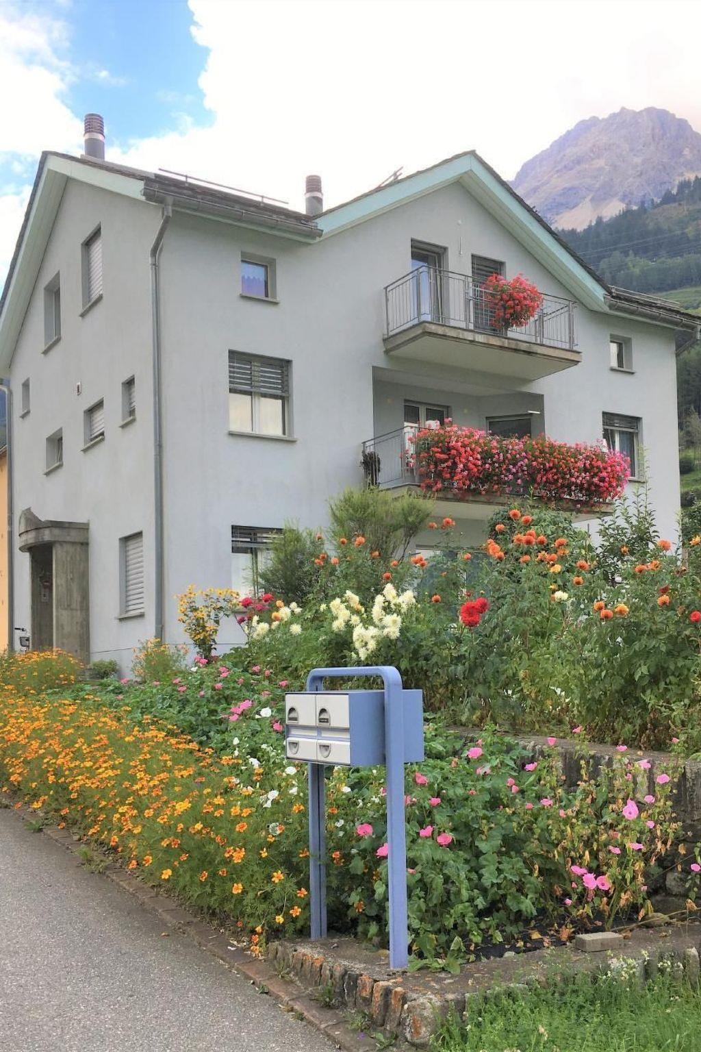 Prada ist ein sehr ruhiges und sonniges Dorf in Li Curt, in der Nähe von Poschiavo. Herrliche Aussicht auf die Berge und die umliegende Landschaft.