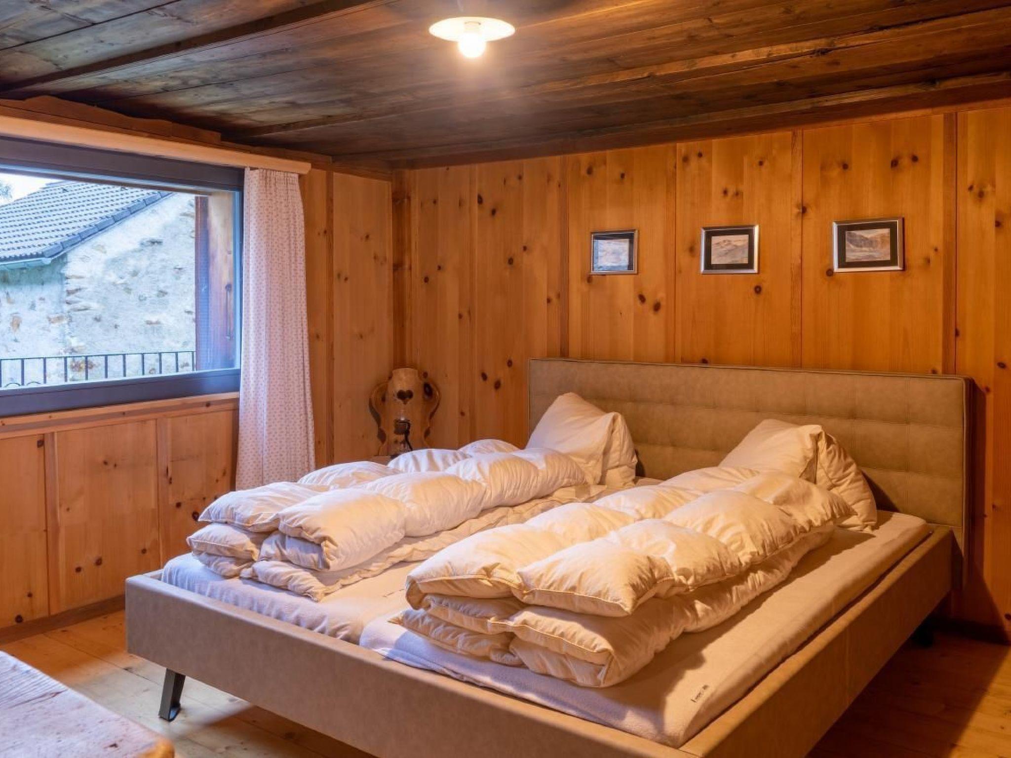 Zwei Schlafzimmer und ein Dachzimmer mit je einem Doppelbett, ein Dachzimmer mit beschränkter Höhe mit einem Doppelbett, ein grosses Wohnzimmer, ein Badzimmer (mit Dusche und Lavabo) und zwei Toiletten, eine grosse Wohnküche mit Holz und Elektro Herd, Strom, Wärmepumpenboiler. Schlafzimmereinrichtung (Schlafzimmer1): Matratzen (2x) 90 cm x 200 cm, Duvets 160 cm x 210 cm, Kopfkissen 65 cm x 100 cm. Kücheneinrichtung (Küche1): Kaffeemaschine ist vorhanden:- Bialetti Kaffeekocher, benötigt Pulverkaffee- Delizio Kaffemaschinen, benötigt Delizio Kaffeekapseln (Migros, Fust, LeShop, Denner) Kaffeekapseln und Kaffeepulver werden keine zur Verfügung gestellt Öl, Essig uns Salz sind vorhanden. Kühlschrank/Tiefkühlschrank befinden sich im Keller.