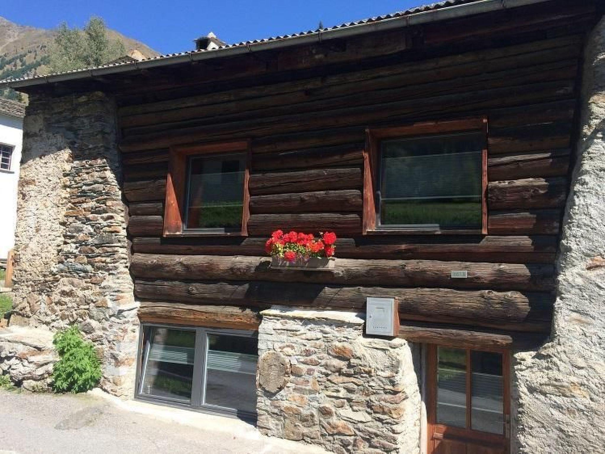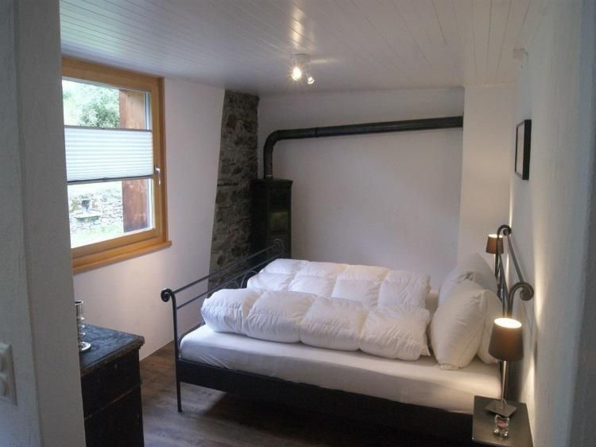 Schlafzimmer und Vorzimmer (nebeneinander und es hat keine Türe zwischen den zwei Zimmern), 1 Badzimmer mit Dusche, Corian Badewanne und WC, Küche mit Cheminée und Holz- und Elektroherd.