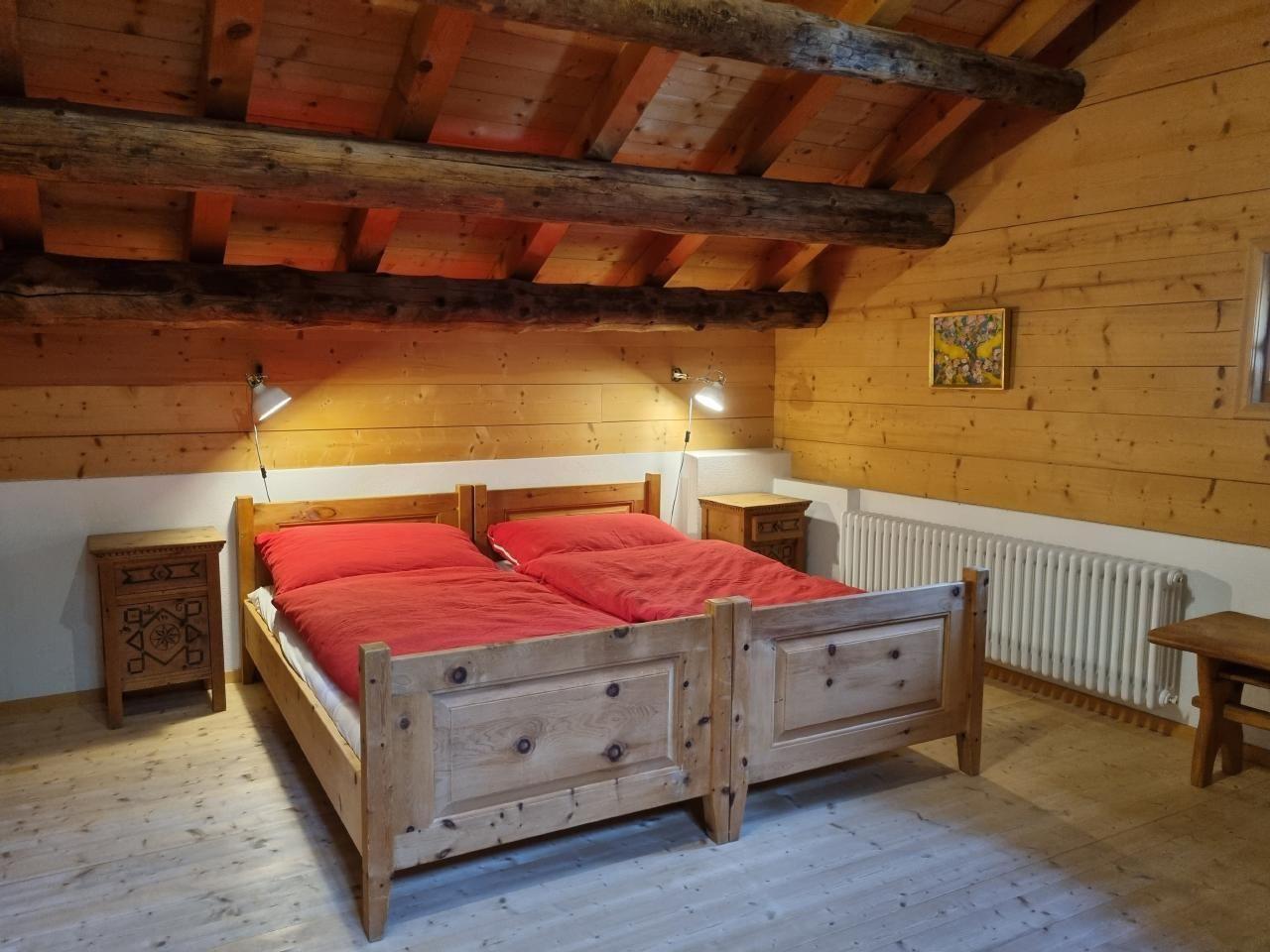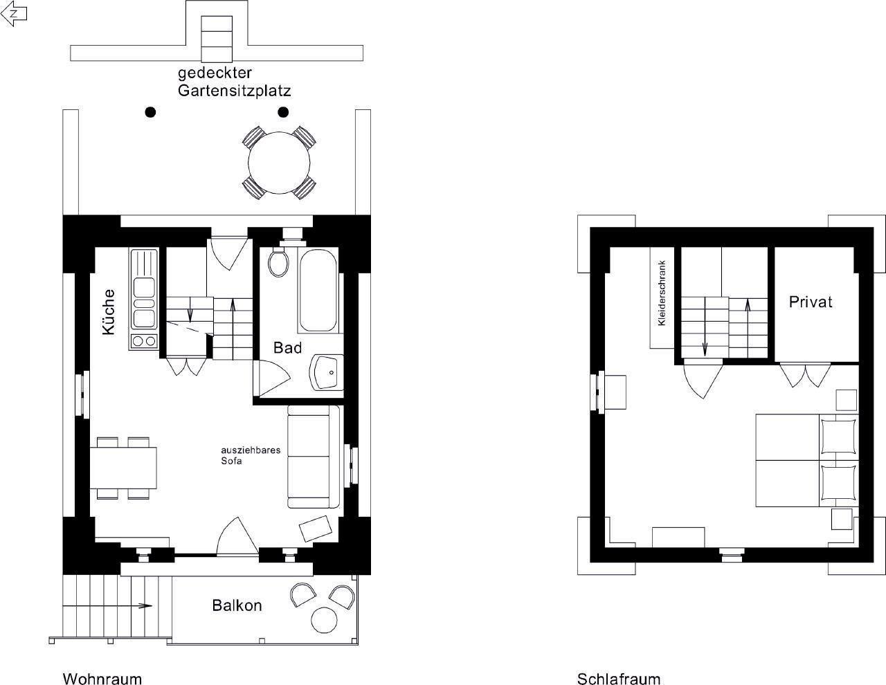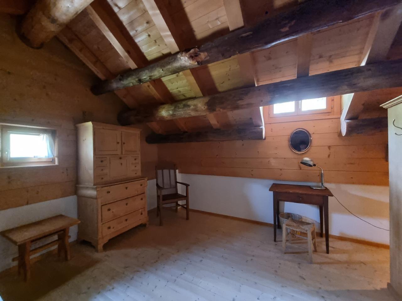 Im Inneren erwartet Sie ein gut durchdachtes Wohnkonzept, das den Charme und den Charakter der Berghütte geschickt einfängt. Ein kompaktes Schlafzimmer bietet ausreichend Platz für bis zu zwei Personen, mit der Möglichkeit, ein zusätzliches Bett oder Kinderbett je nach Bedarf zu integrieren. Das Badezimmer ist mit einer praktischen Badewanne mit Duschvorrichtung ausgestattet. Für zusätzlichen Komfort sorgen eine Waschmaschine zur gemeinschaftlichen Nutzung im Gebäude und ein Wäschetrockner zur alleinigen Nutzung im Ferienhaus.