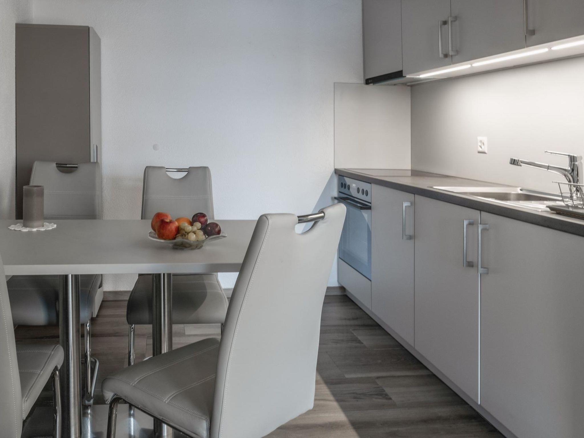Die renovierte Ferienwohnung ist ideal für 2 bis 4 Personen und besteht aus einem Schlafzimmer mit Doppelbett (zwei getrennte Matratzen, 180x200 cm) sowie einem Wohnraum mit Schlafsofa. Die Küche ist vollständig ausgestattet und das Badezimmer verfügt über Dusche und WC.