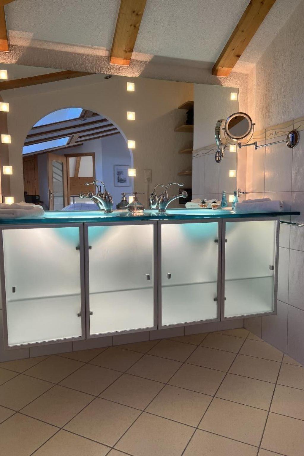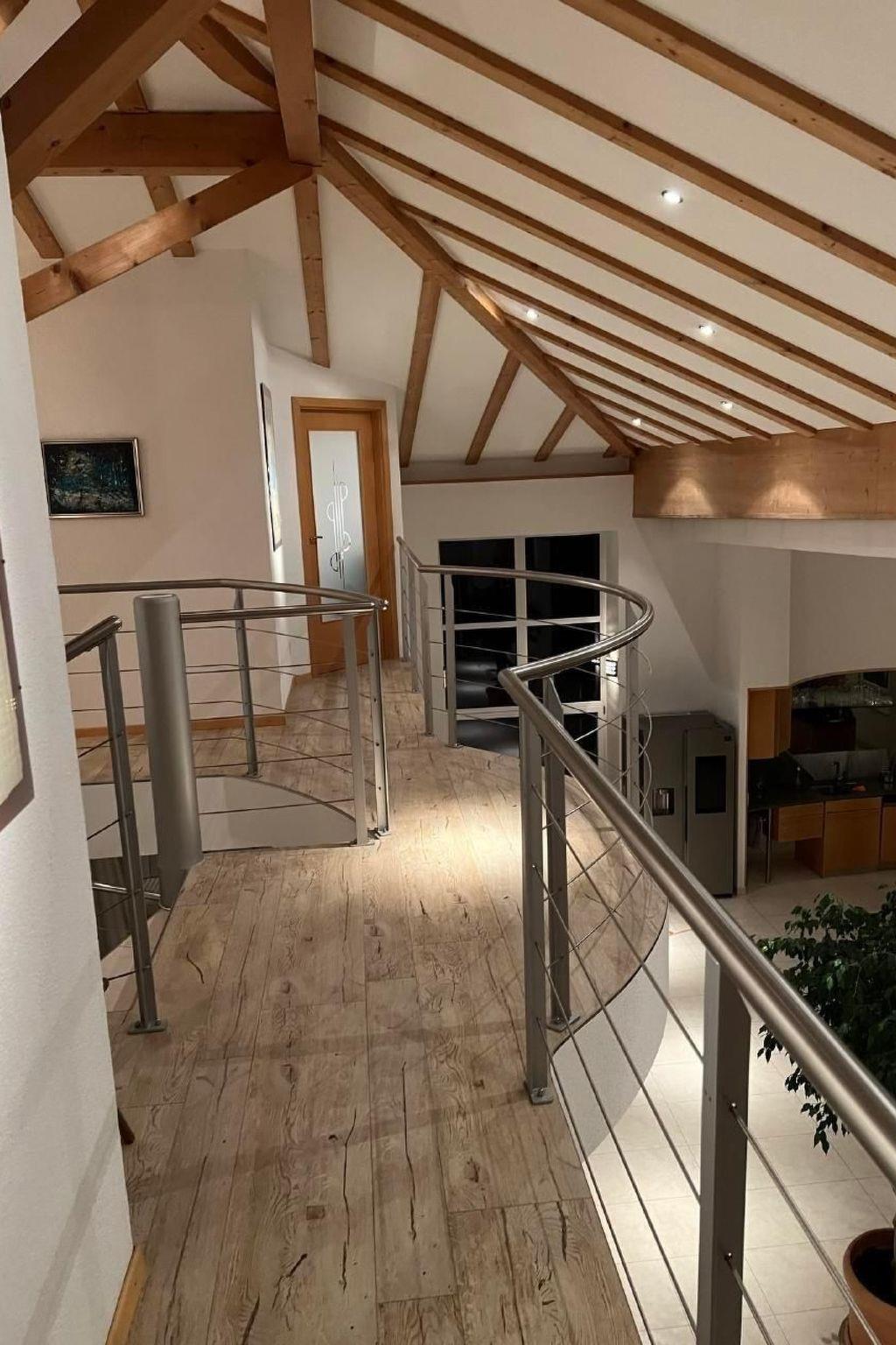 Diese wunderschöne Loft Wohnung ist 280m2 gross. Sie liegt 13 Autominuten vom ZH-Airport entfernt und 20 Minuten von der Zürcher Stadtgrenze. Diese Loft bietet alles was das Herz begehrt. 8 Parkplätze, einen Lift direkt in die Wohnung im 1.OG. Auf dieser Ebene 200m2 befindet sich ein Entrée, eine grosse Küche, ein Billiard & Esstisch, ein Balkon, eine grosse offene Feuerstelle in der Wohnung, ein Flügelpiano, ein Waschraum sowie ein WC/Urinal und ein Lavabo. Im 2. OG haben wir 2 Zimmer und eine Wellness Oase. Dieser Stock ist 80m2 gross mit feinsten Betten und in jedem Zimmer ein Intergriertes Bad mit DU/WC Lavabo. Die Loft ATRIUM-X- ist komplett ausgestattet. Ebenso gibt's 3 x TV eine Top Anlage, WIFI etc. Im 3.OG der nur über den Lift erreichbar ist, ist ein Wintergarten in dem man Grillieren kann. Sehr gemütlich im Winter. Ebenso befindet sich oben eine Dachterrasse 90m2 gross mit einem sensationellen Ausblick ins grüne. Für Party's einfach ideal und einladend.