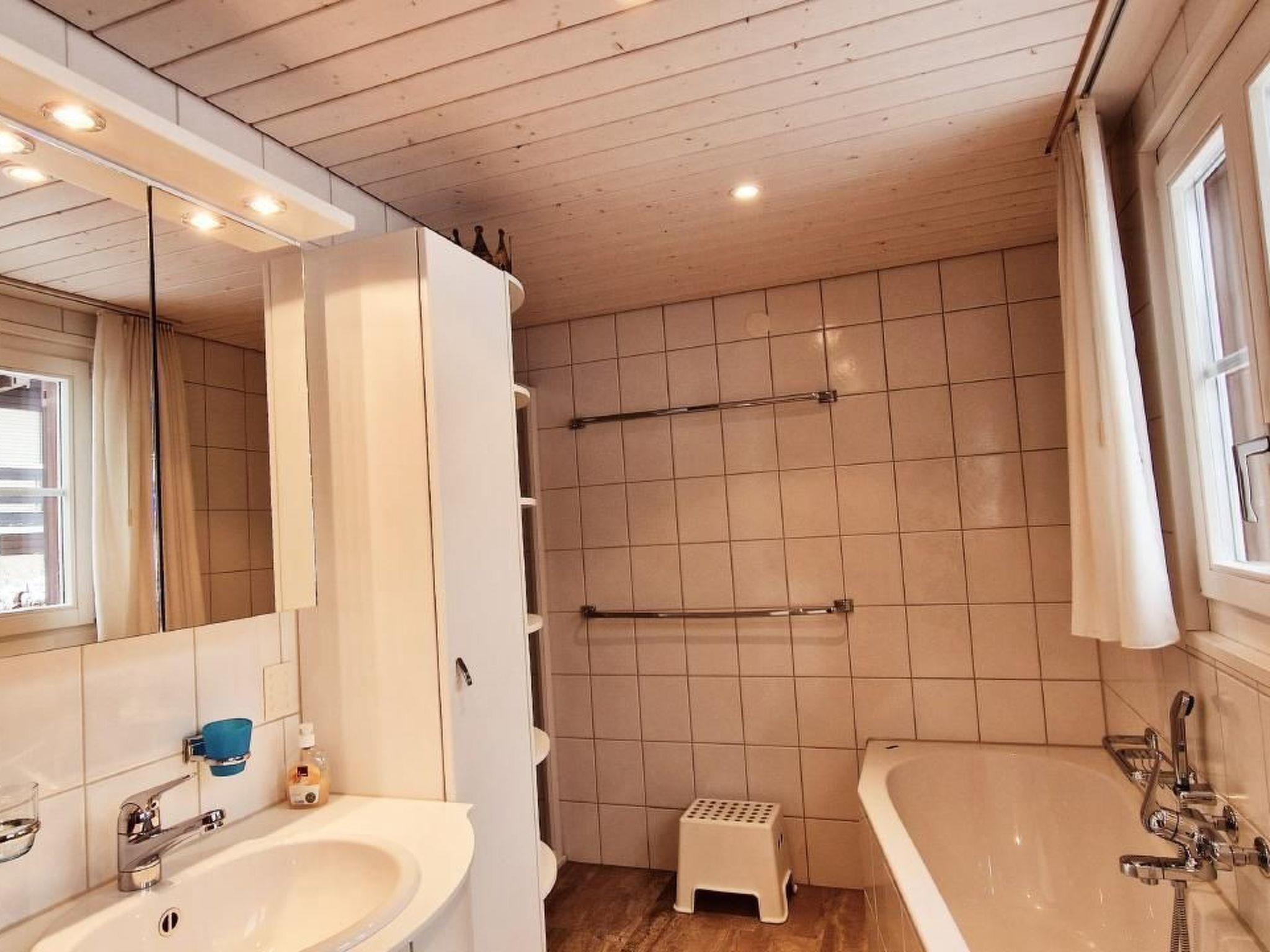 Innen bietet das Chalet auf zwei Etagen allen Komfort und die Annehmlichkeiten, die man sich für einen sorglosen Aufenthalt wünscht. Das Erdgeschoss umfasst eine helle, voll ausgestattete Küche, ein geräumiges Wohn- und Esszimmer mit Cheminée und Panoramafenstern, ein urgemütliches Arvenstübli, ein Bad mit WC und zusätzlicher Duschkabine, sowie einen Halbkeller mit Staumöglichkeiten. Im Obergeschoss erwarten Sie drei Schlafzimmer, die mit Doppelbetten bzw. Einzelbetten sowie mit genügend Stauraum für Kleidung ausgestattet sind. Zusätzlich stehen ein weiteres WC mit Lavabo und ein Abstellraum mit Waschmaschine und Trockner bereit.