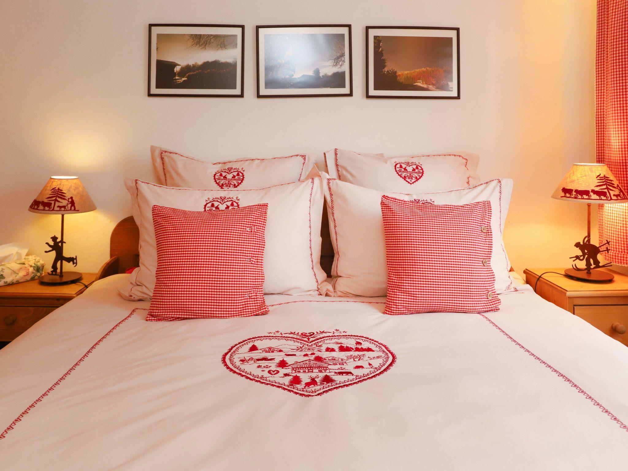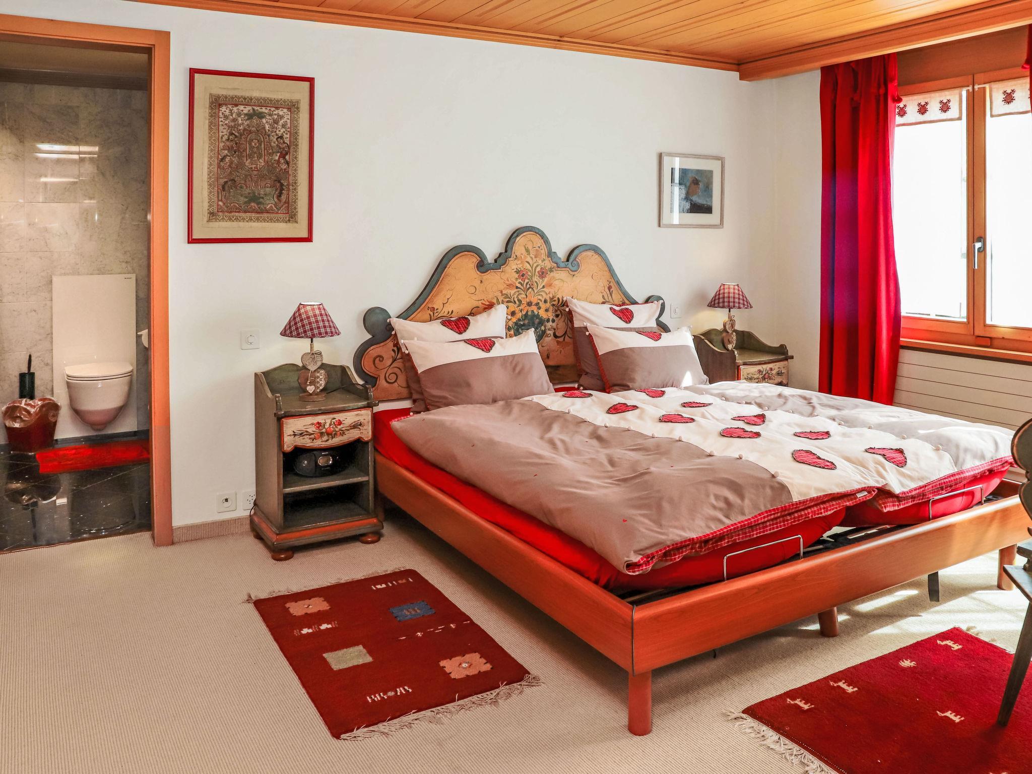 "Marie-Soleil Sud", 5-Zimmer-Wohnung 145 m2, im Erdgeschoss. Geräumig, sehr komfortabel und geschmackvoll eingerichtet: offenes grosses Wohn-/Esszimmer 50 m2 mit offenem Kamin, Esstisch, Digital-TV, Flachbildschirm und elektrischem Rollladen. Ausgang zur Terrasse. 1 Zimmer mit 1 Doppelbett (2 x 90 cm, Länge 200 cm), Bad/Dusche/WC und Doppelwaschbecken. Ausgang zur Terrasse. 2 Doppelzimmer, jedes Zimmer mit 2 Betten (90 cm, Länge 200 cm). 1 Zimmer mit 1 Doppelbett (160 cm, Länge 200 cm). Offene Küche (Backofen, Geschirrspüler, 4 Glaskeramikplatten, Toaster, Wasserkocher, Mikrowelle, elektrische Kaffeemaschine, Kapseln für die Kaffeemaschine (Nespresso) extra, Racletteofen, Fondue Set (Käse)) mit Bar. Bad/WC, Dusche/WC. Grosse Terrasse, Südlage und Westlage. Terrassenmöbel. Eingeschränkte Sicht auf die Berge. Zur Verfügung: Waschmaschine, Wäschetrockner. Internet (Wireless LAN, gratis). Parkplatz (überdacht, 2 Autos). Bitte beachten: Nichtraucher-Unterkunft.