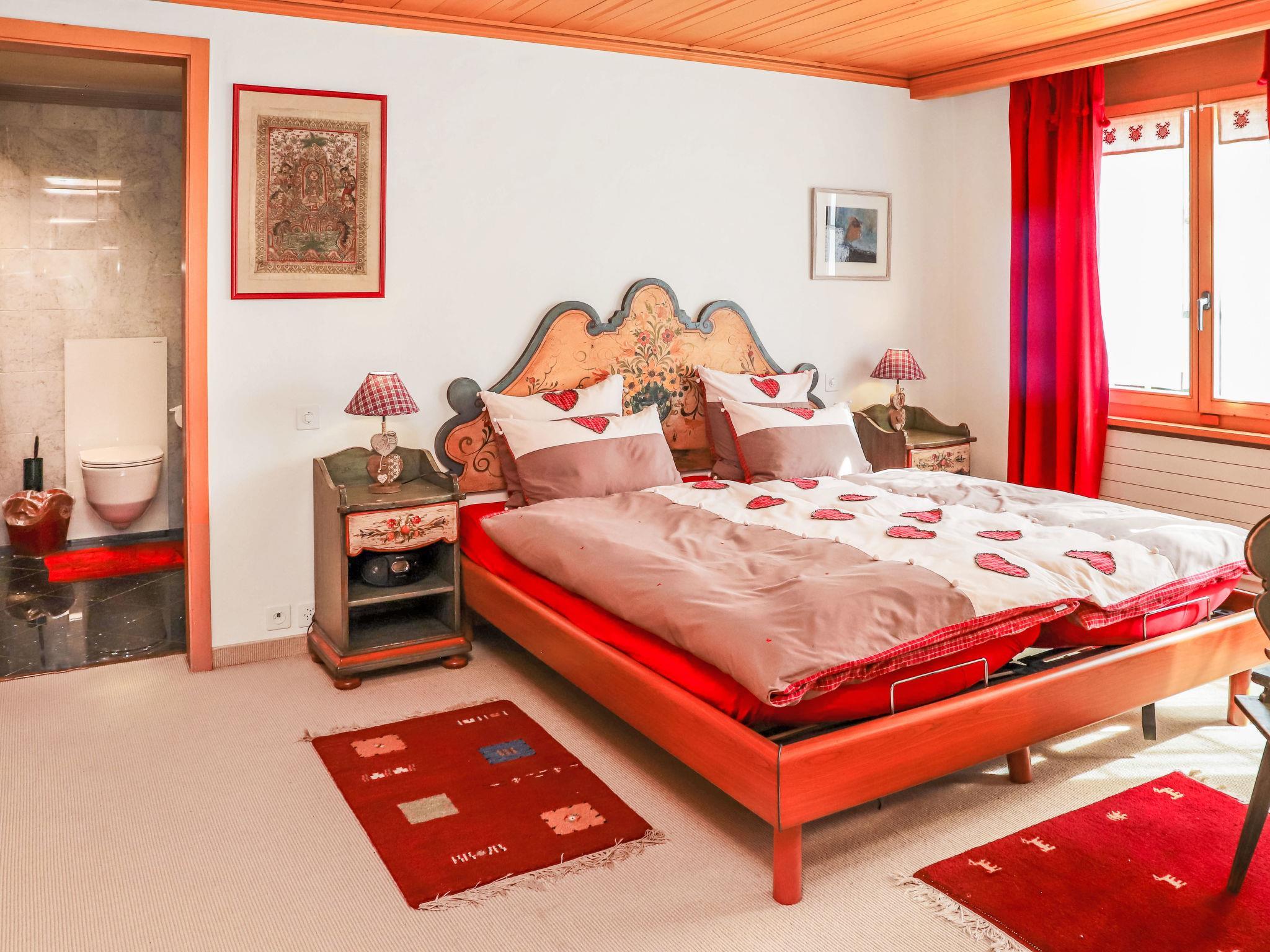 "Marie-Soleil", 7-Zimmer-Wohnung 190 m2, im Erdgeschoss. Geräumig, sehr komfortabel und geschmackvoll eingerichtet: offenes grosses Wohn-/Esszimmer 50 m2 mit offenem Kamin, Esstisch, Digital-TV, Flachbildschirm und elektrischem Rollladen. Ausgang zur Terrasse. 1 Zimmer mit 1 Doppelbett (2 x 90 cm, Länge 200 cm), Bad/Dusche/WC und Doppelwaschbecken. Ausgang zur Terrasse. 2 Doppelzimmer, jedes Zimmer mit 2 Betten (90 cm, Länge 200 cm). 1 Zimmer mit 1 Doppelbett (160 cm, Länge 200 cm). 1 Kinderzimmer mit 2 x 2 Etagenbetten (90 cm, Länge 200 cm). Kleines Wohnzimmer mit Kabel-TV (Flachbildschirm), Stereoanlage. Ausgang zum Balkon. Offene Küche (Backofen, Geschirrspüler, 4 Glaskeramikplatten, Toaster, Wasserkocher, Mikrowelle, elektrische Kaffeemaschine, Kapseln für die Kaffeemaschine (Nespresso) extra, Racletteofen, Fondue Set (Käse)) mit Bar. Bad/WC, 2 Duschen/WC. Teppichboden. Kleiner Balkon, Ostlage, grosse Terrasse, Südlage und Westlage. Terrassenmöbel, Balkonmöbel. Eingeschränkte Sicht auf die Berge. Zur Verfügung: Waschmaschine, Wäschetrockner, Bügeleisen, Haartrockner. Internet (Wireless LAN, gratis). Parkplatz (überdacht, 2 Autos). Bitte beachten: Nichtraucher-Unterkunft.