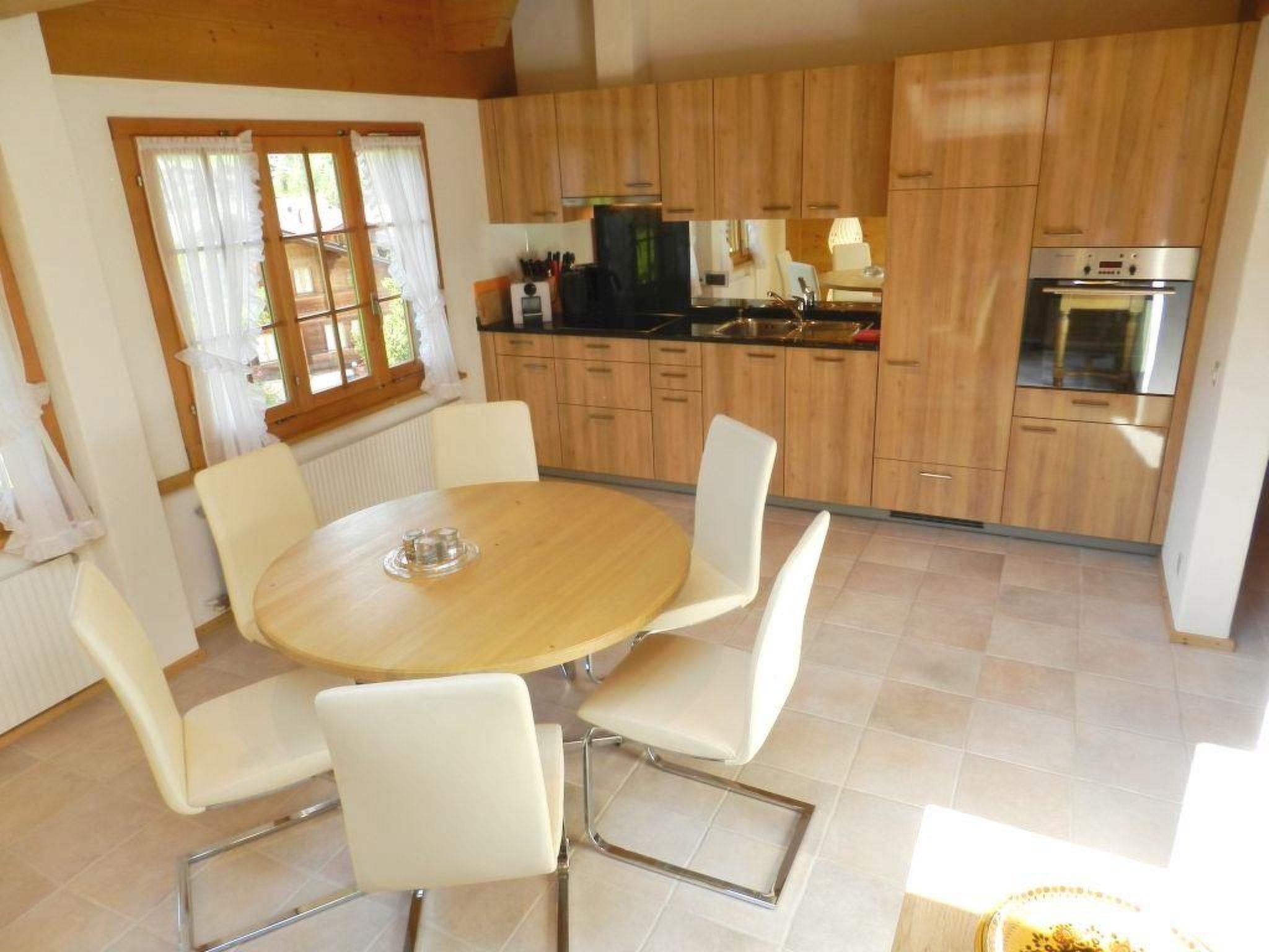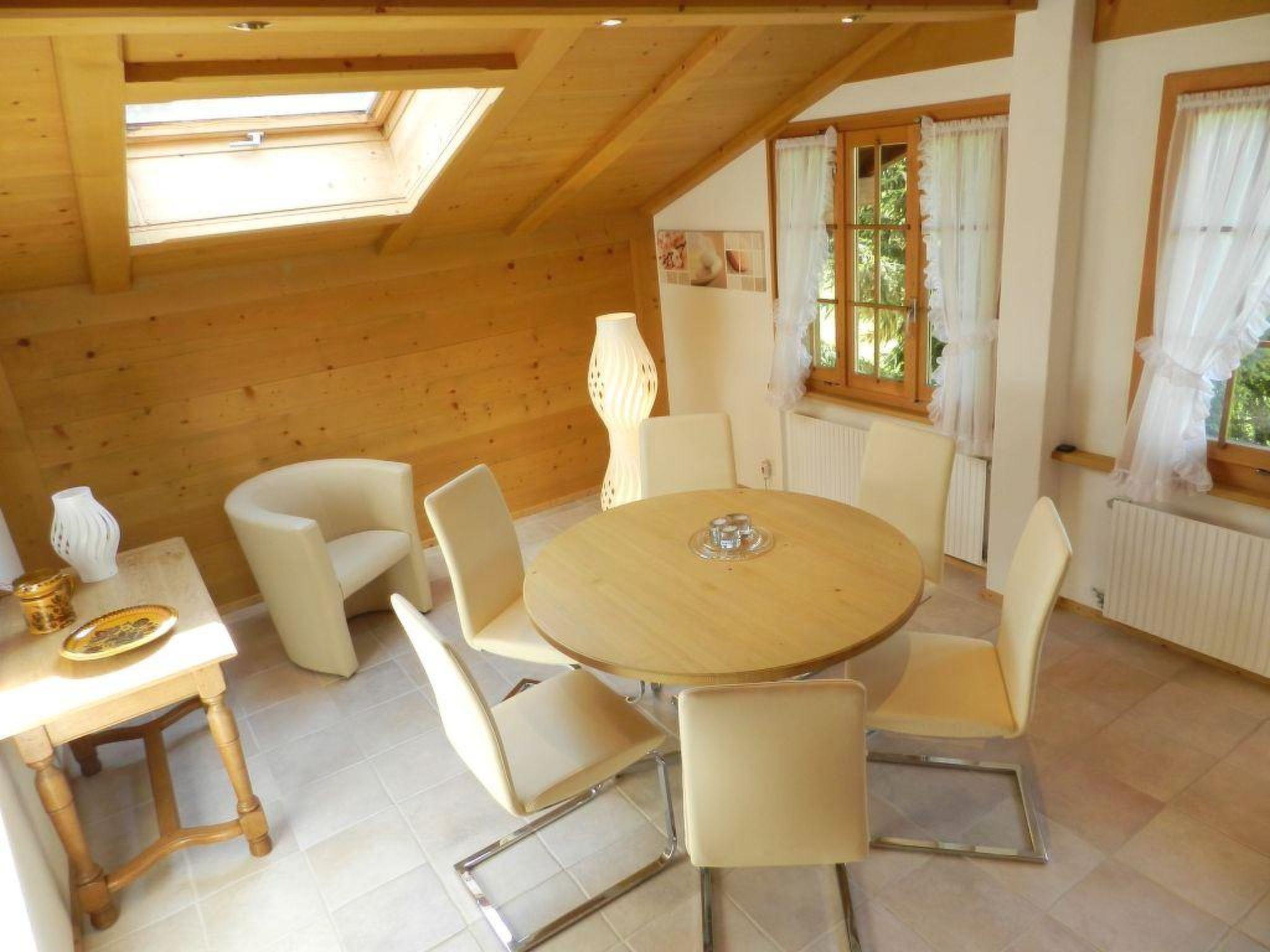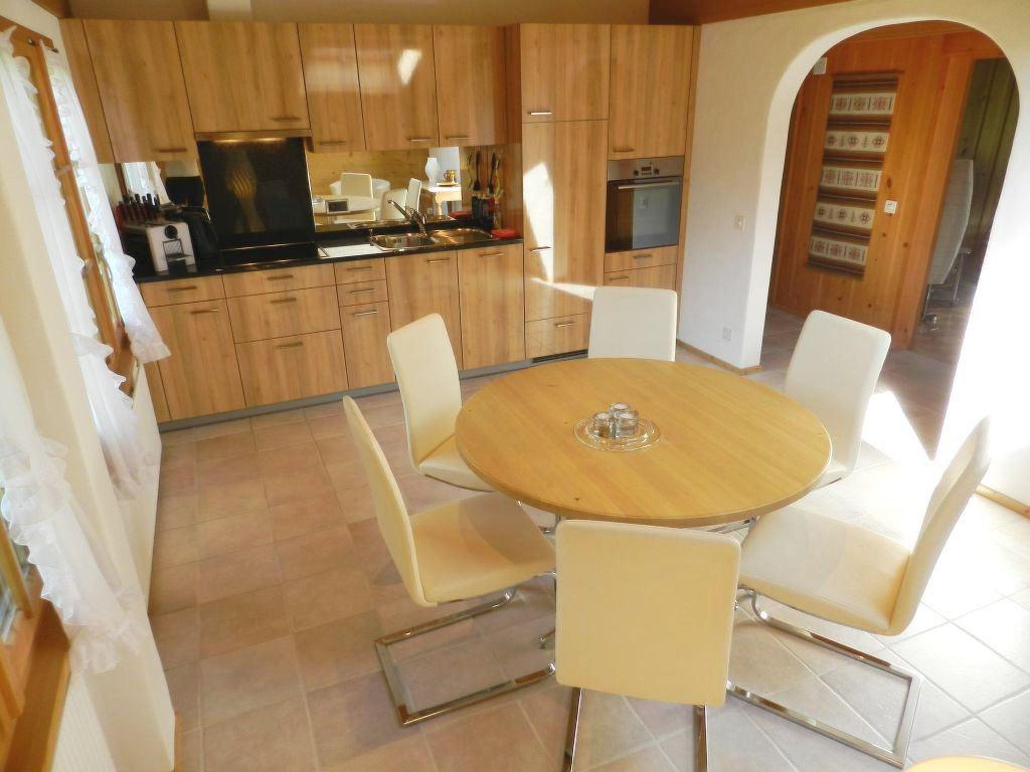 Wohnzimmer mit Sofa, 2 Sessel, Cheminée und TV. Grosses separates Esszimmer mit offener Küche. 1 Schlafzimmer mit Doppelbett (2x100x200cm) und kleinem Sofa. 1 Badezimmer mit WC, Dusche und Badewanne. Waschmaschine und Wäschetrockner. WiFi.