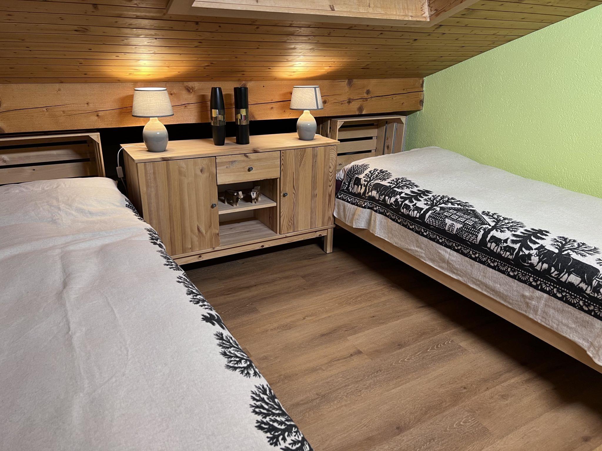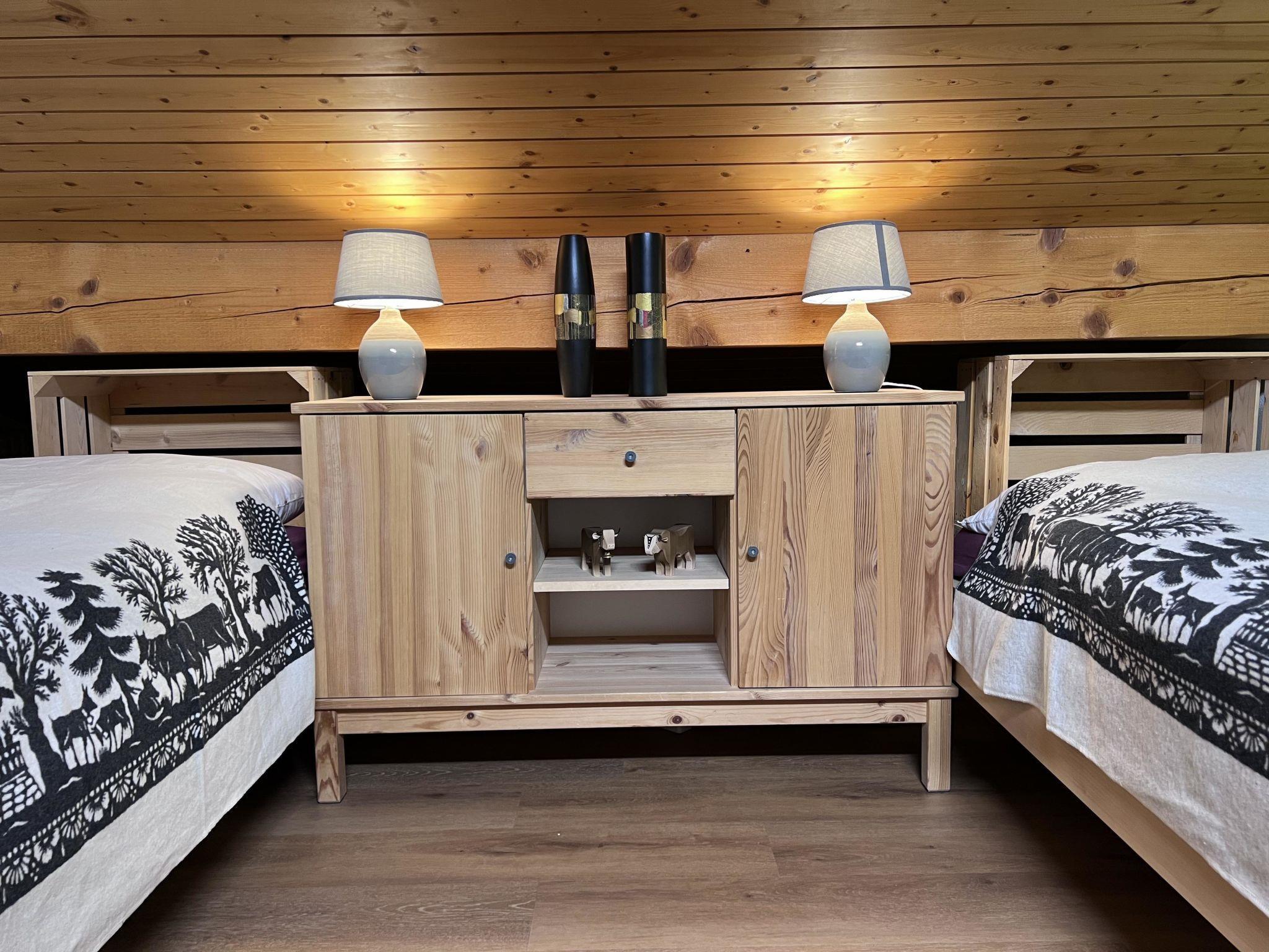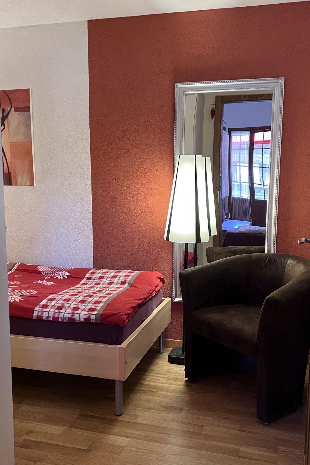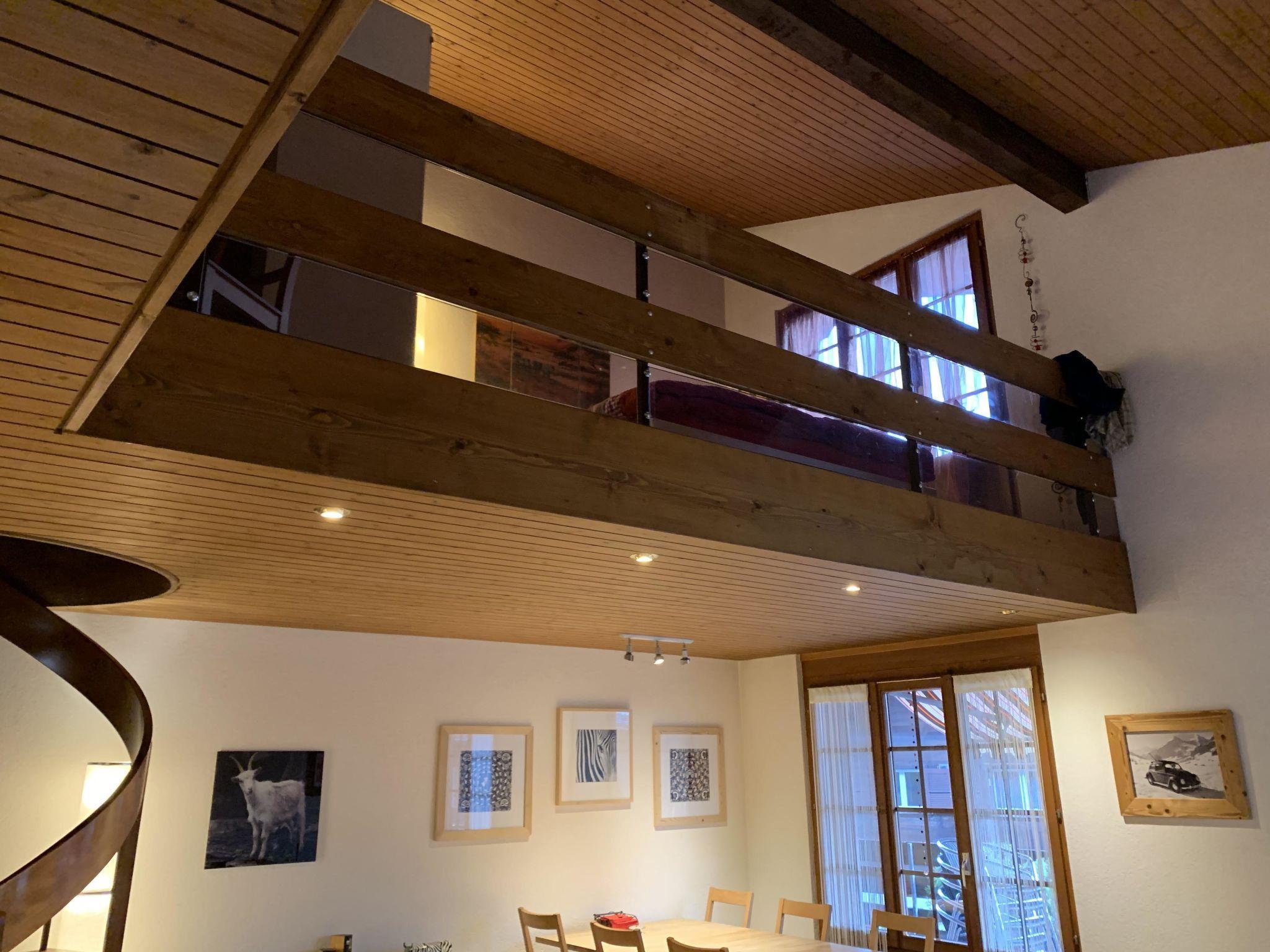 Grosses Wohn- und Esszimmer mit einem 6er-Sofa, Tisch mit 6 Stühlen. TV (Apple-TV, Teleboy-Fernseh-Programm, Youtube), DVD und Radio (DAB, Internetradio, Bluetooth, Spotify). Offene Küche mit 4 Herdplatten, Dampfabzug, Kühlschrank mit Gefrierfach, Backofen, Mikrowelle, Geschirrspüler, italienischer Kaffeekocher und Kolbenkaffeemaschine sowie Fondue-Set. Schlafzimmer mit 2 Betten (2x90x200cm). Schlafzimmer mit 1 Einzelbett (2x90x200cm). Galerie mit Doppelbett (160x200cm). Schränke in jedem Zimmer. 1 Dusche/WC und 1 separates WC. Waschmaschine. WiFi. Kinderhochstuhl vorhanden.