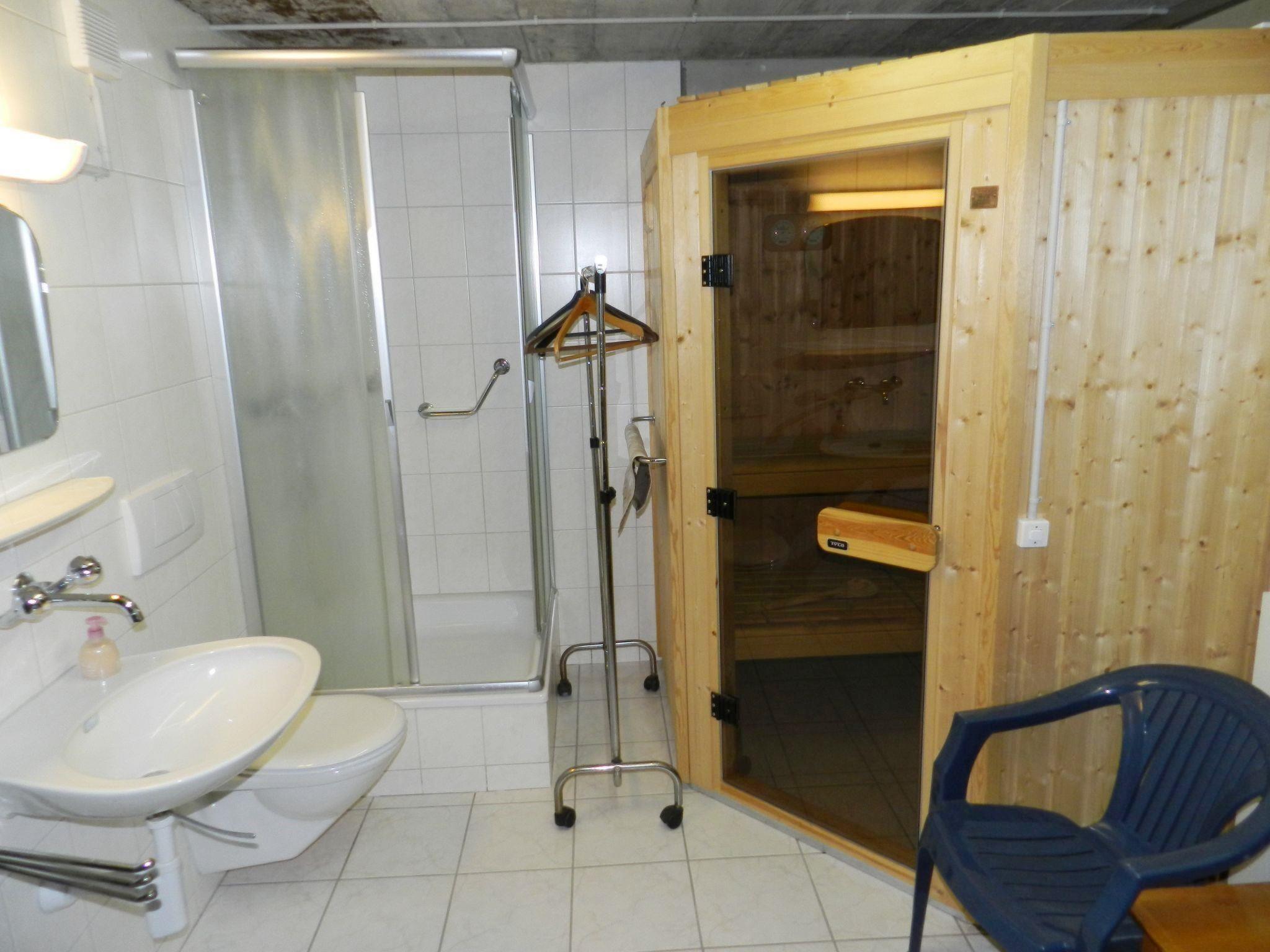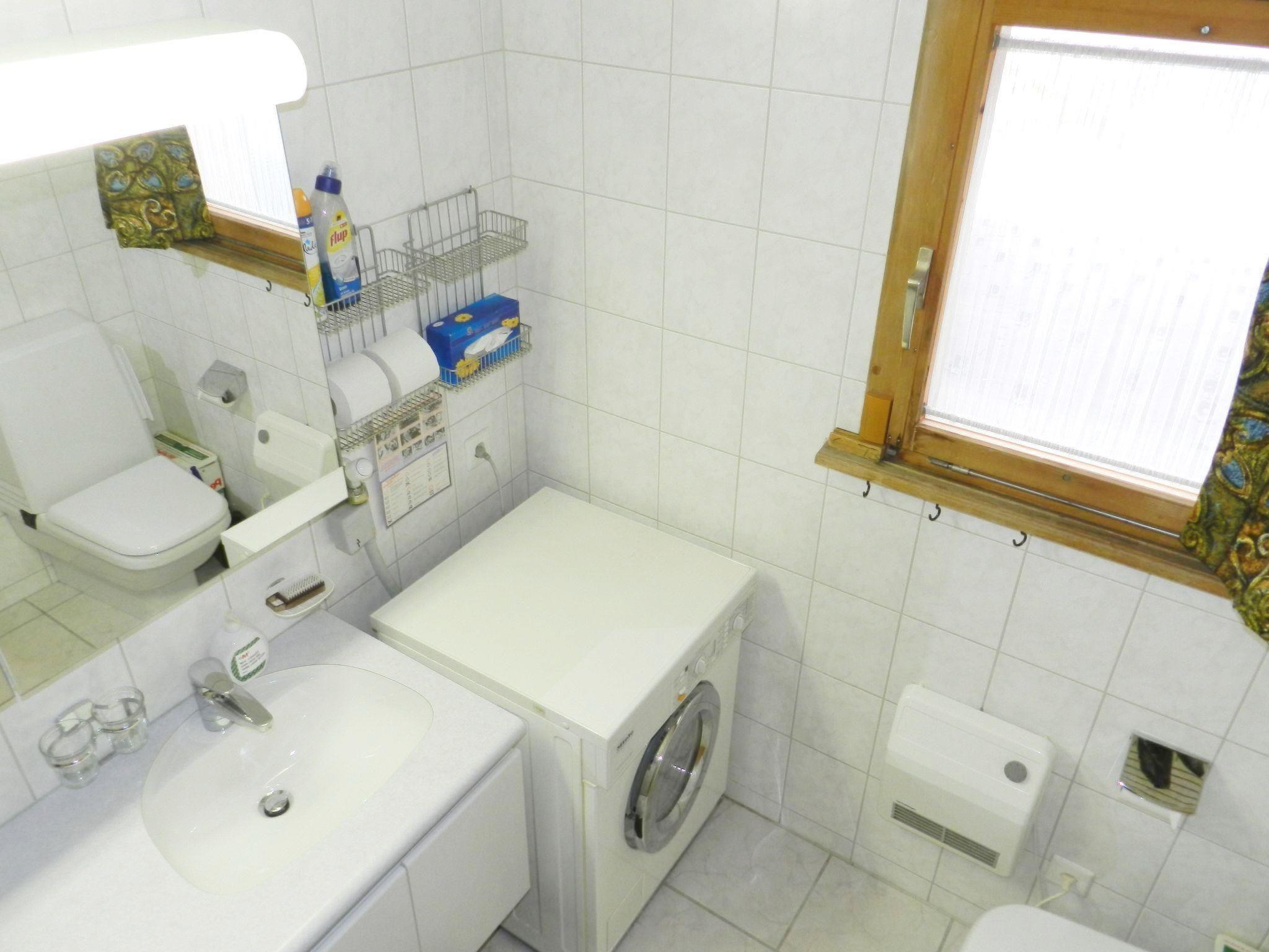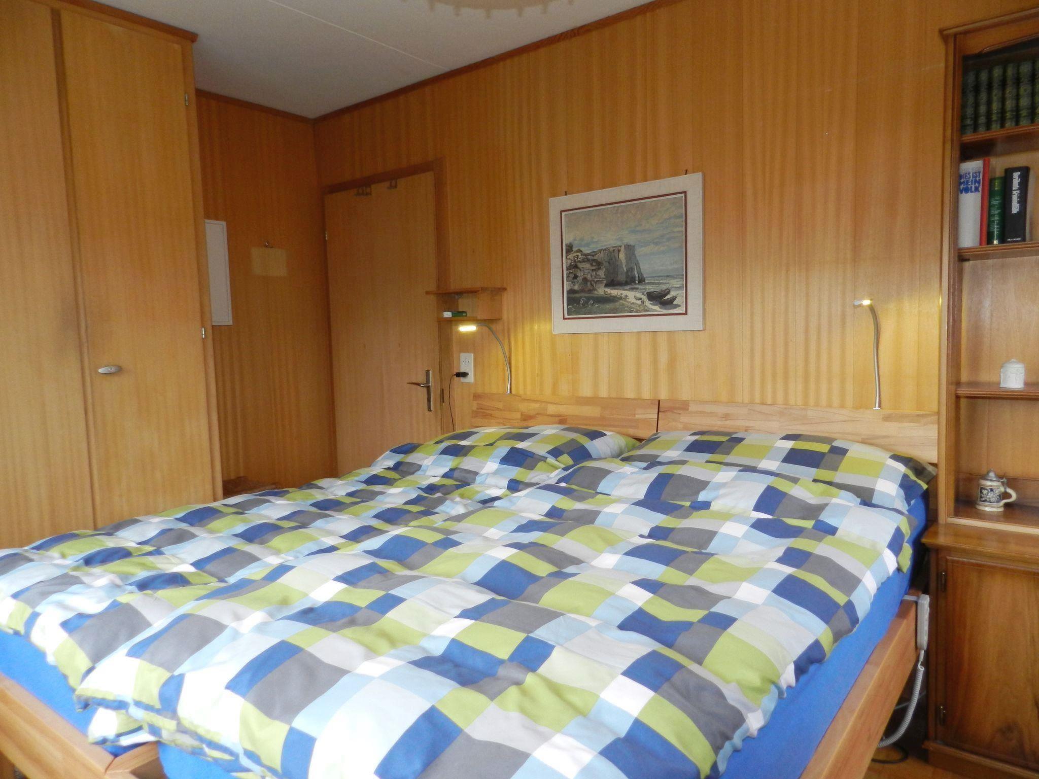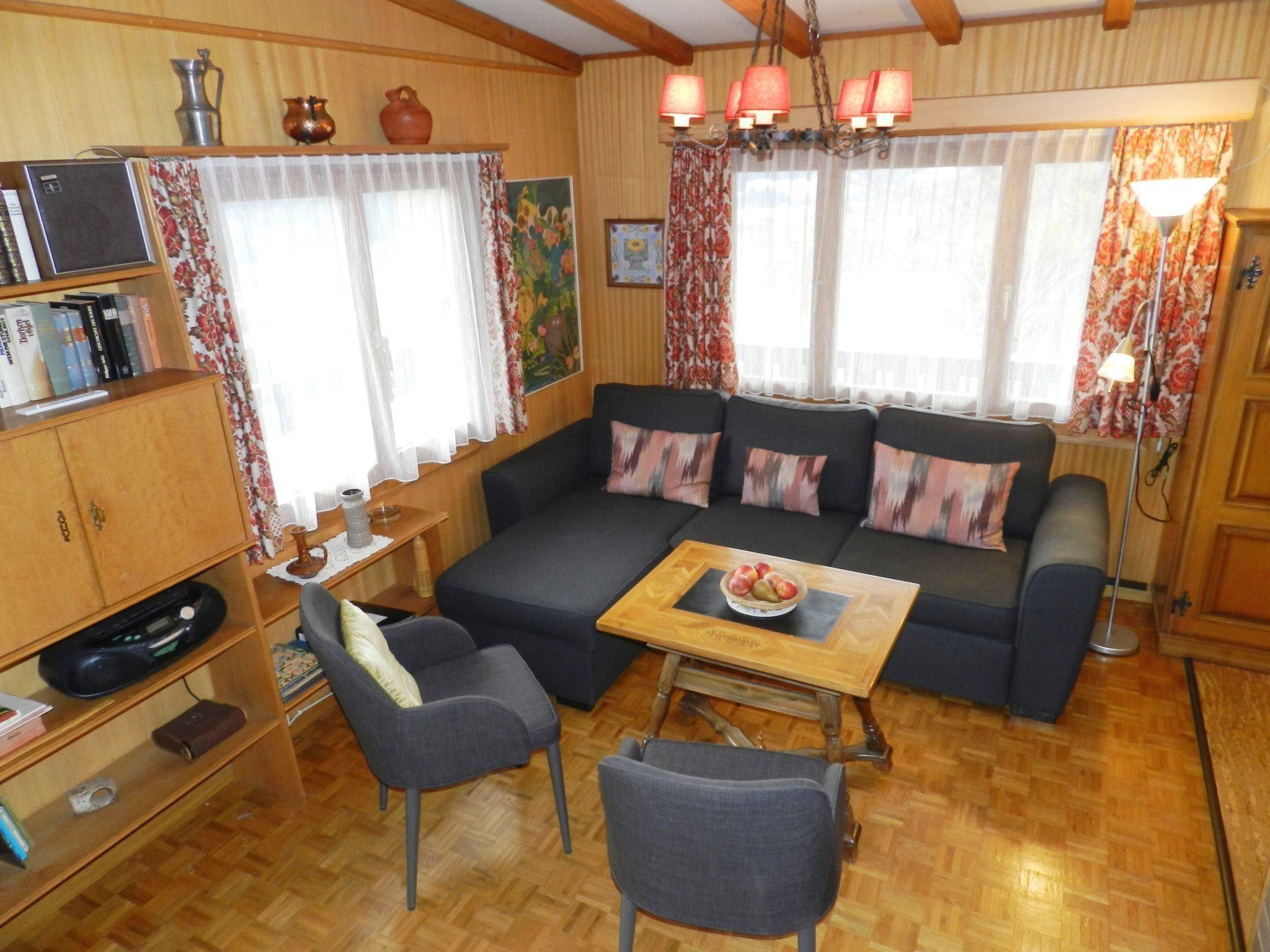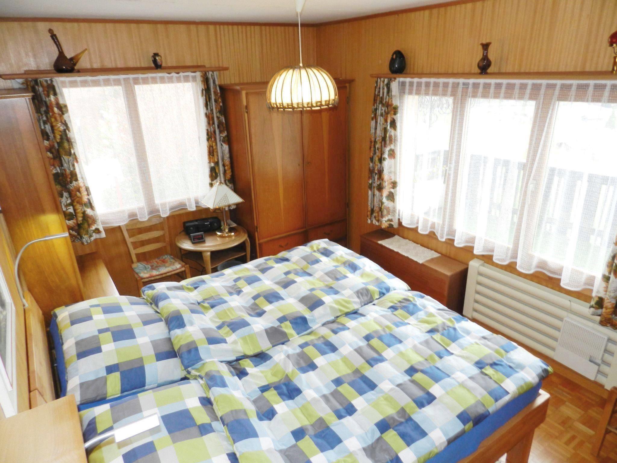 Wohn-/Esszimmer mit Sofa (Bettsofa 140x200cm), Schwedenofen, TV, Esstisch und offener Küche (u.a. ausgestattet mit Backofen, Geschirrspüler, Kühlschrank mit Gefrierfach, Kapsel-Kaffeemaschine (Delizio) sowie Fondue- und Raclette-Set). 1 Schlafzimmer mit 2 zusammengeschobenen Einzelbetten (2x90x200cm). 1 Schlafzimmer mit 2 Einzelbetten (je 90x190cm). 1 Badezimmer mit Badewanne/WC und kombinierter Waschmaschine/Wäschetrockner. WiFi.