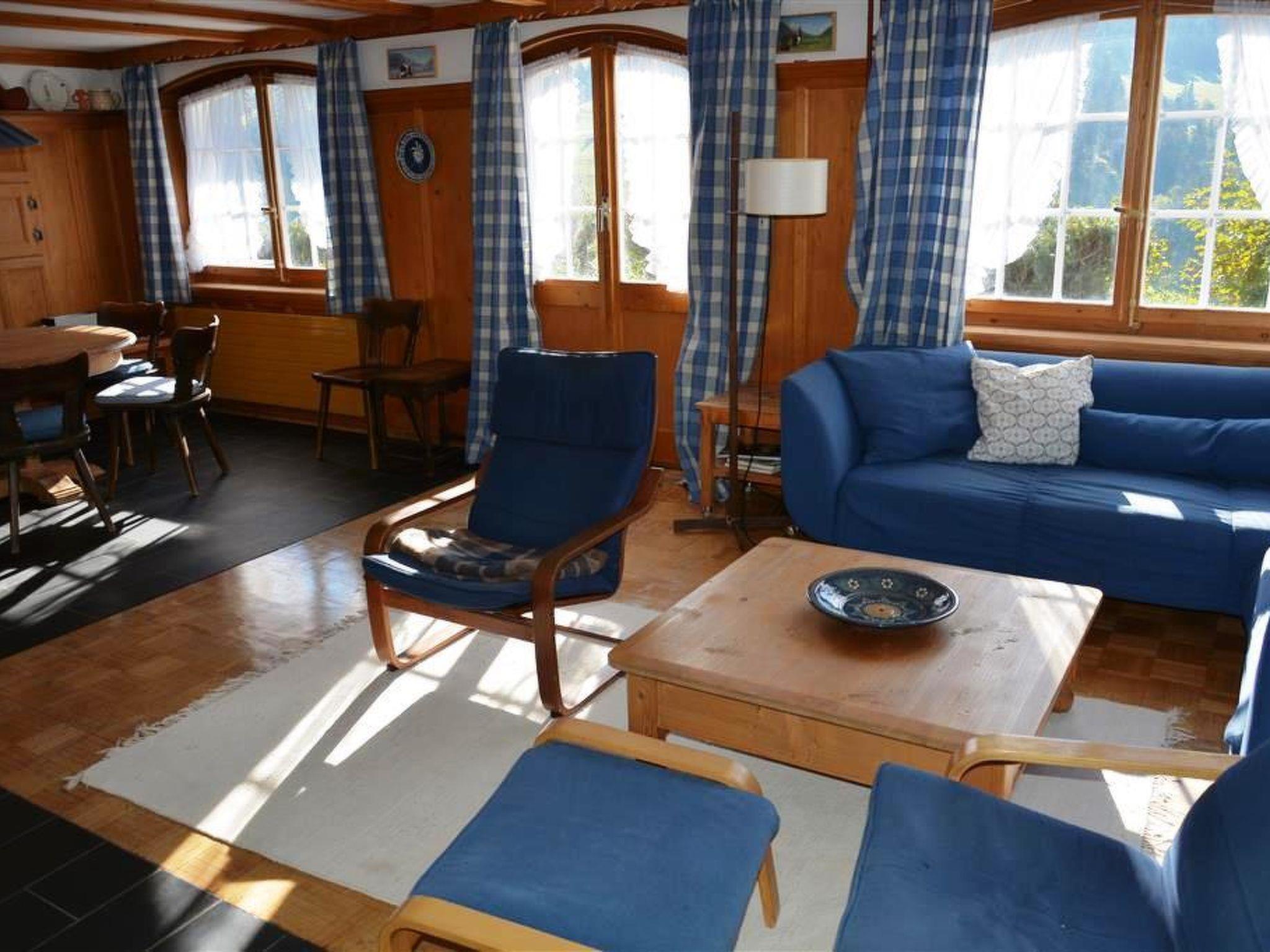 7-Zimmerchalet mit Küche/Esszimmer u. a. ausgestattet mit Fondue-, Raclette-Set und Filter-Kaffeemaschine. Wohnzimmer mit Radio, TV, Telefon. WiFi. 2 Badezimmer und separatem WC. 5 Schlafzimmer: 1 Grandlit, 1 Doppelzimmer, 2 Einzelzimmer, 1 niedriges 3-Bettzimmer im Dachgeschoss, geeignet für Kinder. Kinderbett (60x120cm) exkl. Bettwäsche vorhanden. Das Cheminée im Wohnzimmer darf von Gästen nicht benutzt werden. Aufteilung der Zimmer: Im EG = Wohnzimmer + Küche + 1 Dusche + 1 separates WC Im 1st. OG = 2x Doppelzimmer und 2x Einzelzimmer + 1 Bad mit WC Im 2ten. OG (Dachboden) = 3 Einzelbetten, die für Kinder gedacht sind
