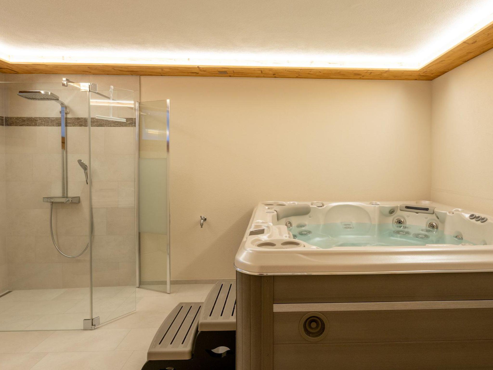 76 m2. Weitere Angaben des Anbieters: Das Apartmenthaus Alpenrose mit Wellness und Fitnessanlage in Saas-Almagell bietet Unterkünfte zur Selbstverpflegung an. Es liegt im nördlich Dorfteil in unmittelbarer Nähe zur Hauptstrasse. Im Kellergeschoss befinden sich die Lounge und Wellnessanlage, sowie Fitnessraum und die Waschküche. Im Erdgeschoss sind der Ski- und Schuhraum und sowie 2 Wohnungen und im 1. Obergeschoss hat es weitere 2 Wohnungen. Im Dachgeschoss gibt es weitere 2 Wohnungen. Das Haus hat einen Personenaufzug. Alle Wohnungen haben Fussbodenheizung. Jedes der geräumigen Apartments verfügt über einen Balkon, eine Küche, Schlafzimmer sowie jeweils Schlafzimmer mit eigenem WC/Dusch Restaurants und Lebensmittelgeschäfte erwarten Sie nur 300 m von der Unterkunft entfernt. Von der Bahnstation, der Natureisbahn und den Tennis-/Fussballplätzen trennen Sie 500 m. Zur Bushaltestelle mit Anbindung an das 4 km entfernte Saas Grund und Saas Fee gehen Sie 100 m. Die Ortschaft Visp befindet sich 30 km entfernt. Freie Benutzung der Fitness- und Wellnessanlagen