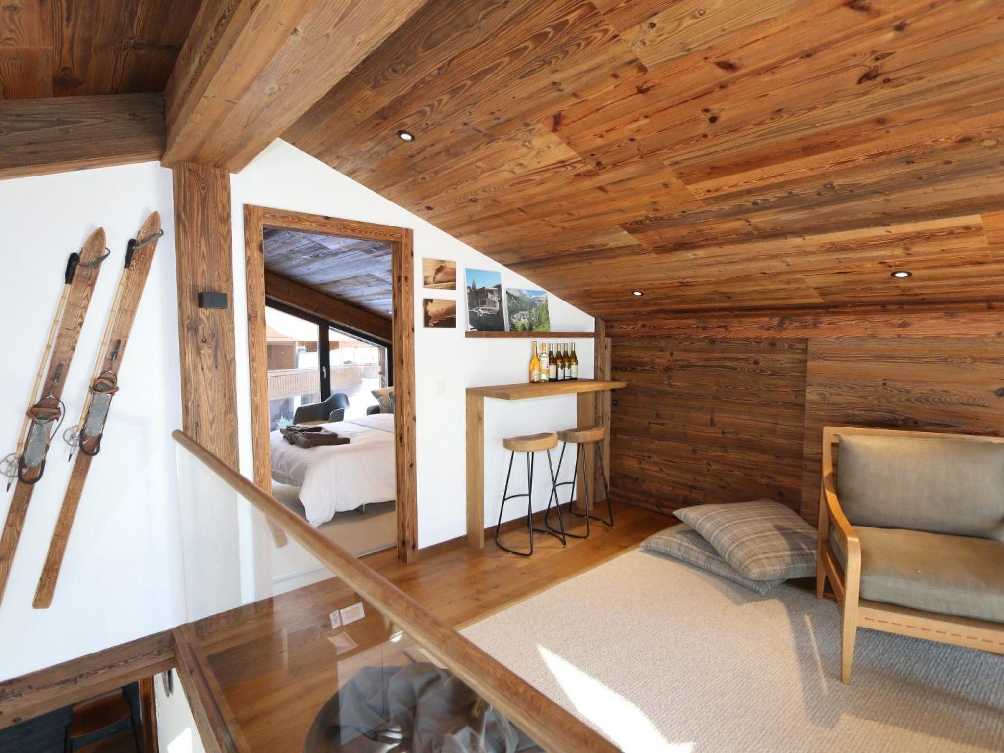 Dieses neu-renovierte, wunderschöne Chalet hat eine Grösse von 250 Quadratmetern. Heinrida kombiniert gemütliches, traditionelles Chalet-Ambiente mit modernen Highlights, moderne Möbel, Sauna, neurenovierte Küche, moderne Badezimmer, Bodenheizung usw.… Das 3-stöckige Chalet verfügt über 4 Doppelzimmer und ein Bett-Sofa auf der Mezzanine, wodurch genügend Platz für 10 Personen vorhanden ist. Die Mezzanine ist durch einen Vorhang vom restlichen Teil des Wohnzimmers abgetrennt. Falls Kinder mitreisen, kann die Wohnung auch durch 4 weitere Personen belegt werden, da ein Doppelzimmer über ein zusätzliches Hochbett und zwei weitere Zimmer jeweils über eine herausziehbare Einzelmatratze verfügen. Das Chalet bietet 3 Badezimmer (ein Badezimmer mit Badewanne und die beiden andern mit Dusche). Ein Badezimmer mit Dusche ist mit einer der 4 Schlafzimmer verbunden. Durch die grossen Fenster auf der Mezzanine und im Wohnzimmer, dringt viel Tageslicht ins Chalet und bietet zudem einen prachtvollen Blick auf die schöne Bergwelt. Das Chalet verfügt über eine Waschmaschine, Tumbler, geheizten Skiraum mit separatem Eingang, grosser Balkon, Kamin, Flatscreen TV, DVD, Sound System sowie Wifi. Die vollausgestattete offene Küche hat eine Spülmaschine, Mikrowelle, Toaster, Wasserkocher, Kaffeemaschine und Fondue-Set. Der Esstisch ist ausziehbar bietet somit Platz für bis zu 12 Personen. Die Küche ist zudem mit einer Bar ausgestattet, die noch 2 weitere Sitzgelegenheiten anbietet. Es handelt sich um ein Nicht-Raucherchalet und Haustiere sind nicht erlaubt.