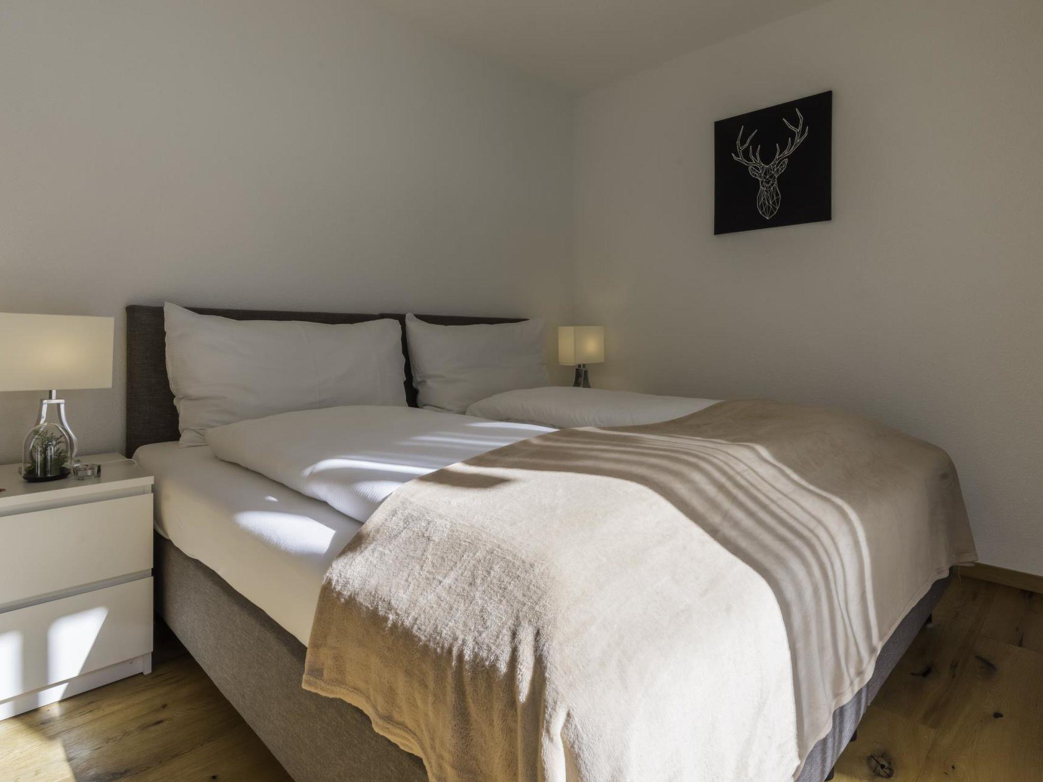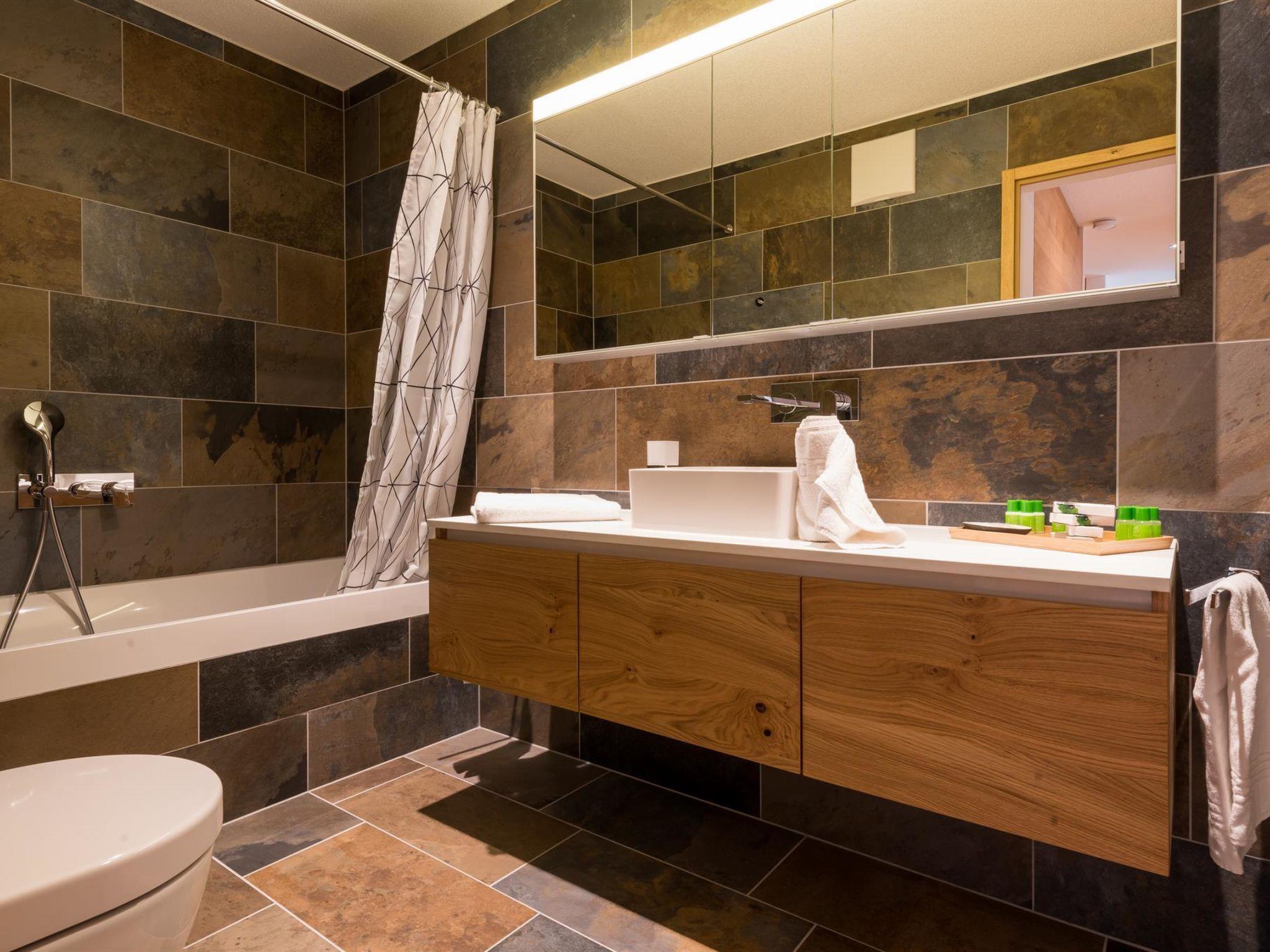 Apartment mit 3 Schlafzimmern und 2 Badezimmern im Erdgeschoss (Montela Holiday Stay) Ruhig gelegenes Apartment (Nichtraucher) mit Aussensitzplatz, ca. in 5 Gehminuten von der Talstation der Bergbahnen Hohsaas entfernt. Das moderne Apartment mit 3 Schlafzimmern und 2 Badezimmern für 6-7 Personen ist komfortabel und liebevoll ausgestattet. Die drei getrennten Schlafzimmer verfügen über je ein Doppelbett. Im Wohnbereich kann das Schlafsofa (140cm breit) zusätzlich für eine Person benutzt werden. Die zwei Badezimmer (mit DU/WC und Badewanne/WC) sowie die offene Küche sind komplett ausgestattet. Auf dem Aussensitzplatz mit Gartenmöbeln können Sie entspannt verweilen. Gratis top Highspeed-WLAN, ein eigener Parkplatz vor dem Haus (kostenlos), einen Ski- und Bikeraum mit eigenem, abschliessbarem Spint sowie eine Waschküche (kostenpflichtig) zur gemeinsamen Nutzung im Untergeschoss des Hauses runden das Angebot ab. Aufzug vorhanden. Hunde auf Anfrage willkommen. Schlafzimmer mit zwei trennbaren Betten (insgesamt 180cm breit) oder nicht trennbares Queensize-Bett 160cm.