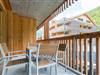 Terrasse oder Balkon (jeweils teilüberdacht) mit Mobiliar.