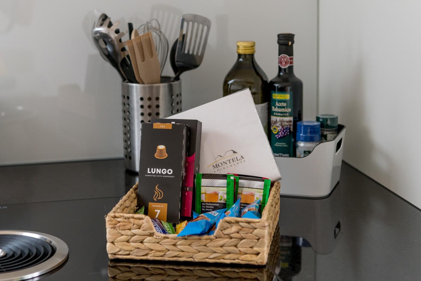 Die modernen Wohnungen sind geschmackvoll, gut und hell eingerichtet, sehr gute Ausstattung. Jeweils Kabel-Flat-TV (Apple-TV) und Radio. Die Küchen sind sehr gut und vollständig ausgestattet mit Einbauherd (4 Veranfelder), Backofen, Mikrowelle, Geschirrspüler, Kühl-/Gefrierkombination, Filter-Kaffeemaschine, Nespresso-Kapsel-Kaffeemaschine, Wasserkocher, Toaster, Fondue-Rechaud und Raclette-Gerät. Holzdielenböden im Wohnraum und Schlafzimmern mit Fußbodenheizung. Jedes Bad mit Haartrockner.