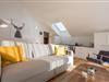 3-Zimmer-Wohnung, Dachgeschoß mit 101 m² Wohnfläche. Eingang in geräumigen Flur mit Garderobe/Einbauschrank. Gemütlicher Wohnraum mit Sitzgruppe/Bettcouch, Apple-TV, Balkonausgang.