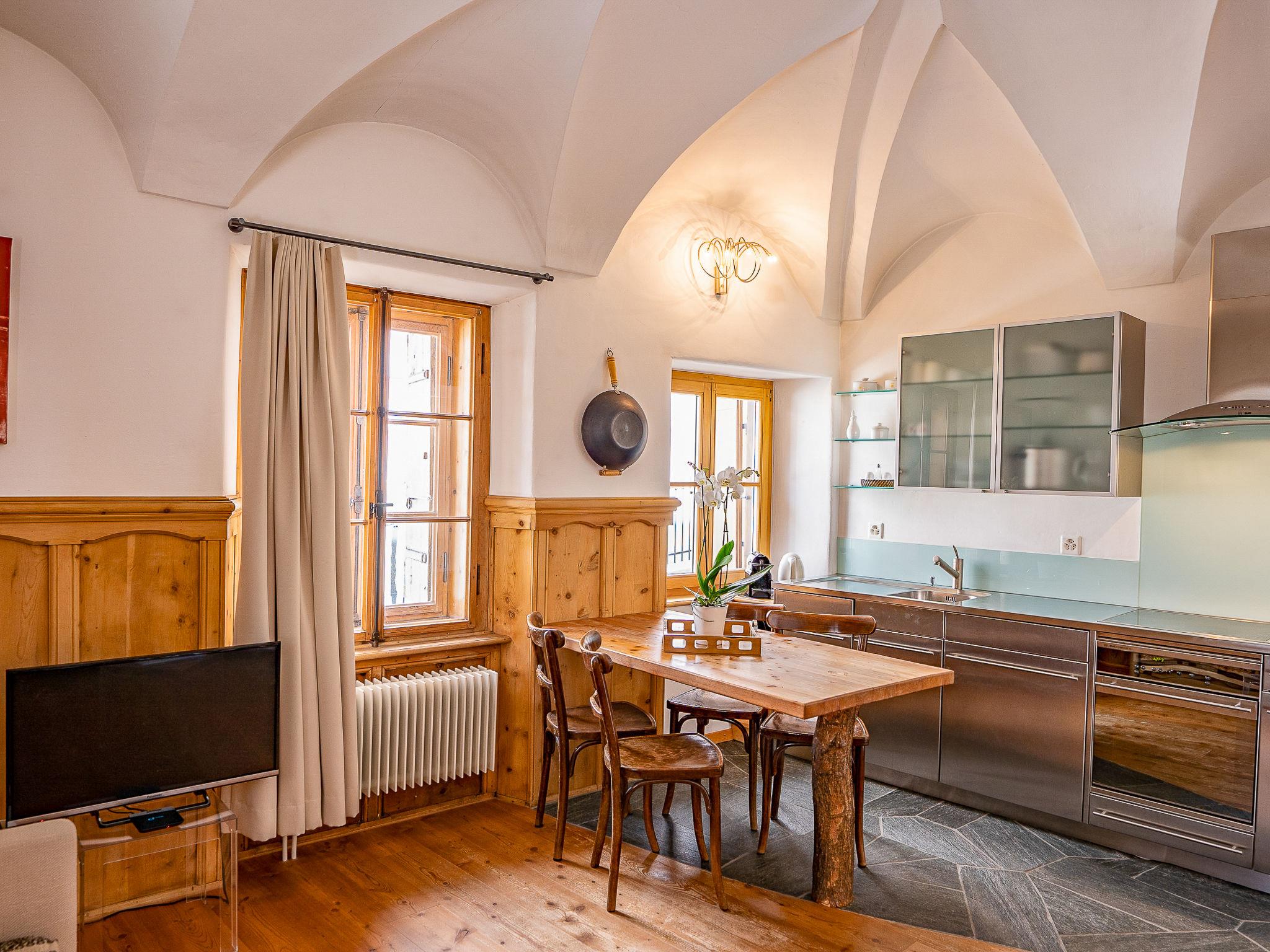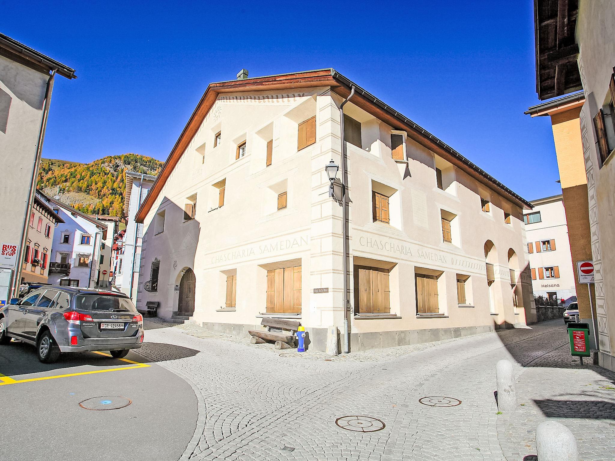 Samedan 8 km von St. Moritz: Sehr schönes, historisches Mehrfamilienhaus "Chesa Chascharia", auf 2 Stockwerken, aus dem 19. Jahrhundert. Im Ortszentrum von Samedan, zentrale Lage, exzellente Lage: Absolut zentral und dennoch ruhig, 5 km vom See. Im Hause: Fahrstuhl, Skiraum, Zentralheizung, Waschmaschine, Wäschetrockner (zur Mitbenutzung). Gemeinschaftsgarage. Einkaufsgeschäft 10 m, Supermarkt 300 m, Restaurant 10 m, Bäckerei, Café 500 m, Fahrradverleih 2.9 km, Bushaltestelle "Samedan, Central" 20 m, Bahnstation "Samedan" 550 m, Hallenbad 7 km, Thermalbad "Mineralbad & Spa Samedan" 120 m, See St. Moritzer See 5 km. Golfplatz (18 Loch) 1.4 km, Surfschule 13 km, Tennis 1.5 km, Tennishalle 7.3 km, Minigolf 7 km, Reitstall 6.3 km, Wanderwege ab Haus, Radweg 300 m, Luftseilbahn 3.1 km, Skilift 450 m, Skiverleih 400 m, Skischule 3.1 km, Kinderskischule 3.1 km, Schlittelbahn 3.6 km, Langlaufloipe 1.4 km, Eisfeld 1.5 km, Kinderspielplatz 300 m. Nahe gelegene Sehenswürdigkeiten: Chesa Planta in Samedan 300 m, Segantini Museum in St. Moritz 9.5 km, Nietzsche Haus in Sils-Maria 17 km, Olympic Bob Run St. Moritz 5.5 km, Kirche St. Maria in Pontresina 7.6 km. Bekannte Skigebiete sind gut erreichbar: Corviglia - Piz Nair 3.1 km, Corvatsch - Furtschellas 14 km, Diavolezza - Lagalb 18 km. Bekannte Seen in der Umgebung sind gut erreichbar: St. Moritz See 5 km, Silvaplana See 13 km, Silser See 17 km. Wandergebiete: Corviglia - Piz Nair, Muottas Muragl, Val Bever & Val Rosegg.