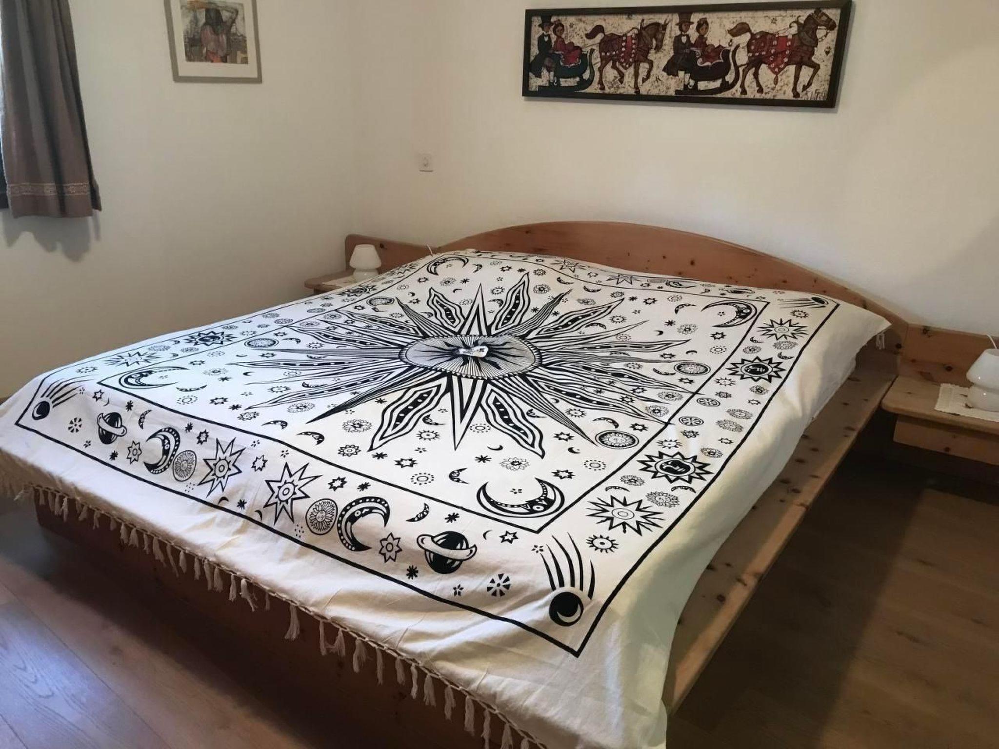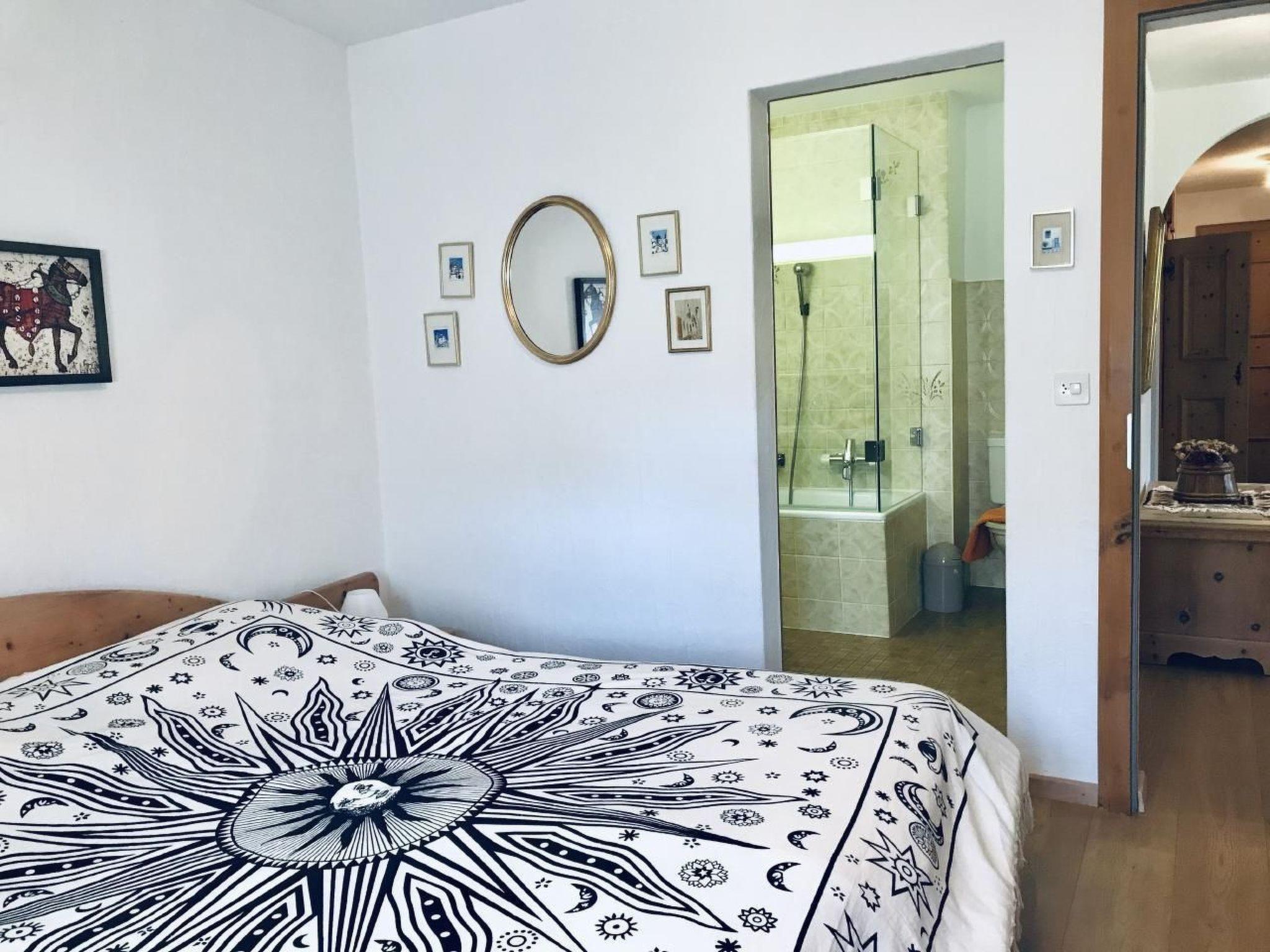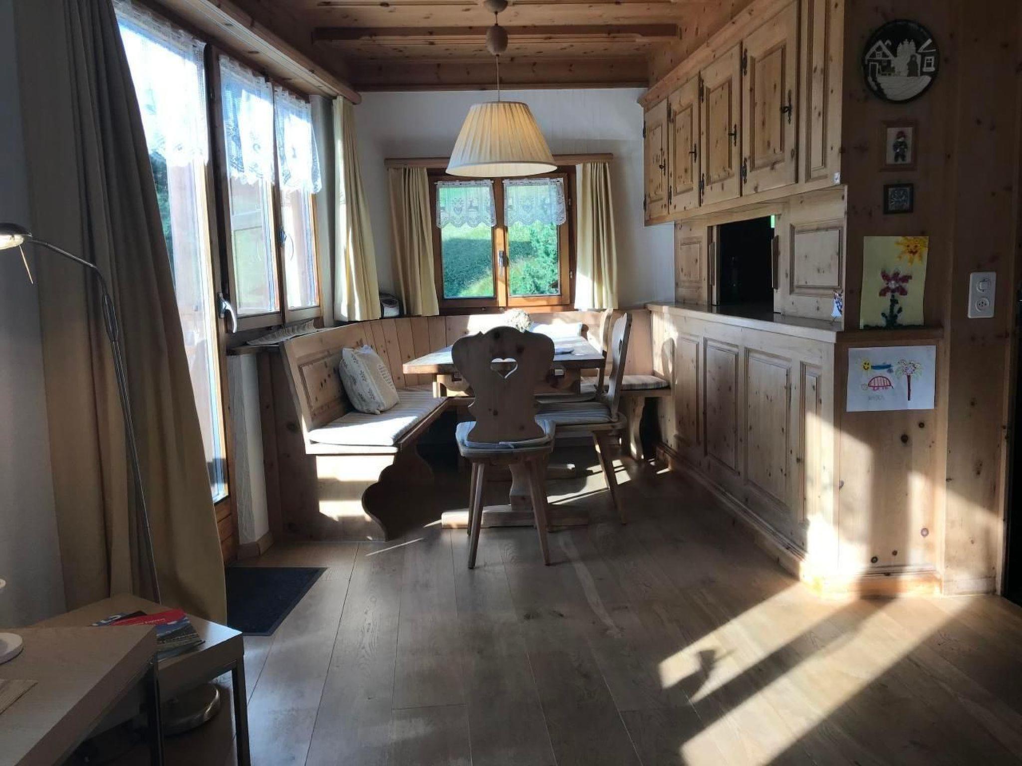 Innen überzeugt die Wohnung mit einer liebevollen Einrichtung, die Tradition mit Komfort vereint. Ganze Räumlichkeiten sind mit edlen Arvenmöbel ausgestattet, die ein heimeliges Ambiente schaffen. Das Wohnzimmer mit einer Polstergruppe und Essecke lädt zu gemütlichen Abenden ein. Technische Ausstattungen wie TV, CD, Radio und ein Internetanschluss sorgen für Unterhaltung und Information. Die teilrenovierte Küche ist mit einem Glaskeramikherd ausgestattet, während die Schlafbereiche mit einem Doppelschlafzimmer inklusive direktem Bad/WC Zugang und einem weiteren Schlafzimmer mit zwei Einzelbetten und separatem Dusche/WC jedem Gast Privatsphäre und Komfort bieten.