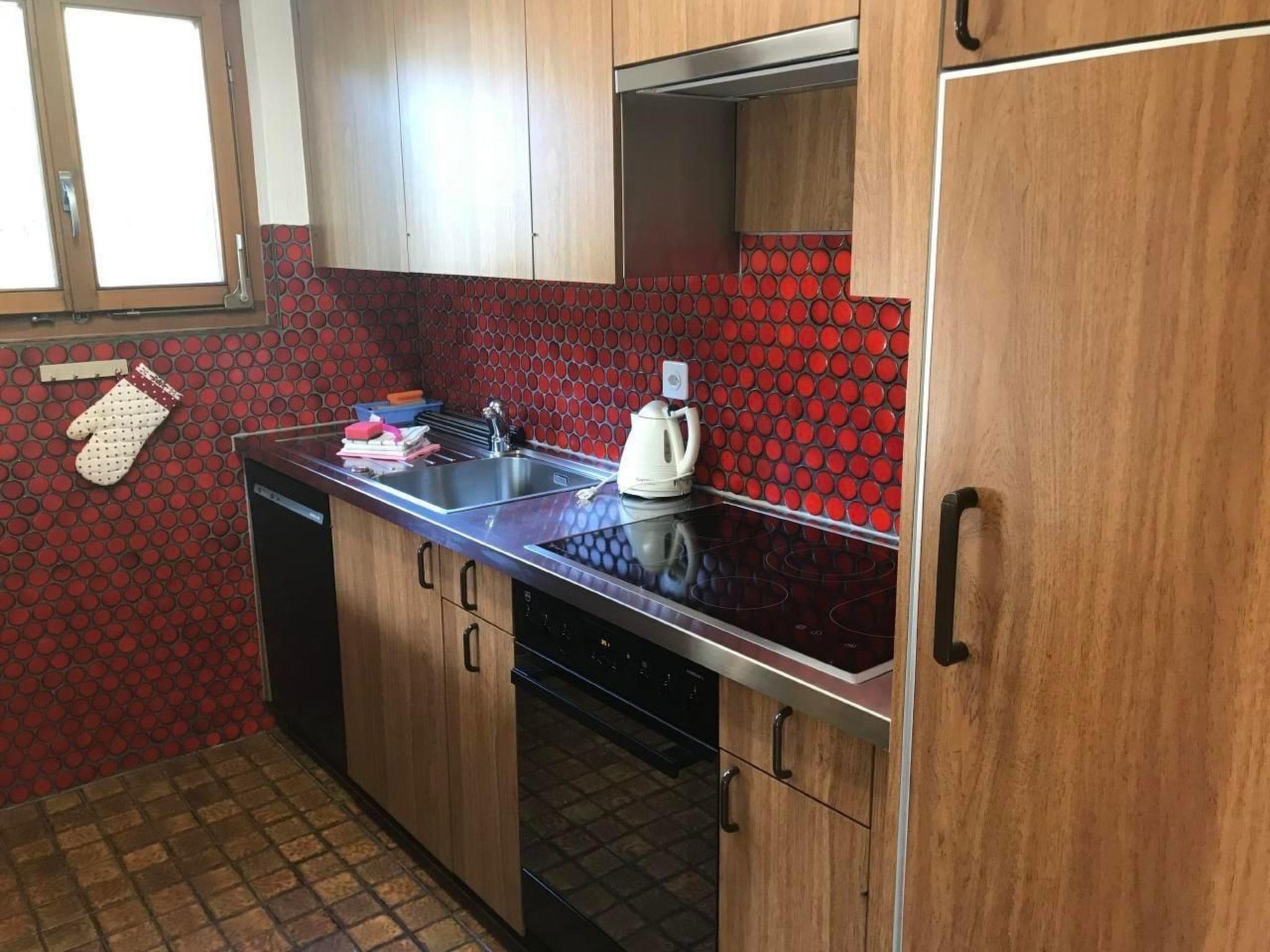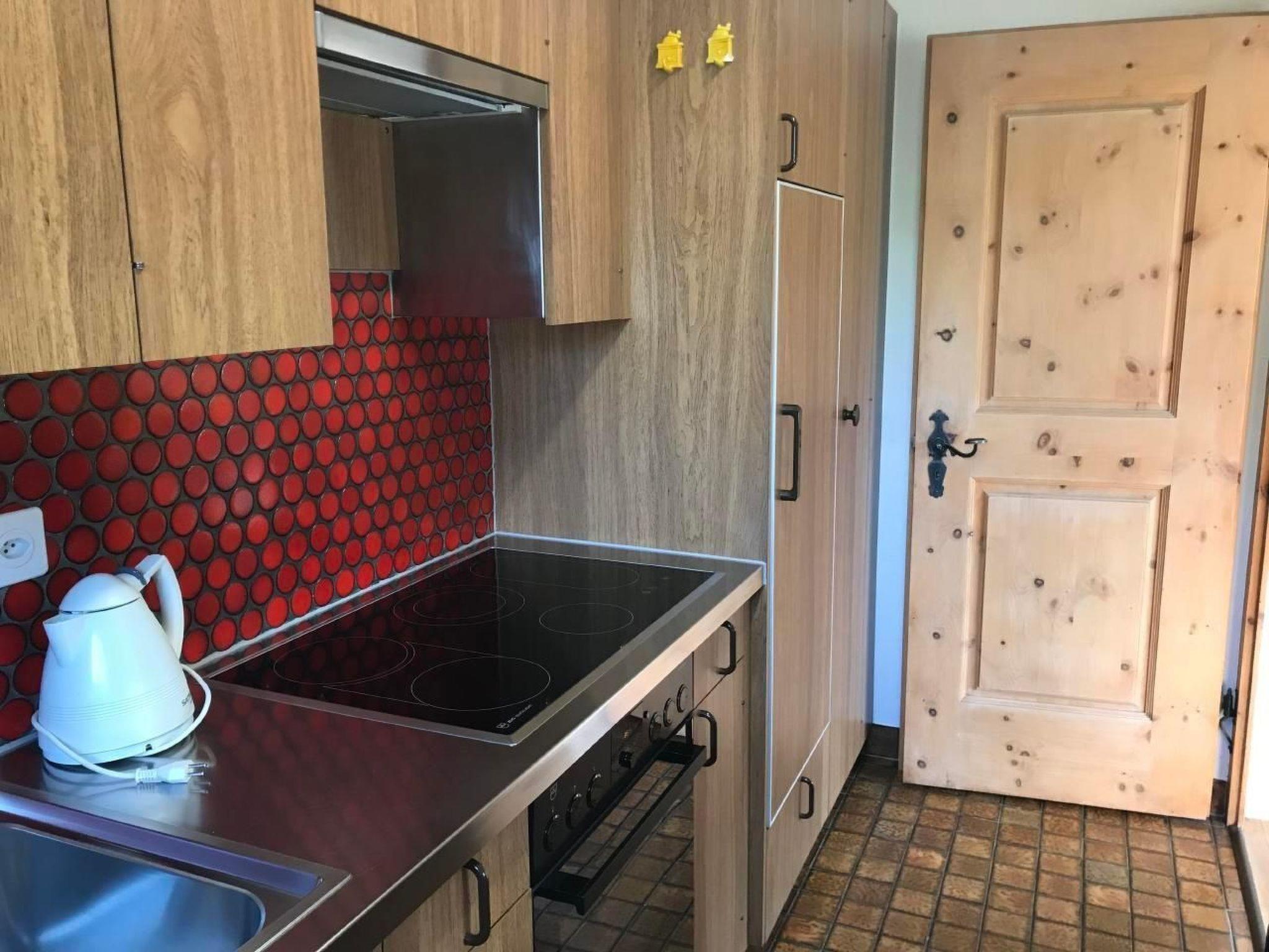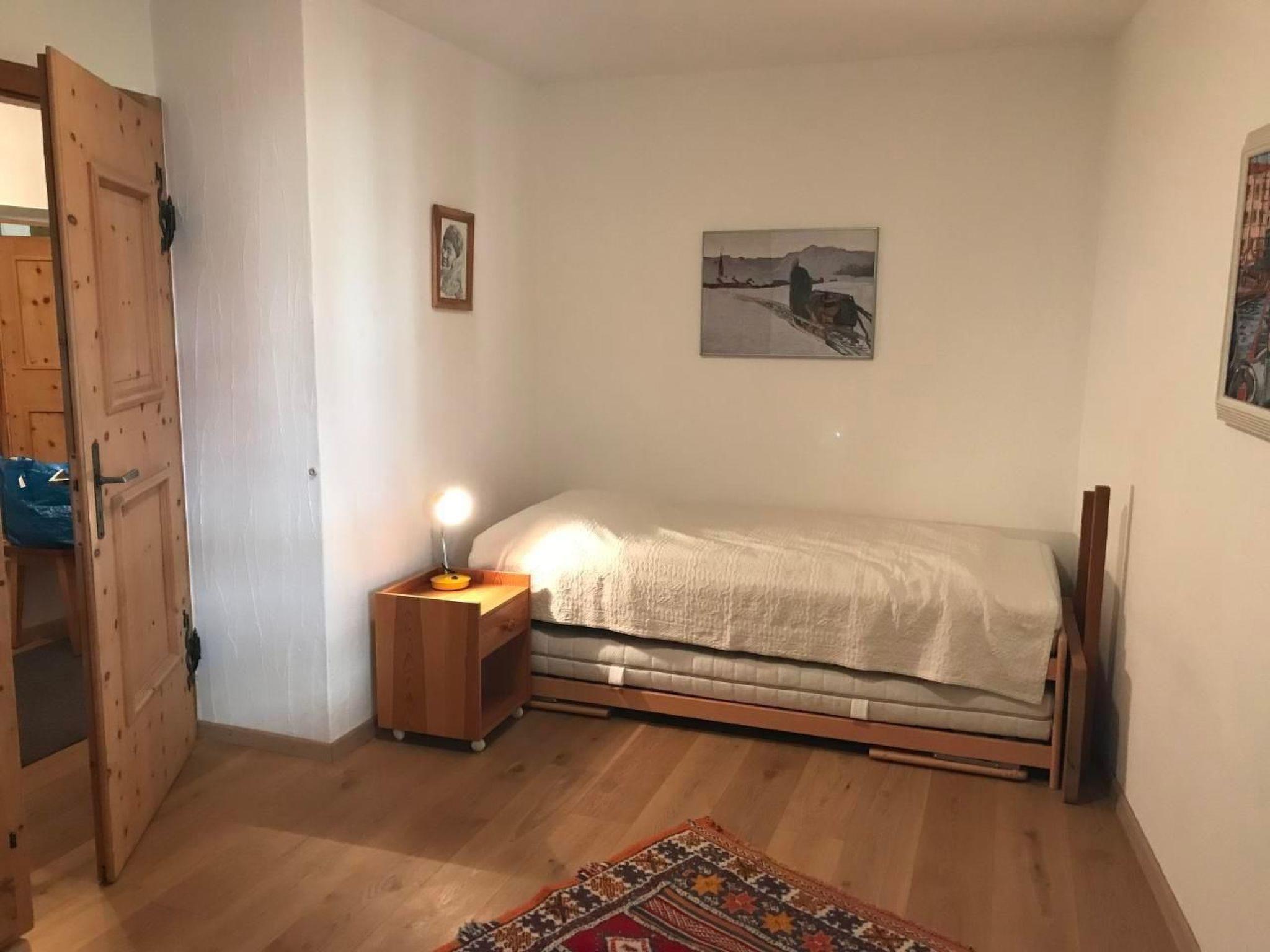 Innen überzeugt die Wohnung mit einer liebevollen Einrichtung, die Tradition mit Komfort vereint. Ganze Räumlichkeiten sind mit edlen Arvenmöbel ausgestattet, die ein heimeliges Ambiente schaffen. Das Wohnzimmer mit einer Polstergruppe und Essecke lädt zu gemütlichen Abenden ein. Technische Ausstattungen wie TV, CD, Radio und ein Internetanschluss sorgen für Unterhaltung und Information. Die teilrenovierte Küche ist mit einem Glaskeramikherd ausgestattet, während die Schlafbereiche mit einem Doppelschlafzimmer inklusive direktem Bad/WC Zugang und einem weiteren Schlafzimmer mit zwei Einzelbetten und separatem Dusche/WC jedem Gast Privatsphäre und Komfort bieten.
