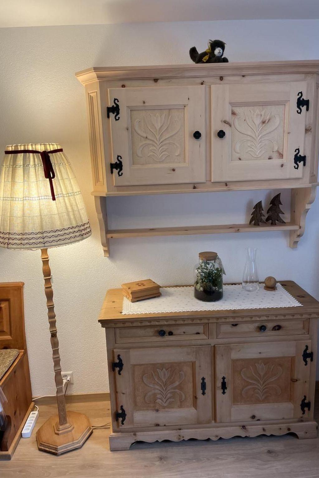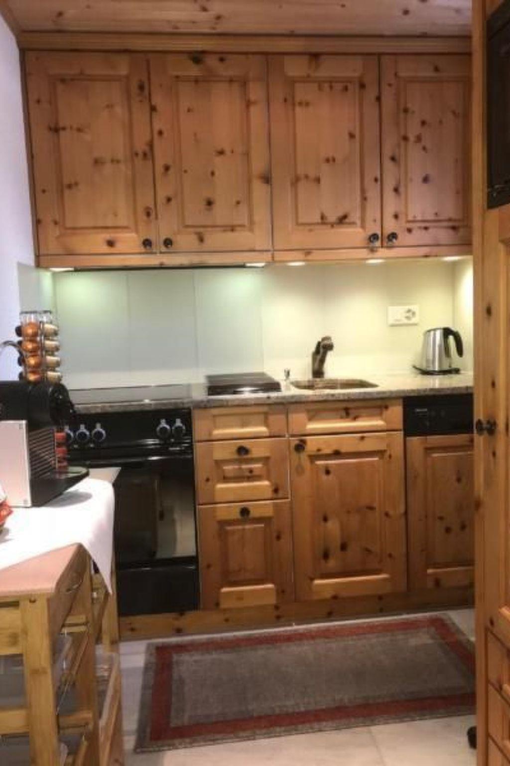 Sonstige Kücheneinrichtung (Küche1): Arvenholz-Einbauküche, kleine Sitzgelegenheit. Nespresso-Kaffeemaschine inkl. Kapseln (6-8 Sorten) vorhanden, Wasserkocher, vollständiges Fondue- und Raclette-Geschirr